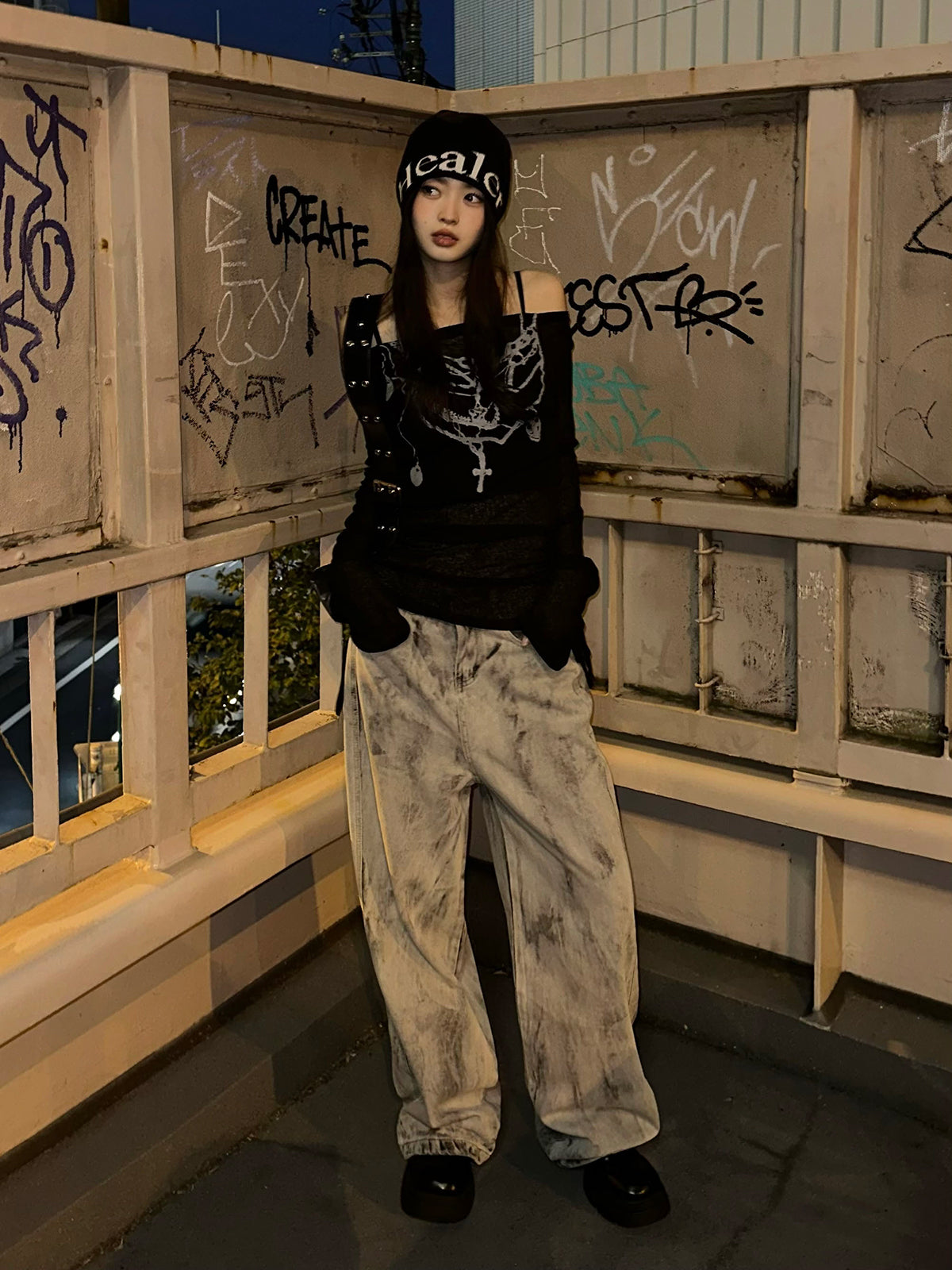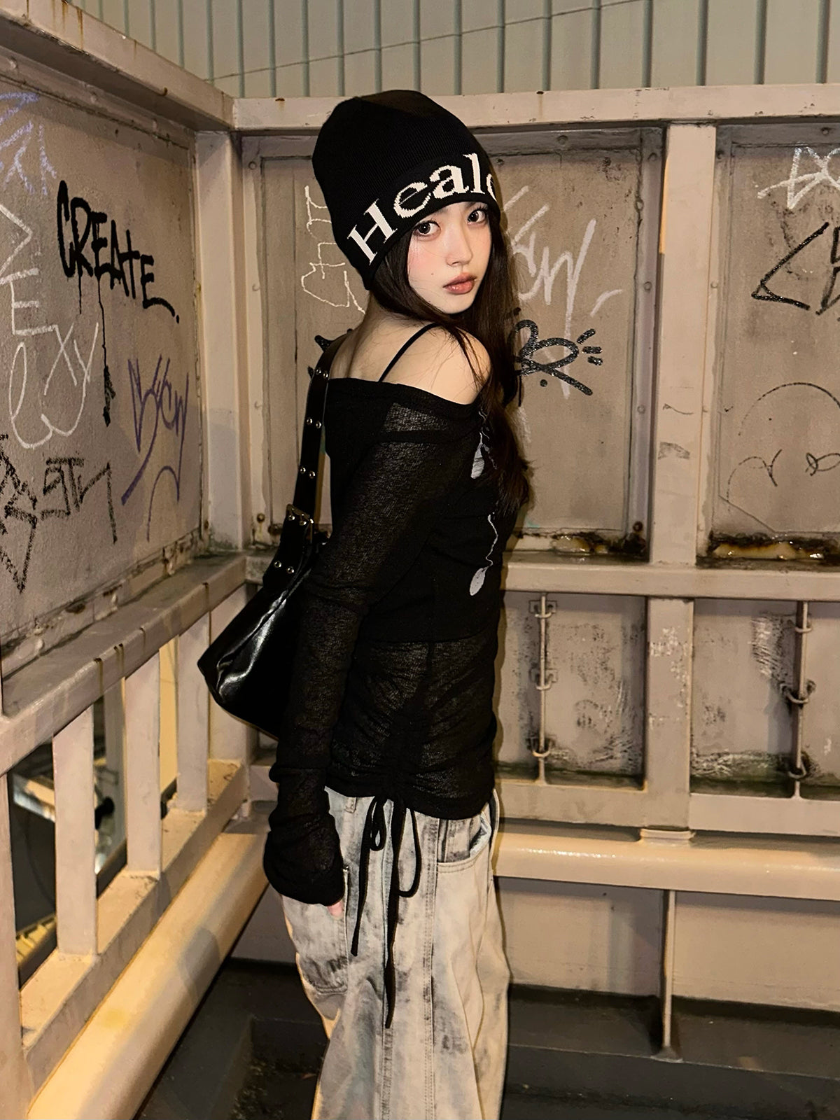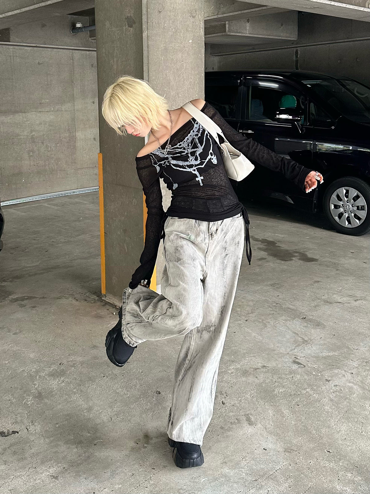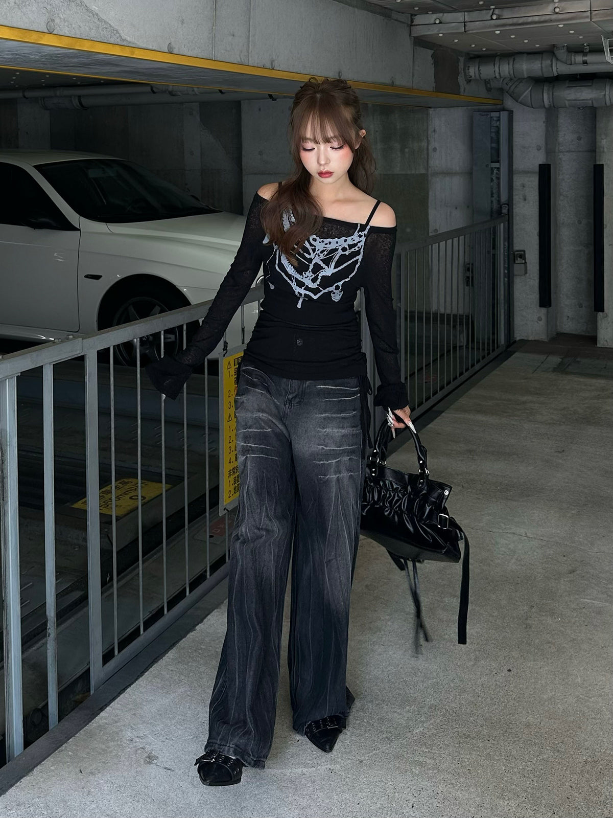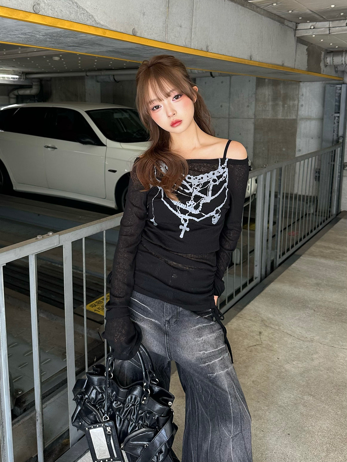 透け感のあるシアー素材と長めの丈感で、レイヤード次第で雰囲気を変えられます。