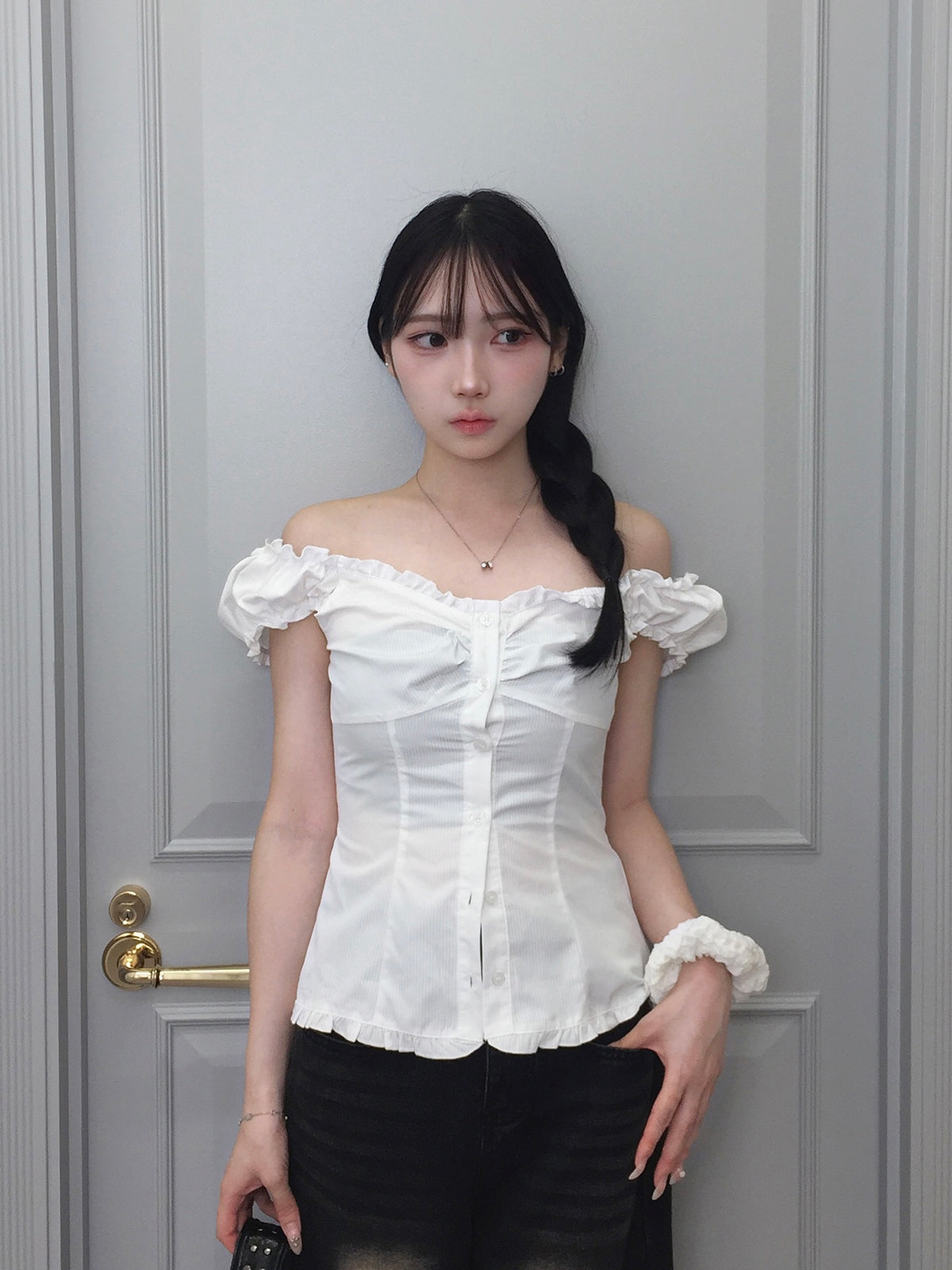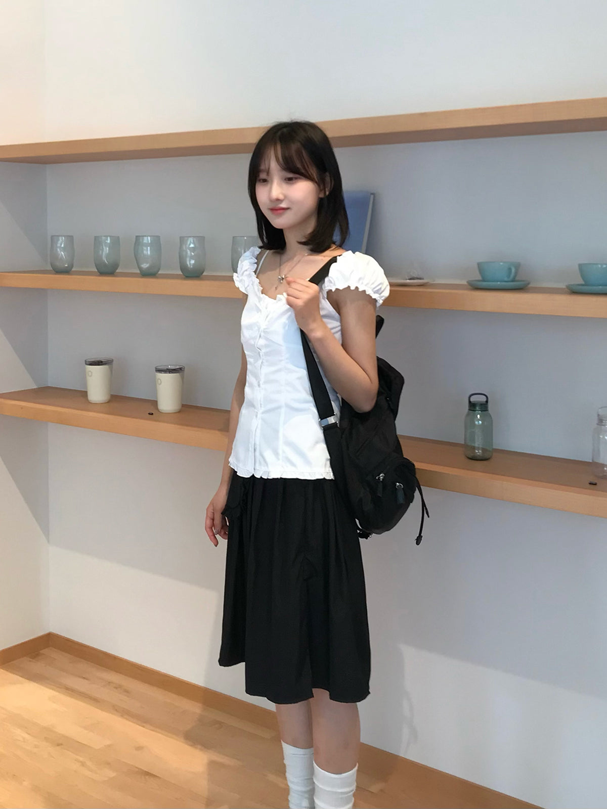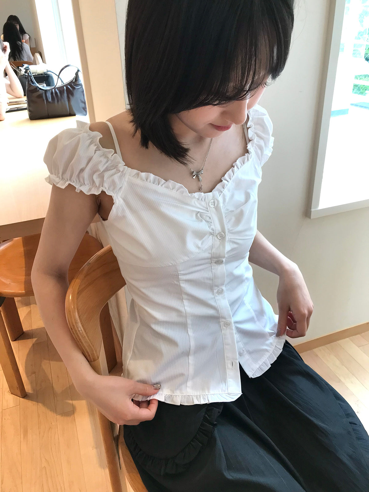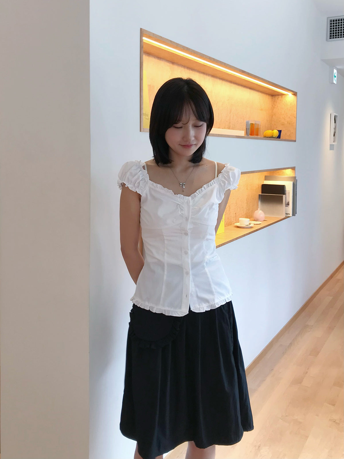 袖まわりはパフデザイン×フリルで、ほのかにクラシカルな雰囲気に。