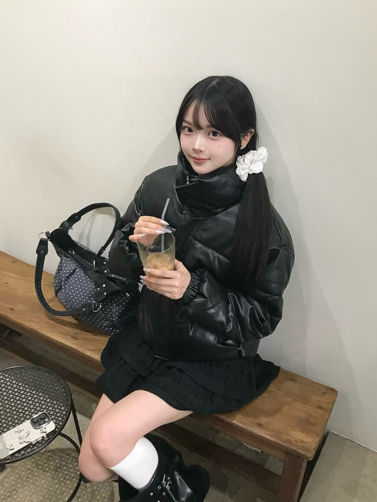レザータッチパデッドショートブルゾン