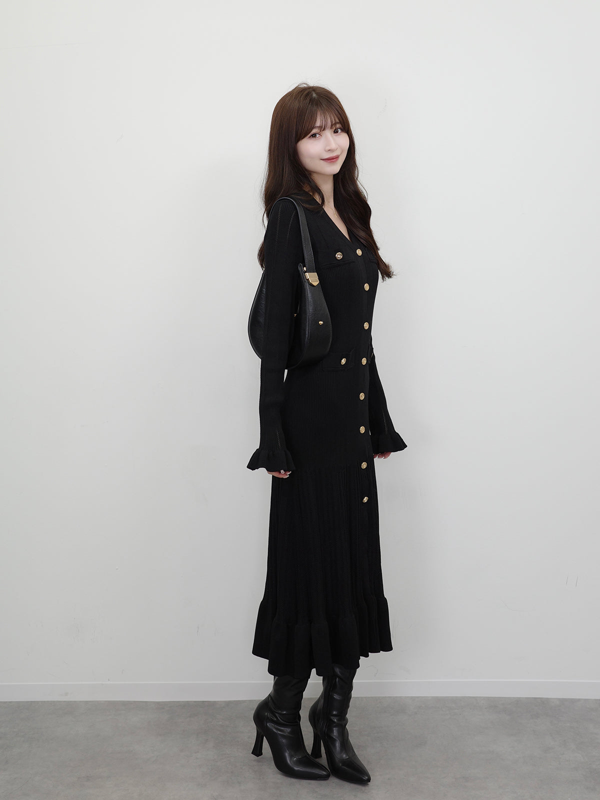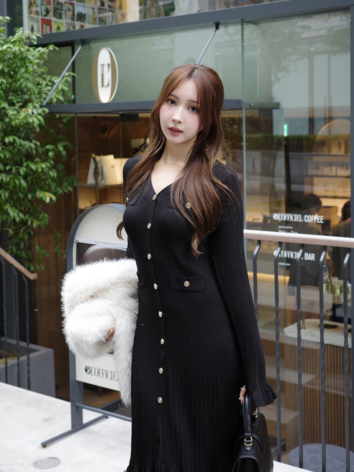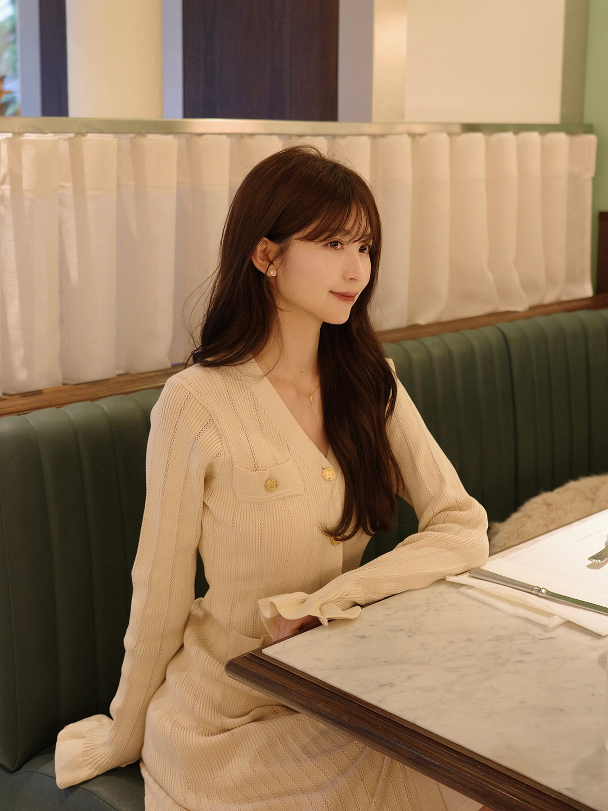 縦ラインを意識したデザインで、女性らしいシルエットを美しく引き立てます。