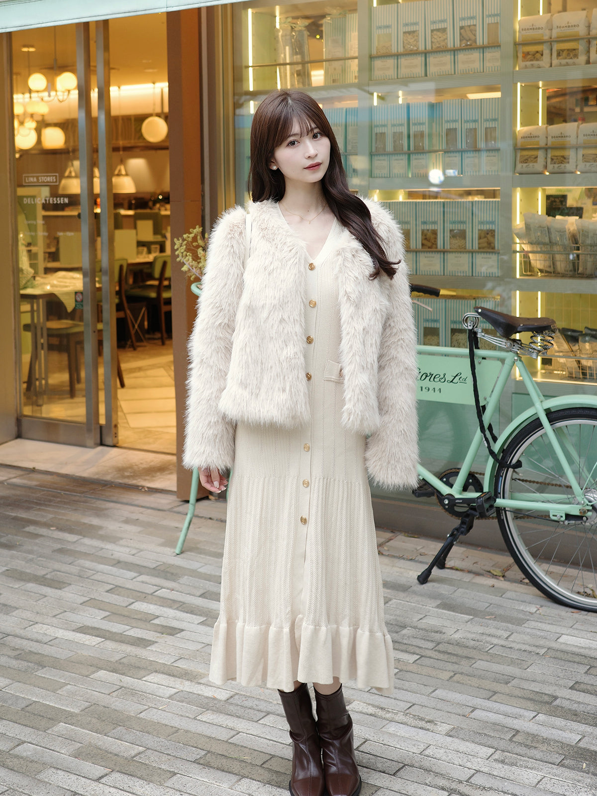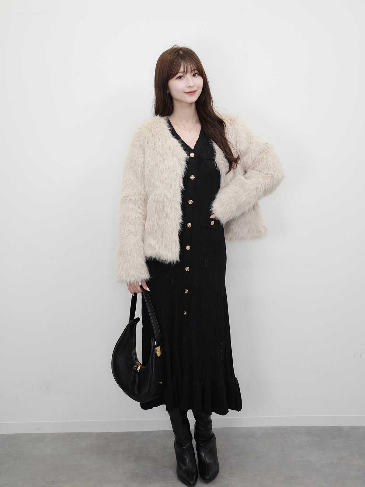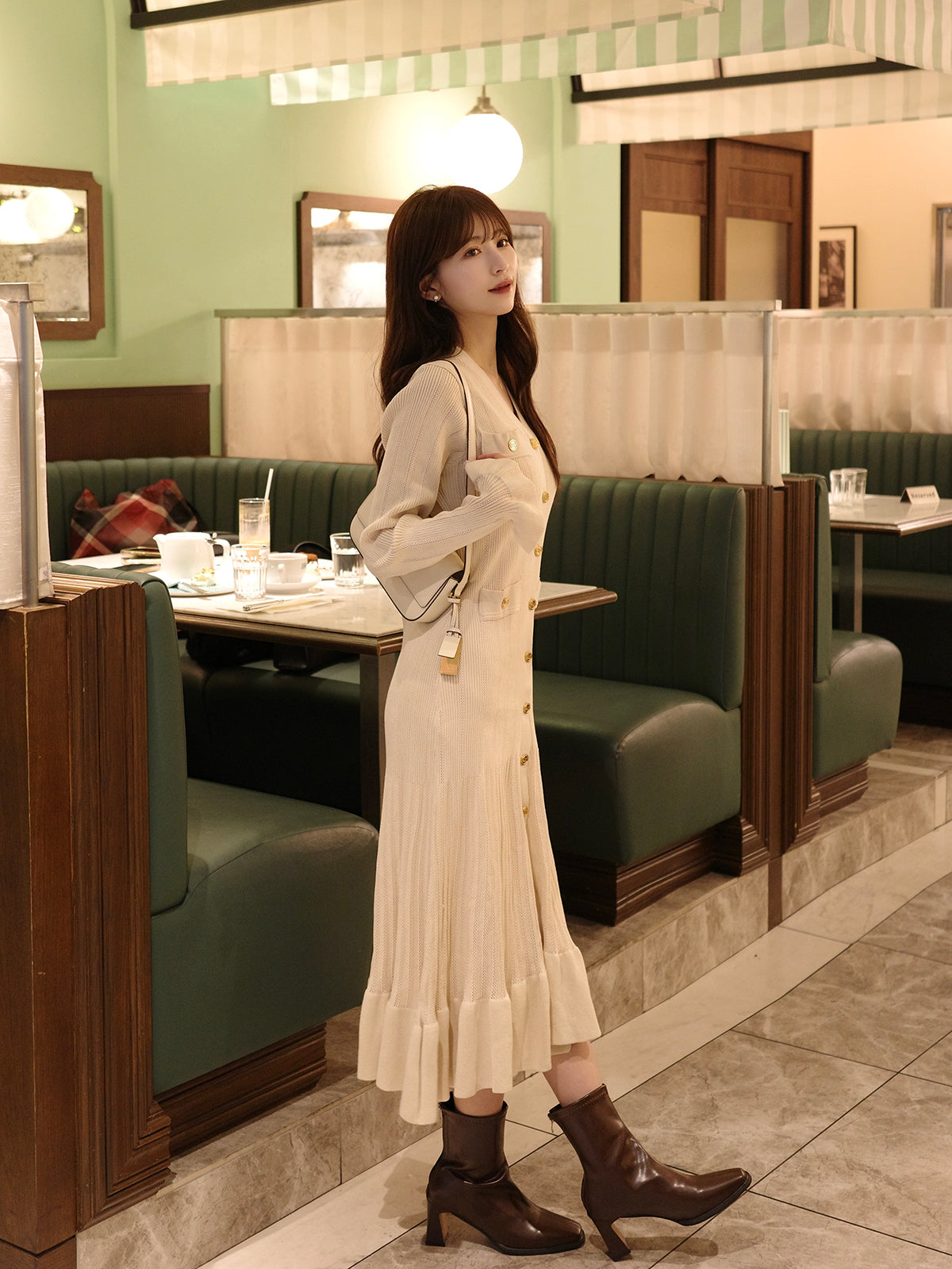 縦ラインを意識したデザインで、女性らしいシルエットを美しく引き立てます。