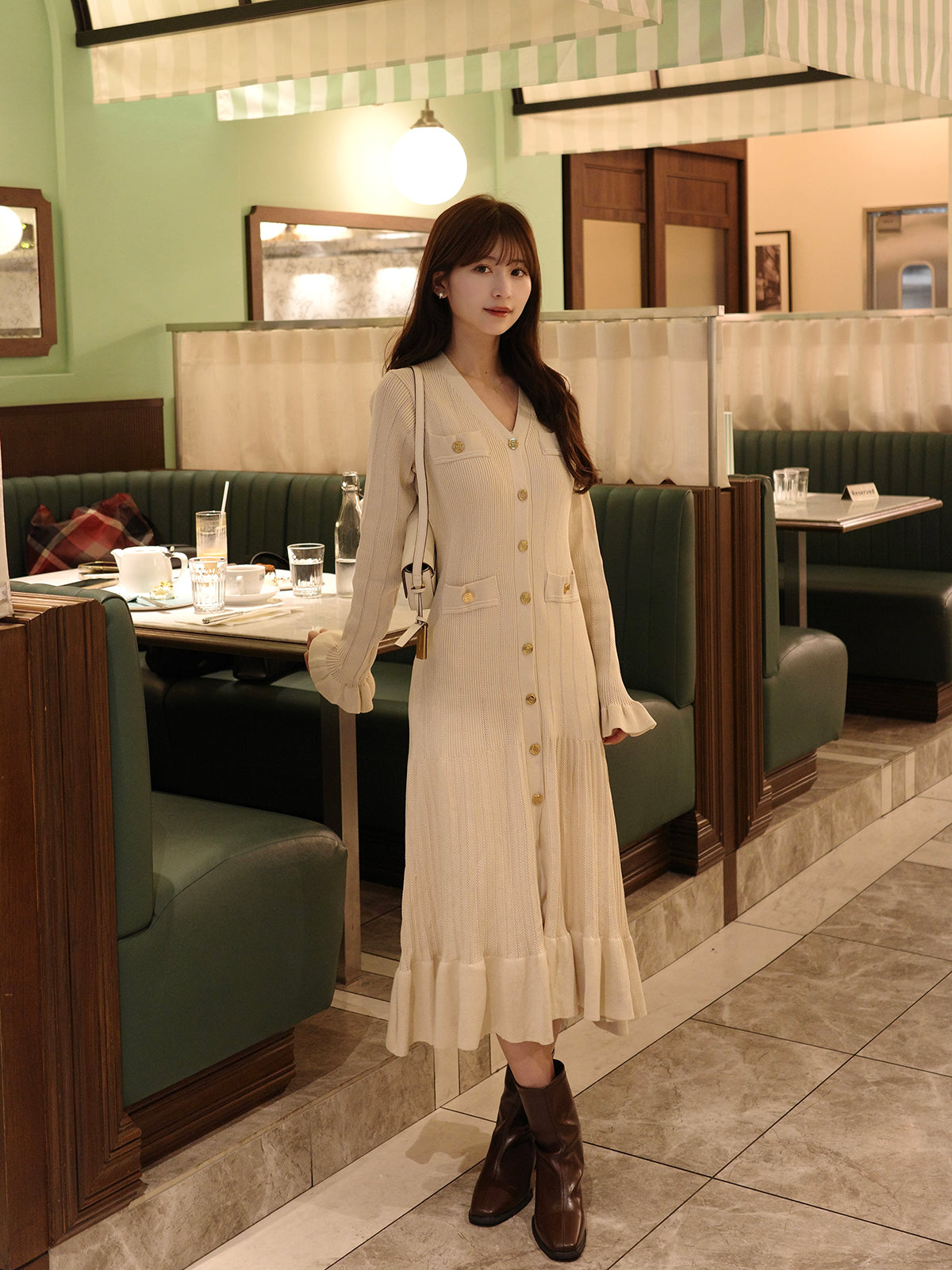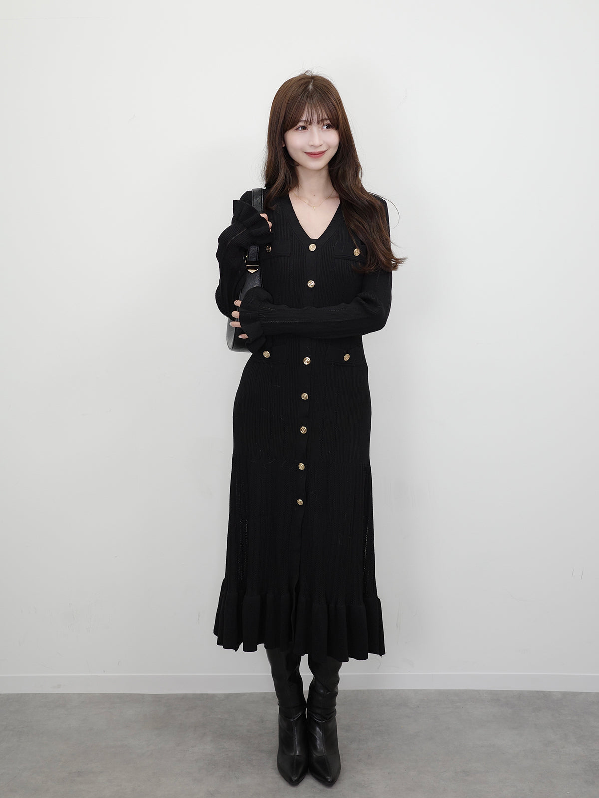 袖口と裾のフリルデザインが、さりげなく華やかな印象をプラスするワンピース。