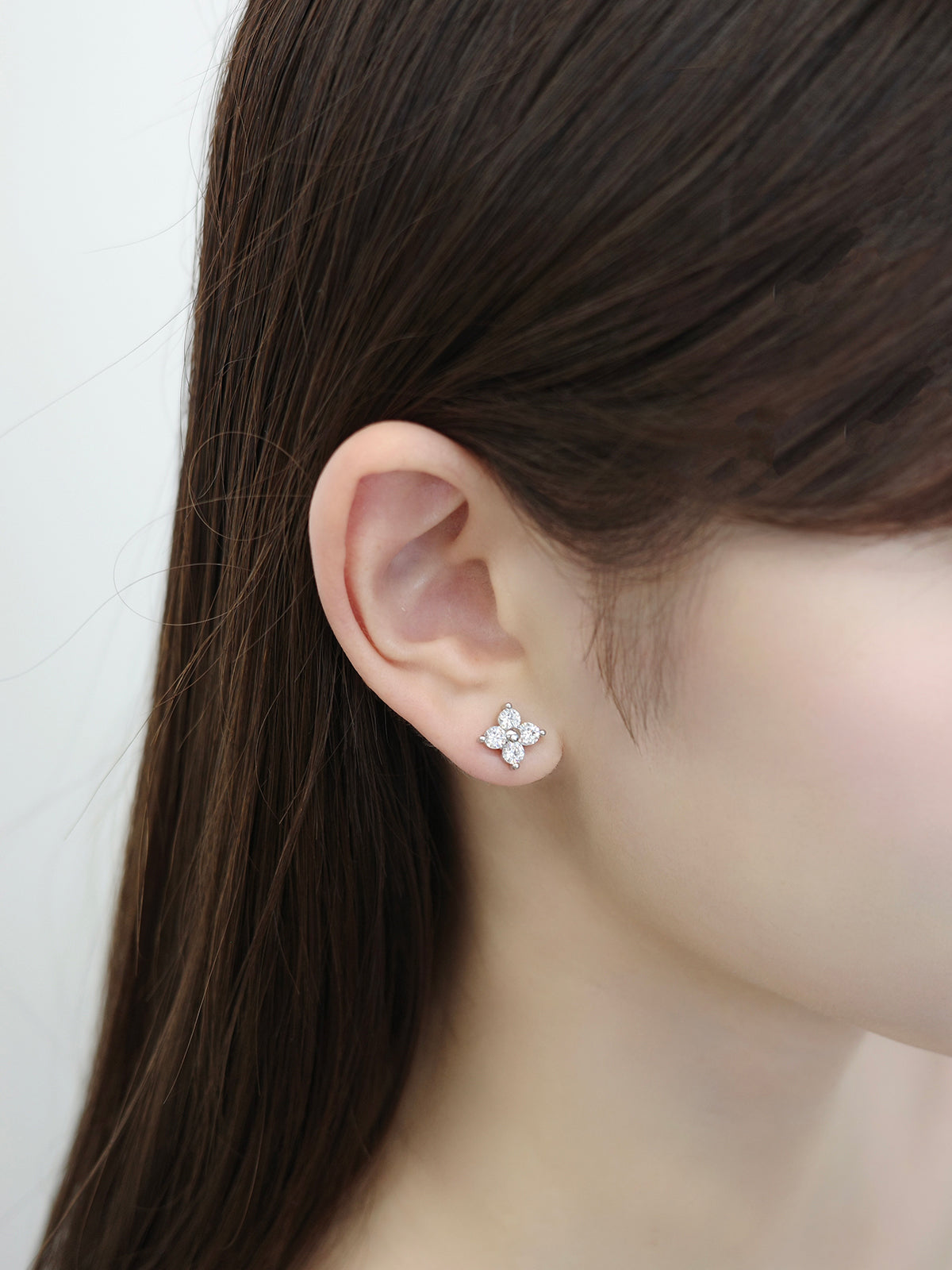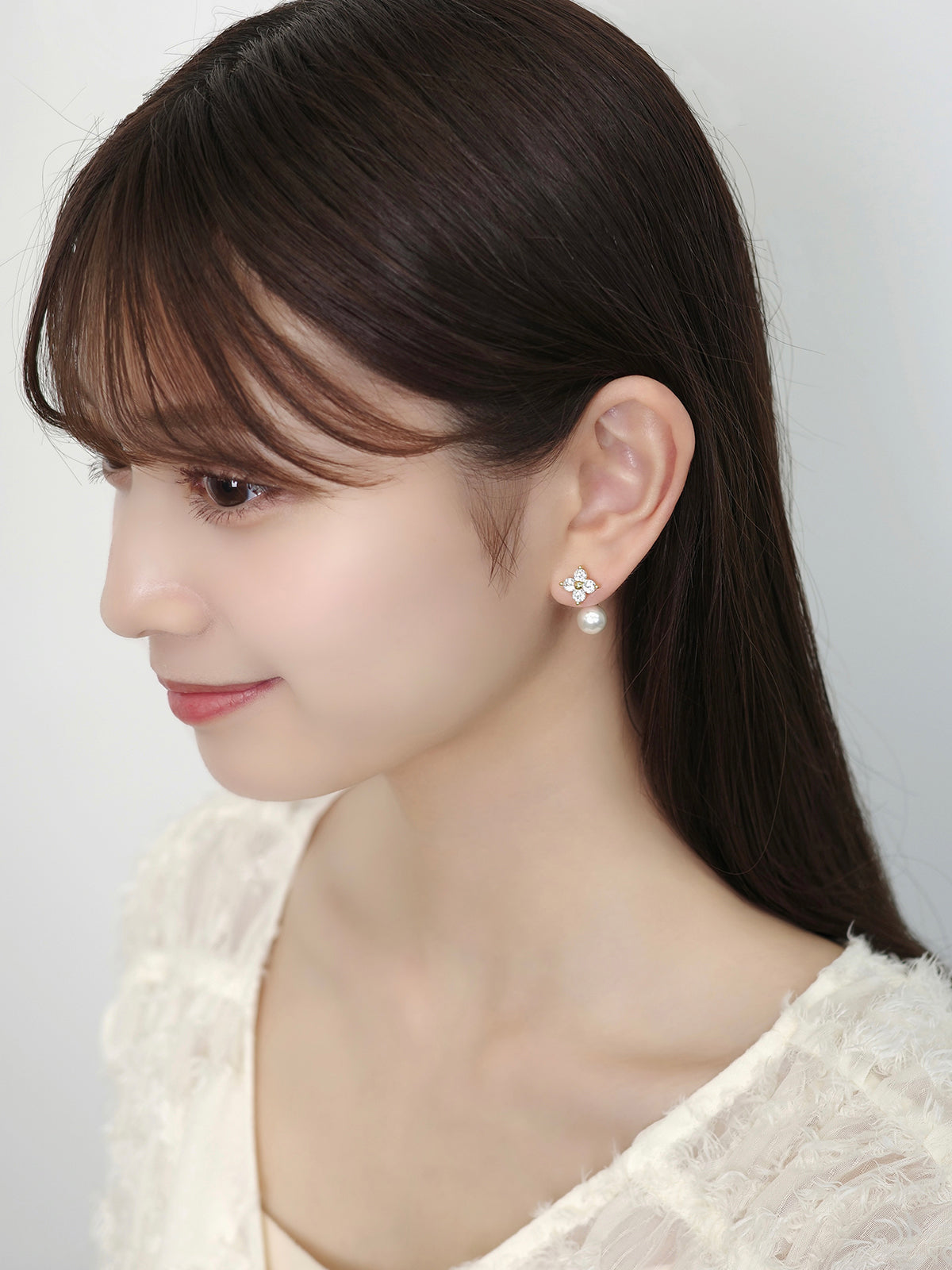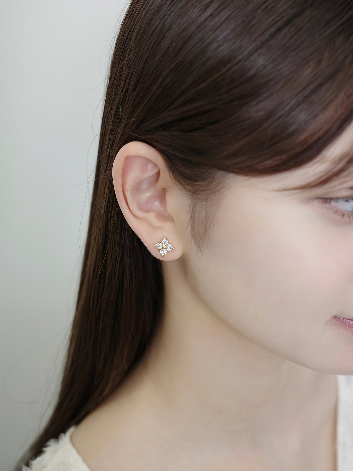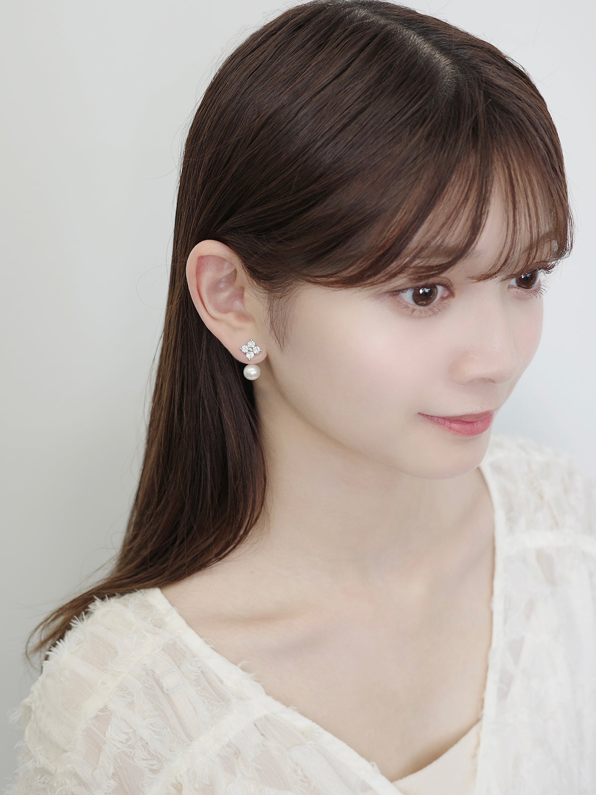繊細なフラワーモチーフが、顔まわりに可憐なきらめきを添えるマグネットピアス。