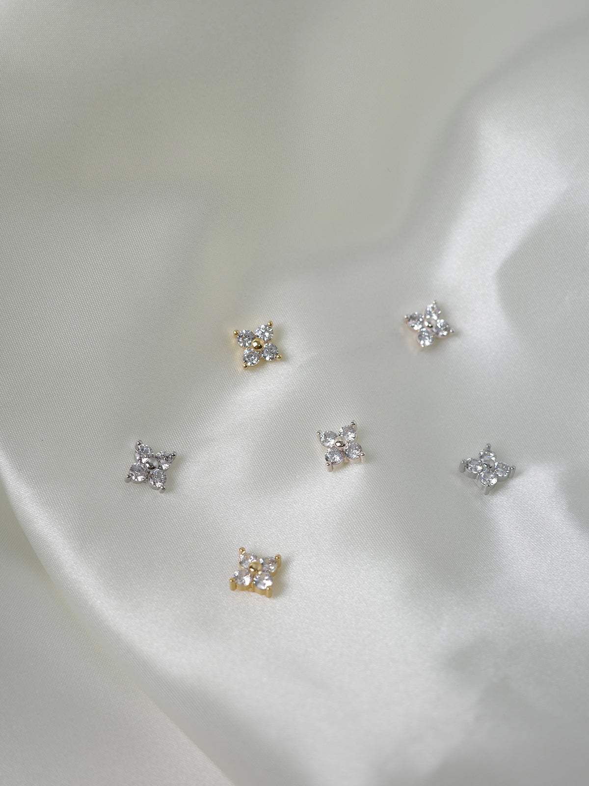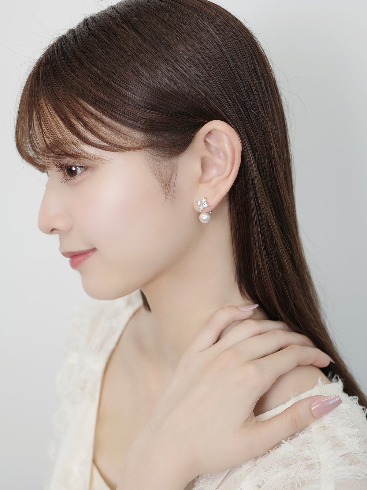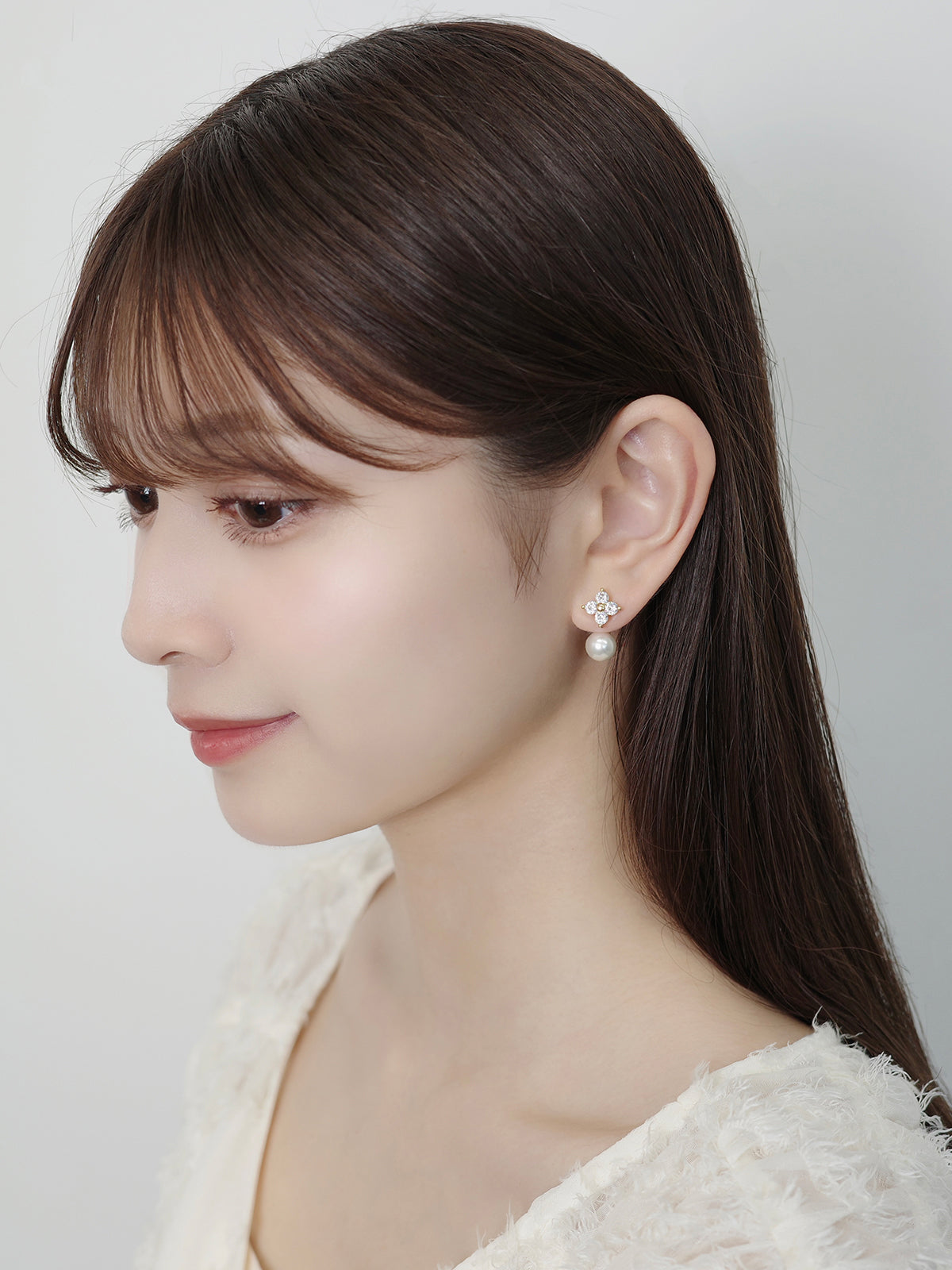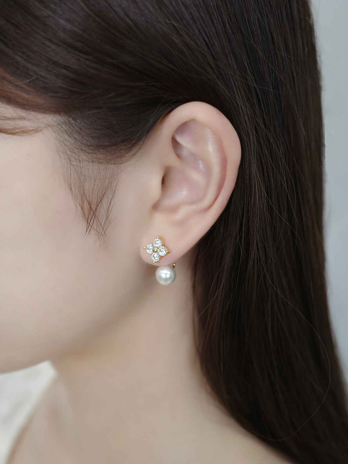 繊細なフラワーモチーフが、顔まわりに可憐なきらめきを添えるマグネットピアス。