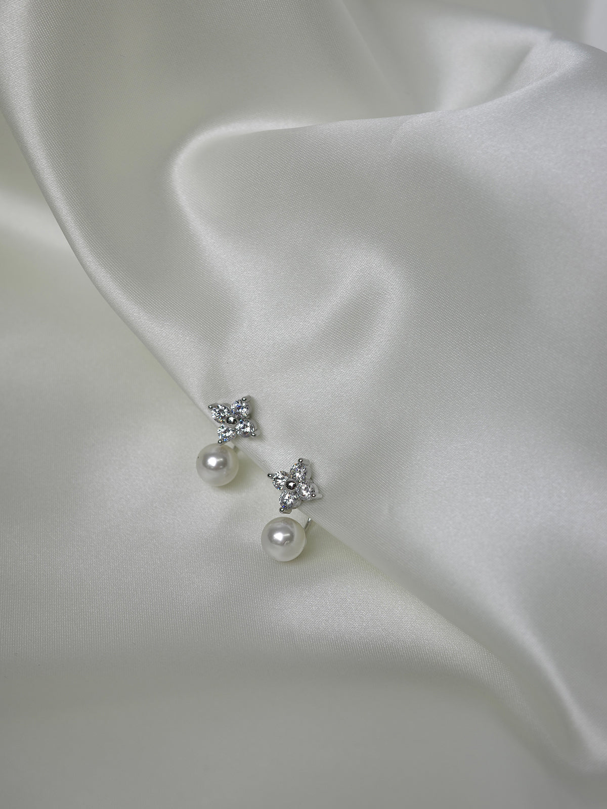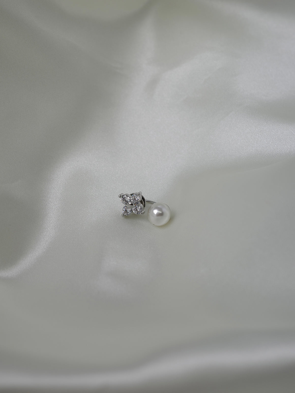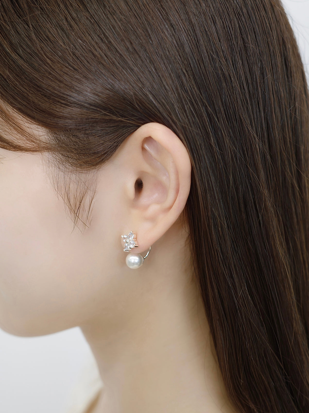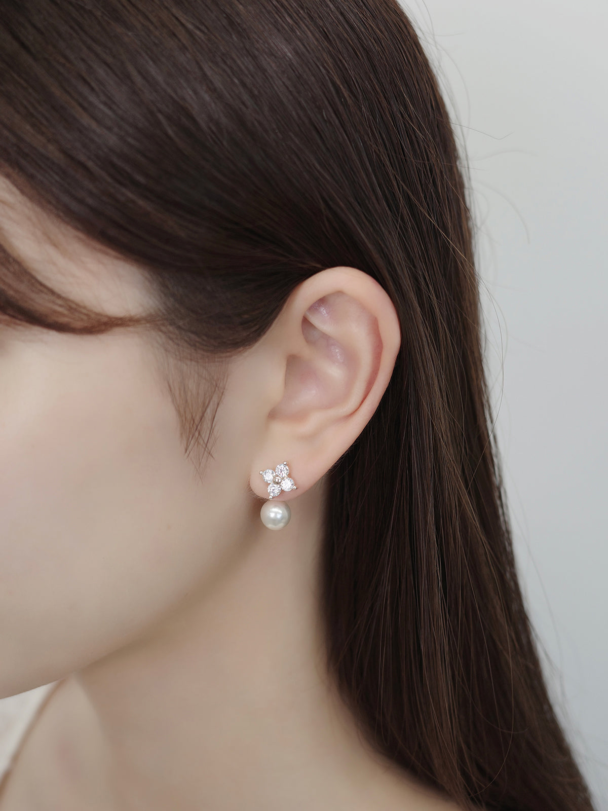 繊細なフラワーモチーフが、顔まわりに可憐なきらめきを添えるマグネットピアス。