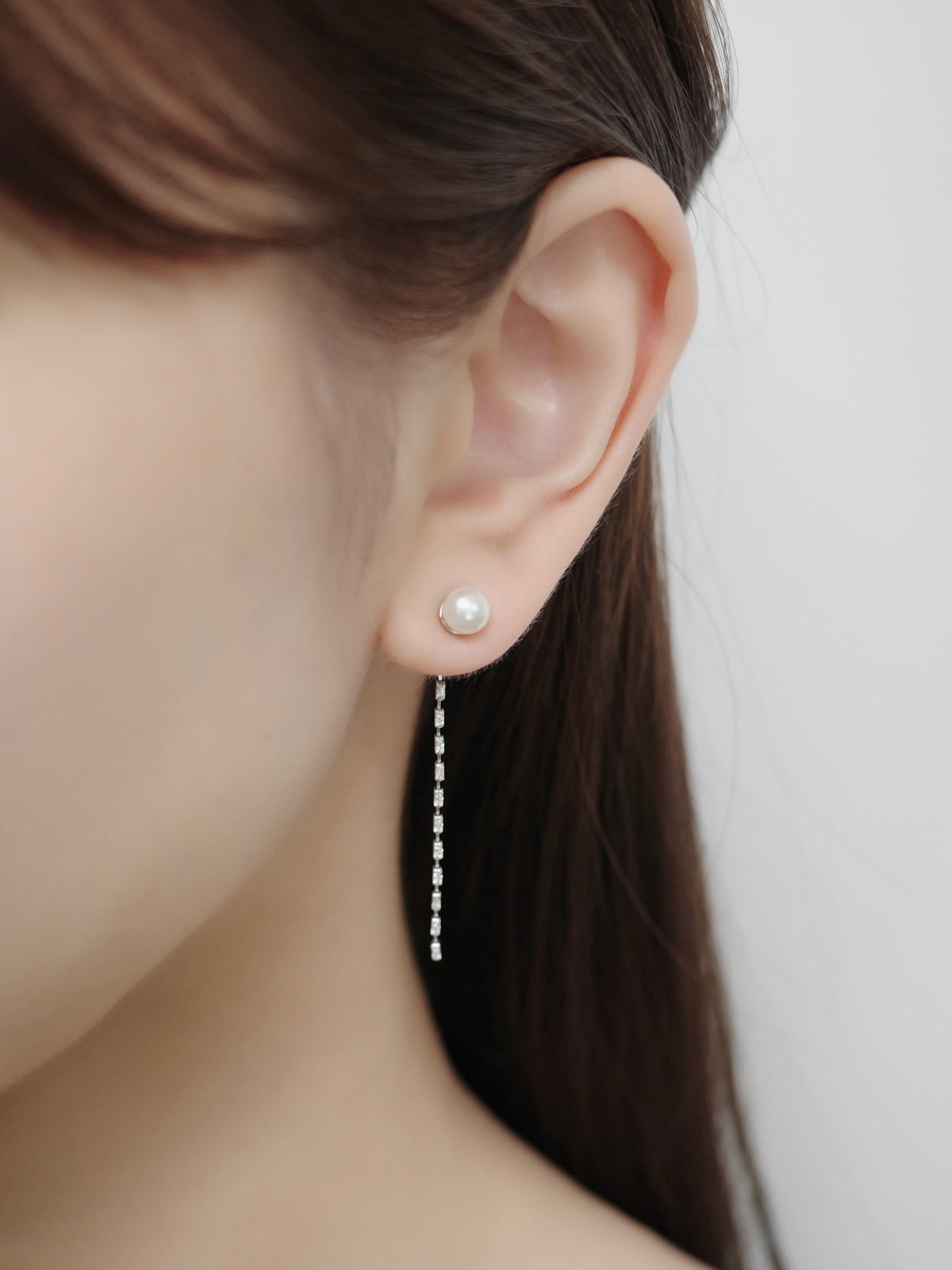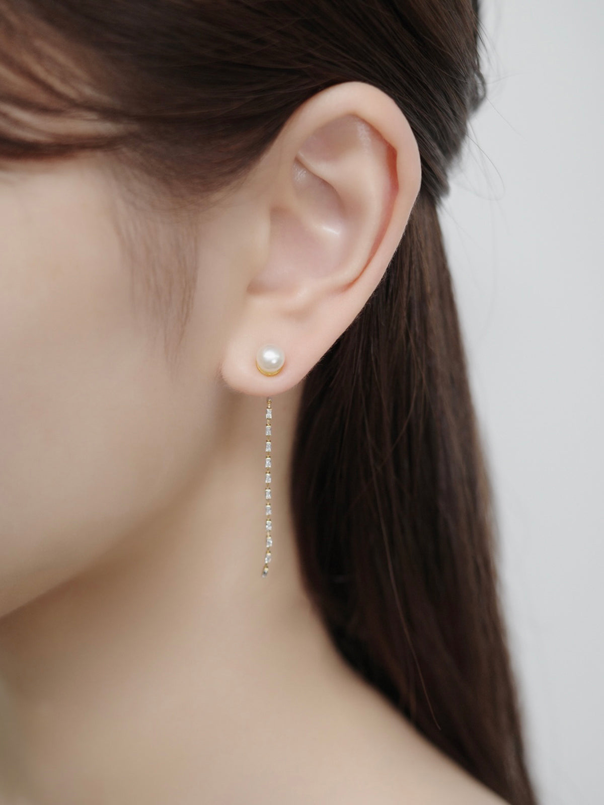 デイリー使いにぴったりな小粒パールと動きに合わせて揺れるジルコニアを楽しめるデザイン。