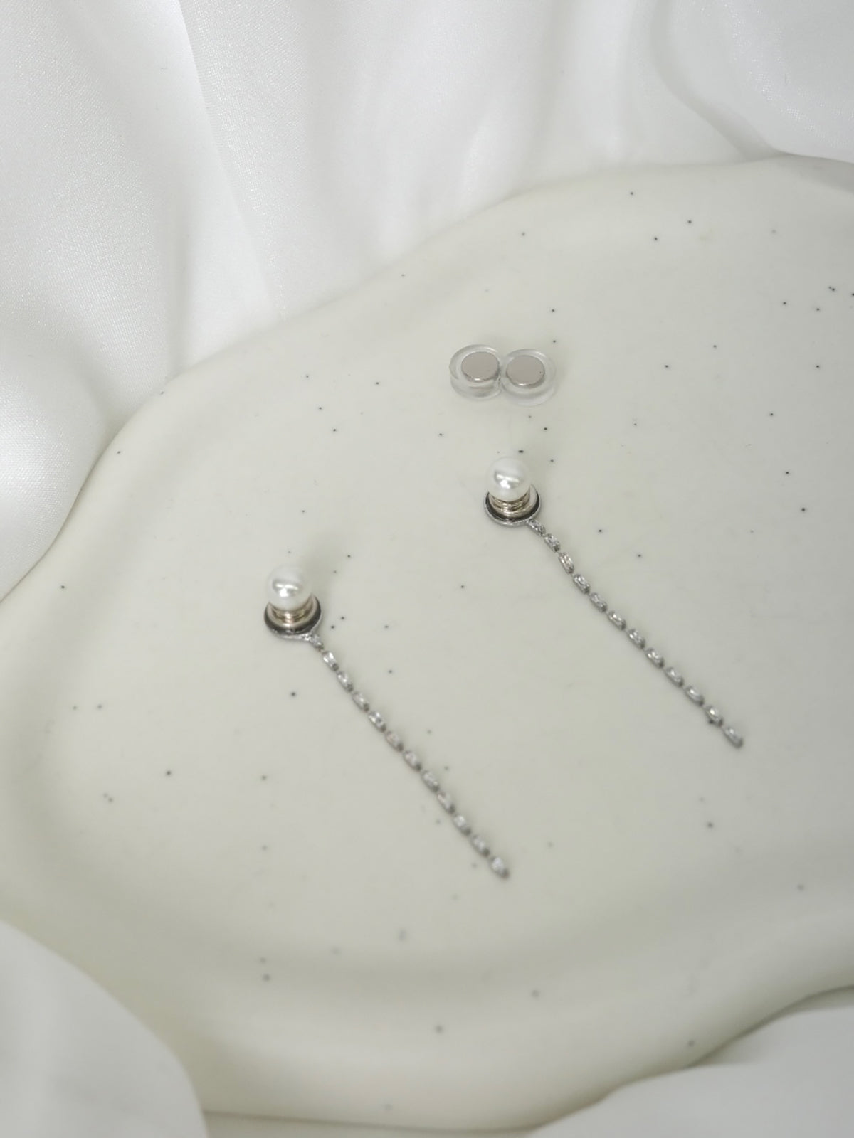 シーンに合わせて付け替えられる2WAY仕様で、ジルコニアチェーンのスタイルと、シンプルなパールだけのスタイルの2パターンをお楽しみいただけます。