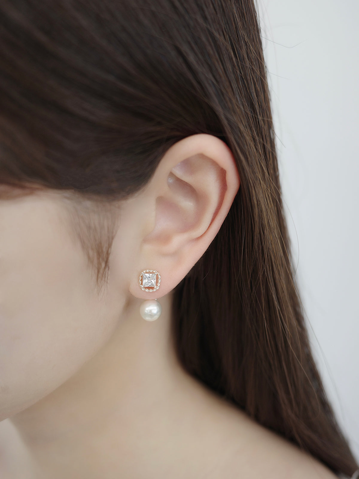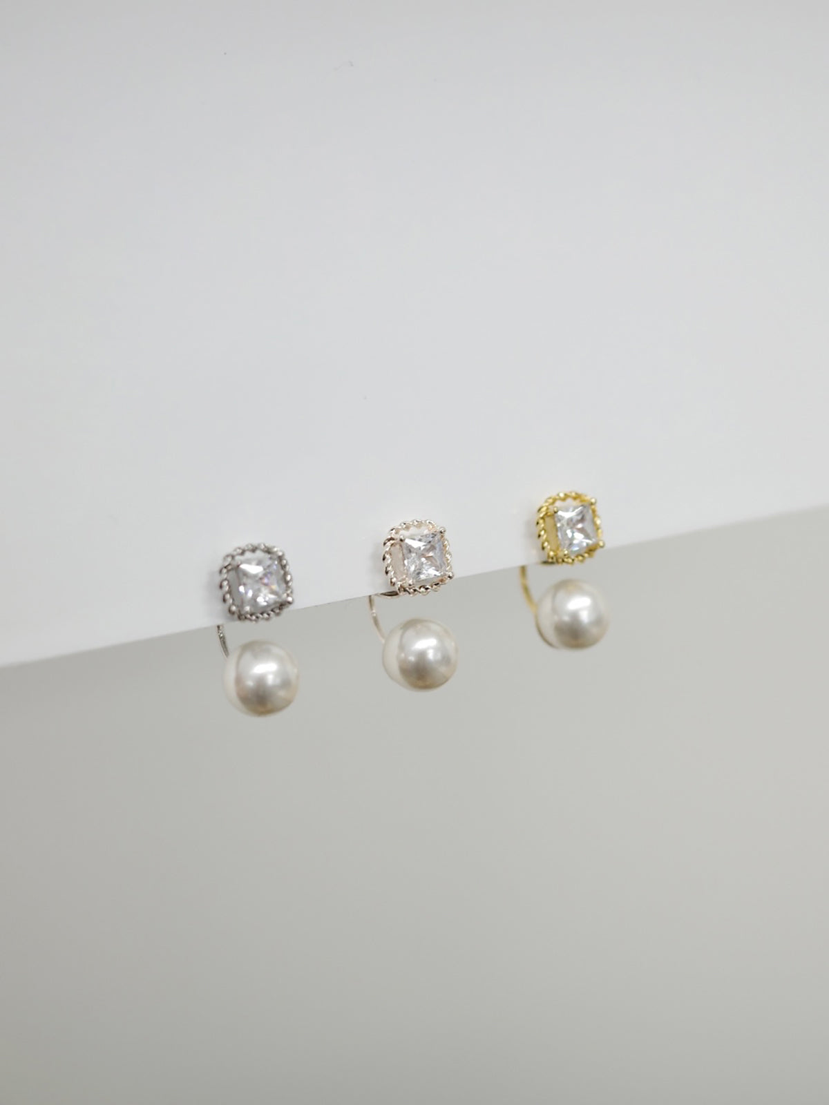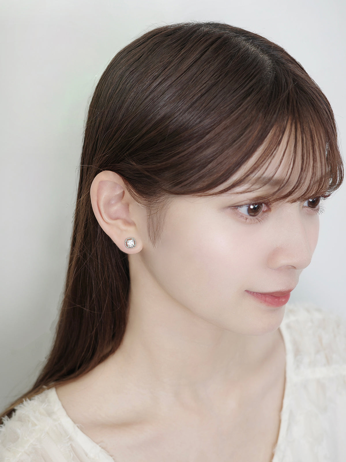 ツイストフレームのビジューが、耳元にアクセントを添えるマグネットピアス。
