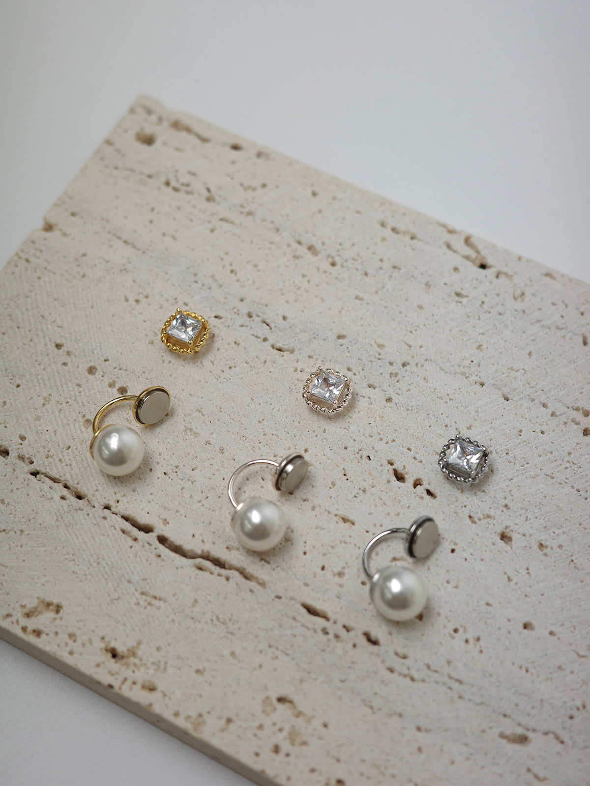 シーンに合わせて付け替えられる2WAY仕様で、存在感のあるパール付きと、シンプルなマグネットだけのスタイルの2パターンをお楽しみいただけます。