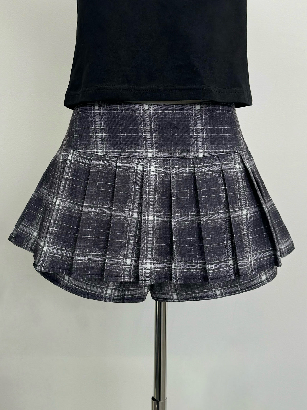 落ち着いたグレーカラーにチェック柄を組み合わせたマイクロミニスカパン。