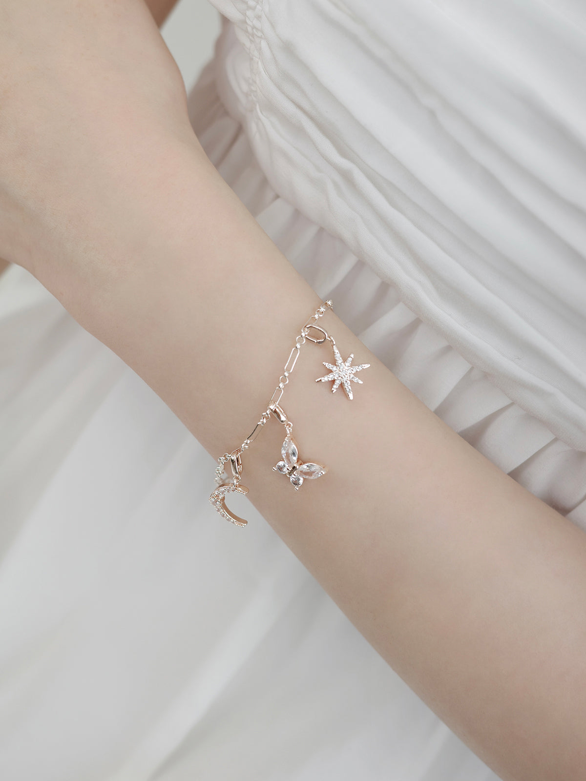 月のモチーフにキュービックジルコニアが繊細に輝く、幻想的なクリスタルルナチャーム。