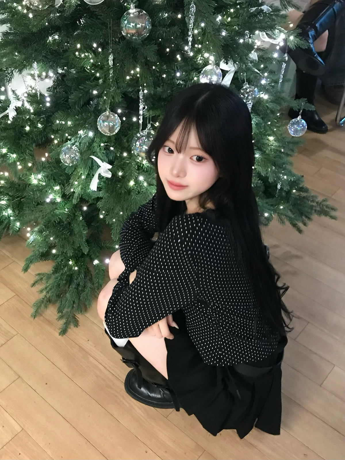 Vネックのラインがデコルテをきれいに見せ、顔周りもすっきりとした印象に。