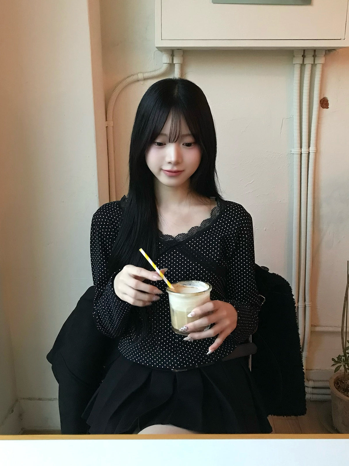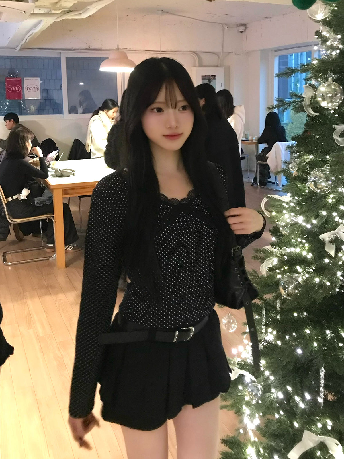 細かなドット柄を使用し、フロントにはクロスディテールのレースを施した華やぎのあるカットソー。