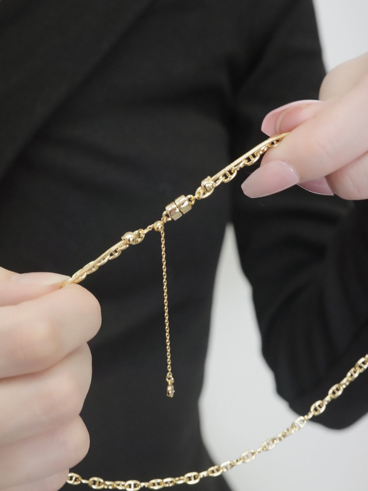 しなやかな艶感のあるスネークチェーンが肌に馴染むデザイン。