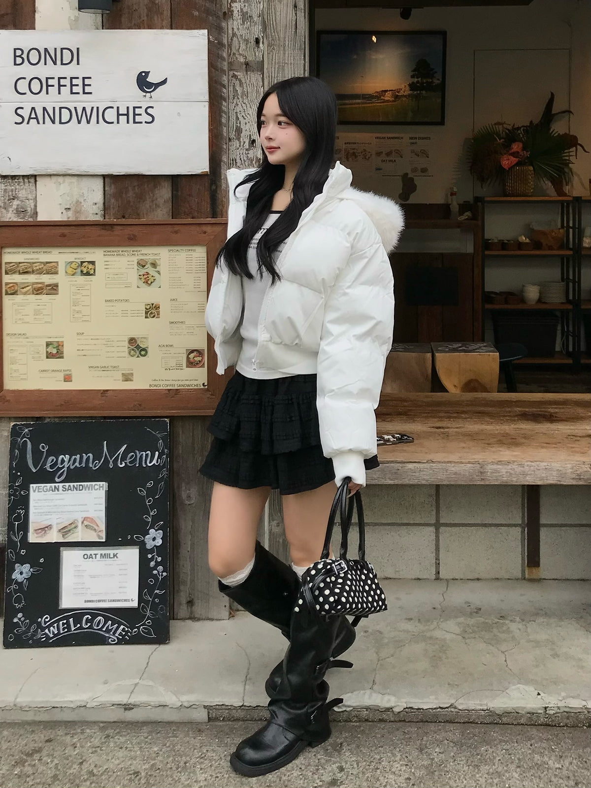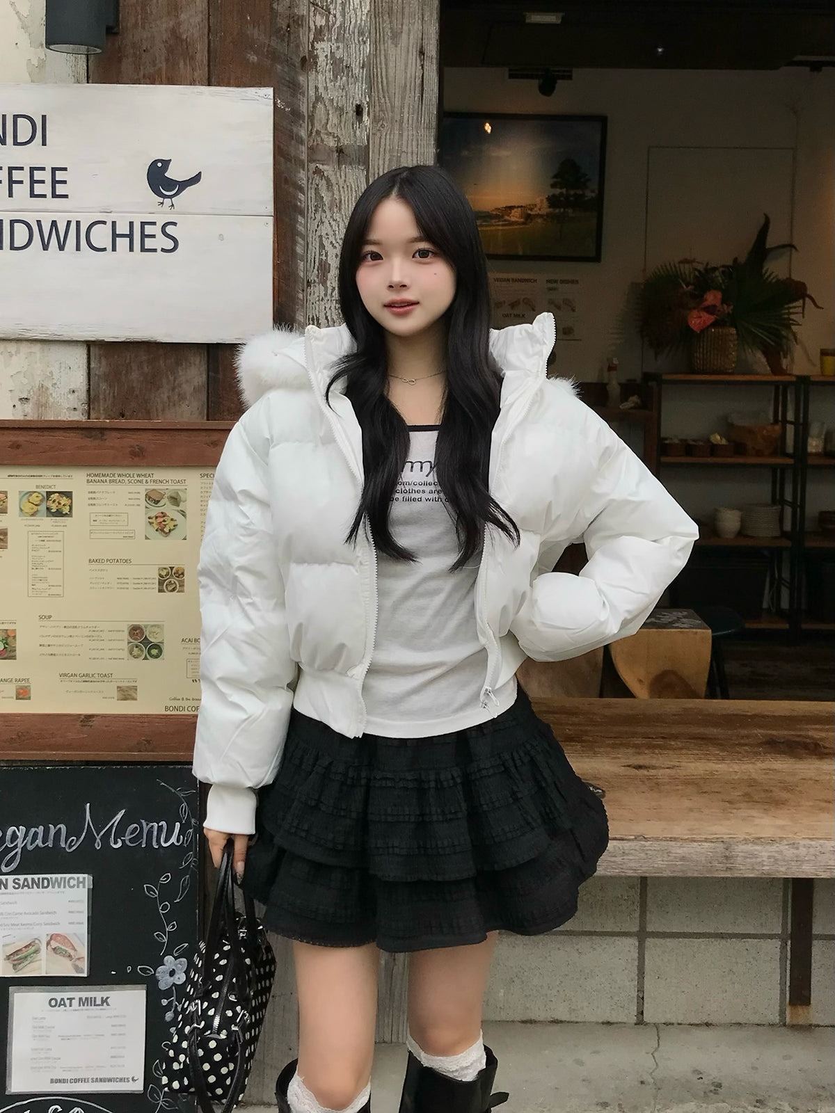 コンパクトな丈感とダブルジップ仕様が今年らしいショート丈のパデッドブルゾン。