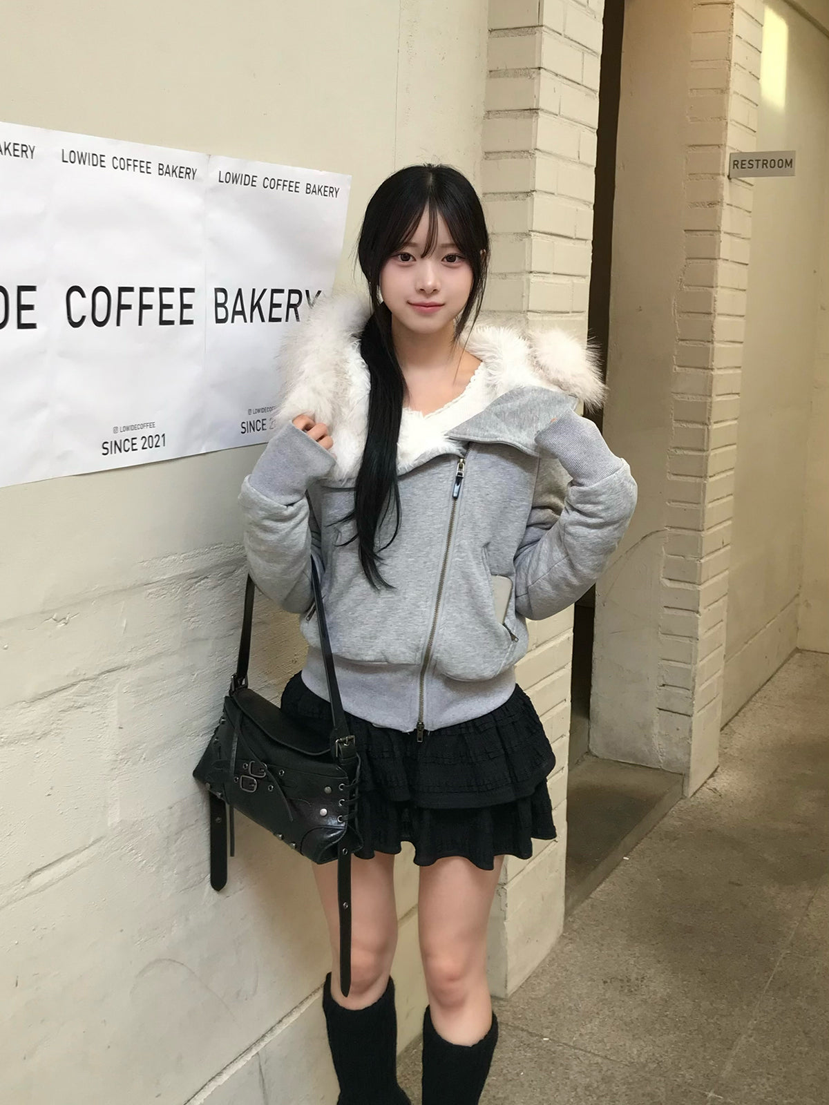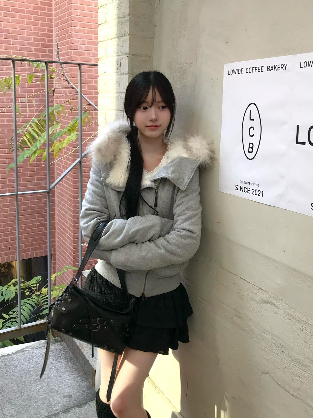 ふわっとしたファータッチ素材を内側まで使用し、暖かさと着心地の良さを兼ね備えたライダース風ジャケット。