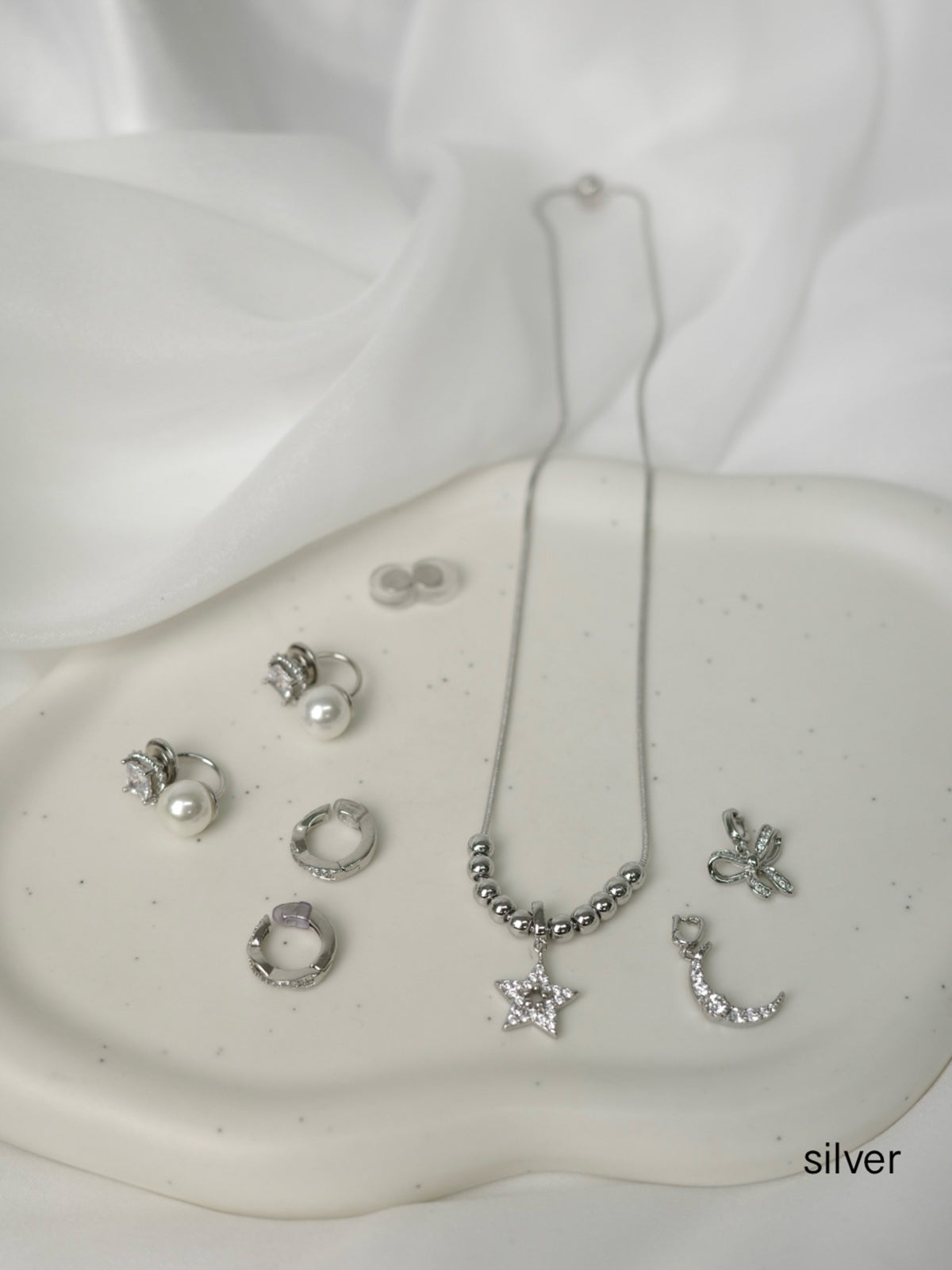※チャームは、ブレスレットまたはネックレスと同じカラーのものが3点入ります。