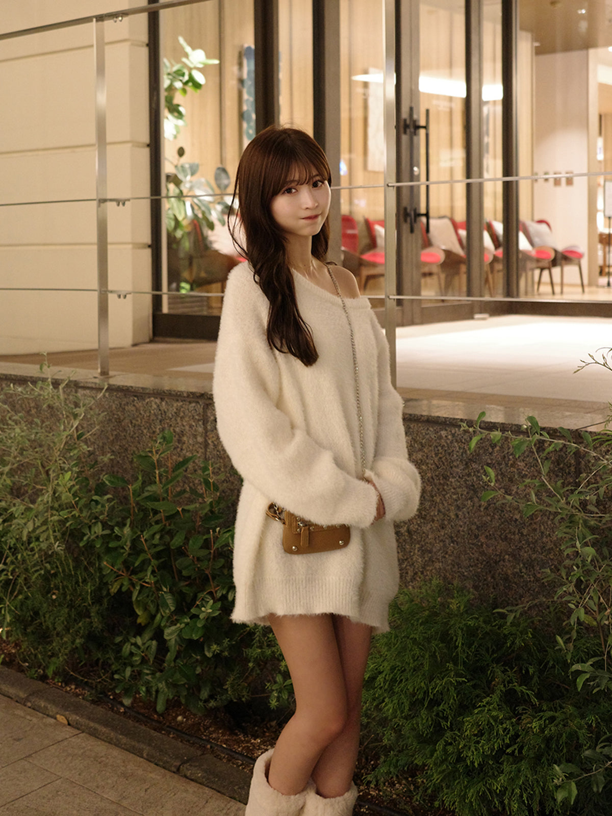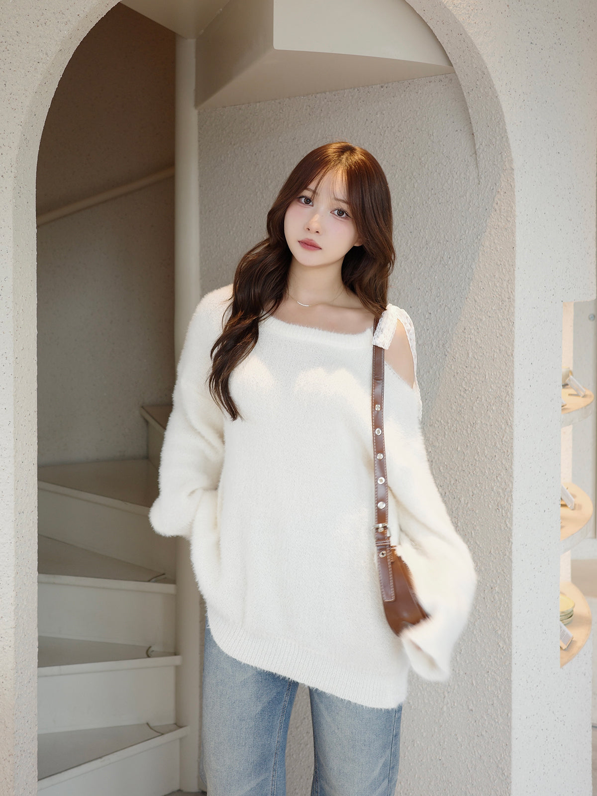 片方の肩が見えるデザインで、抜け感のあるワンショル風シルエットに。