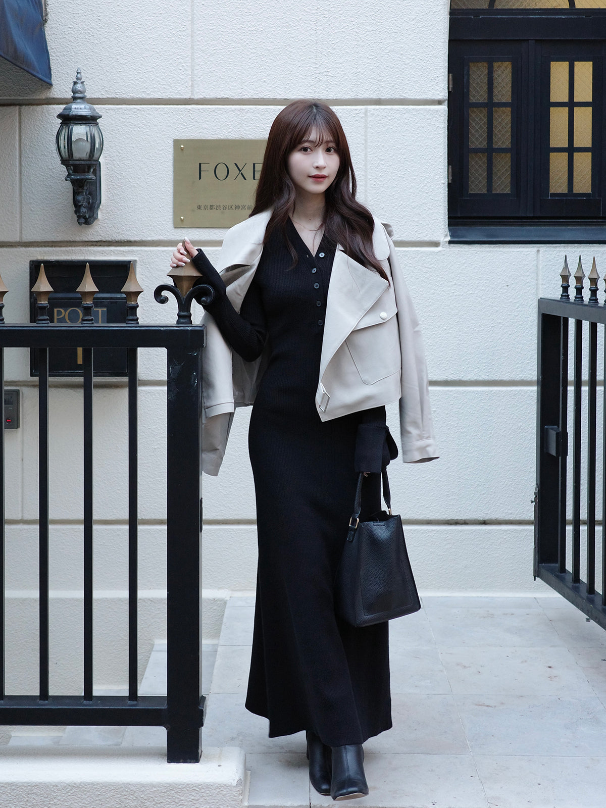 大きなポケット付きでデザイン性と機能性に優れた一着です。