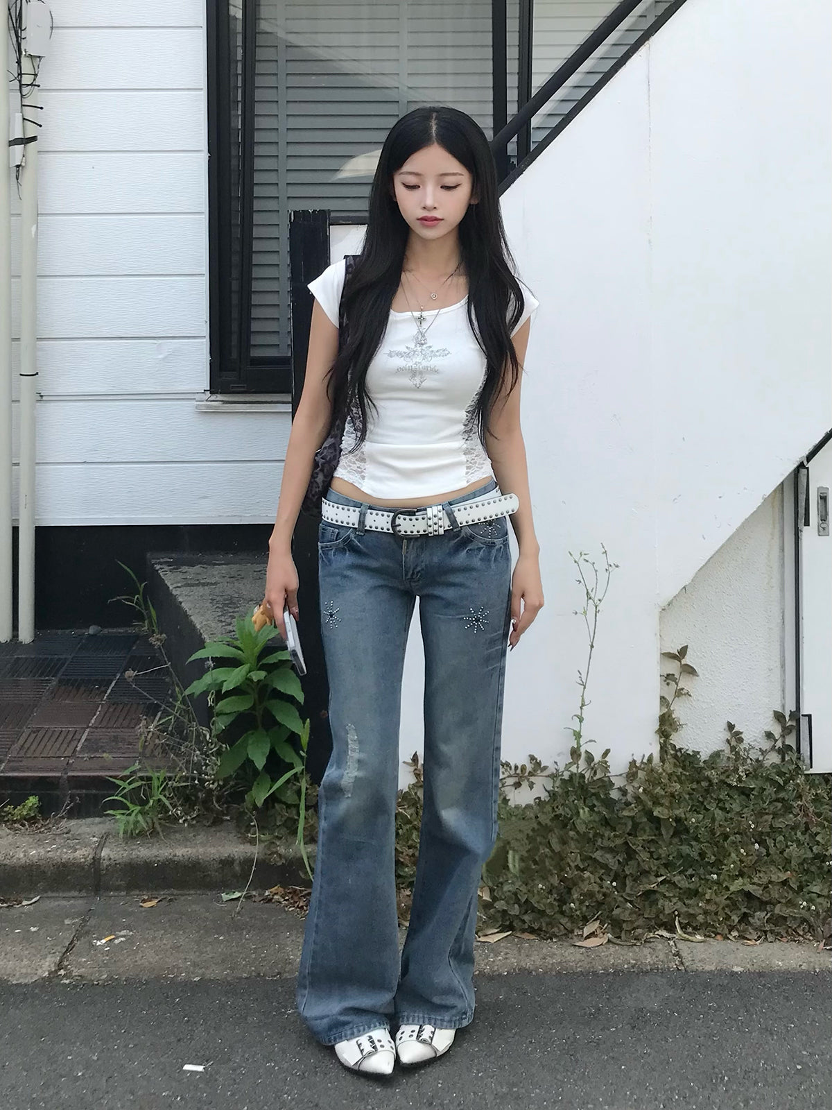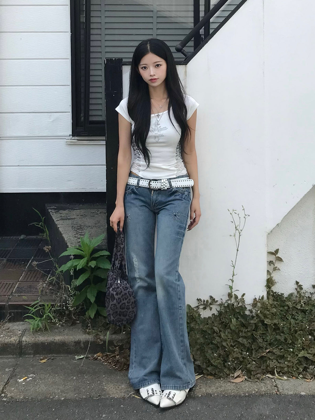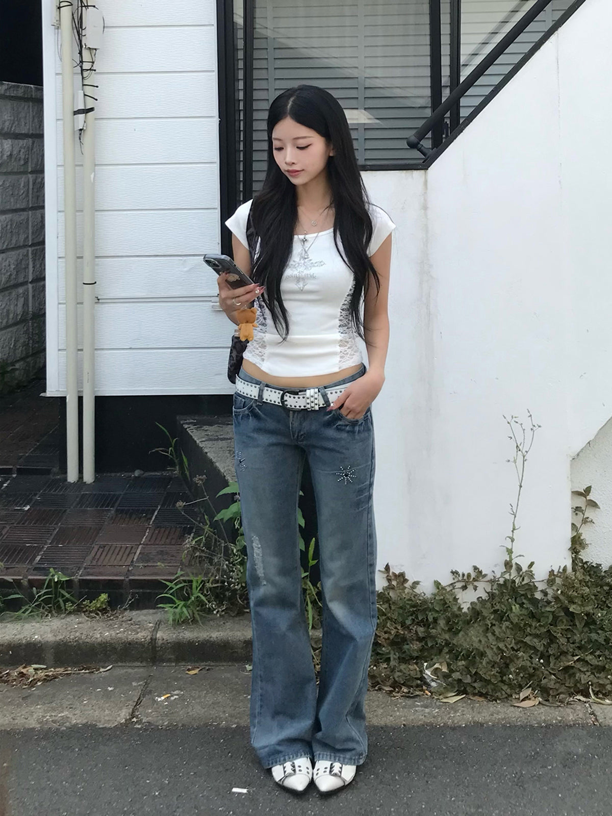 ローライズの腰位置がこなれた雰囲気をプラス。