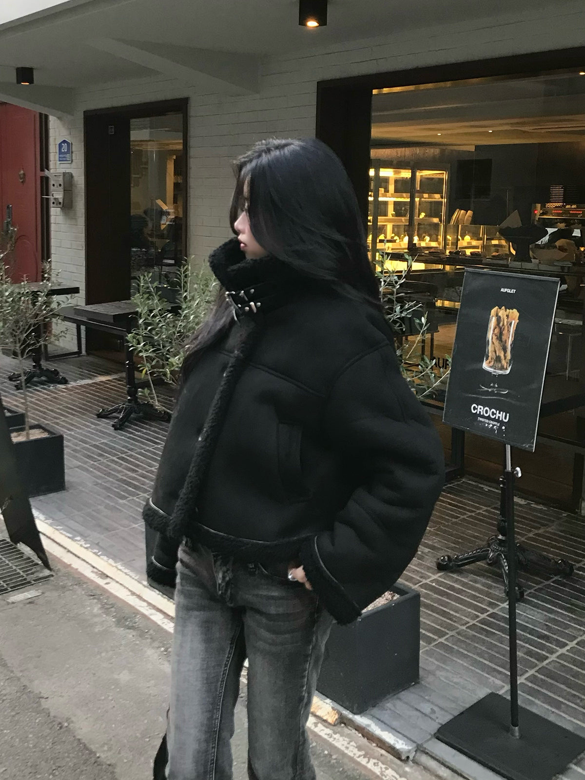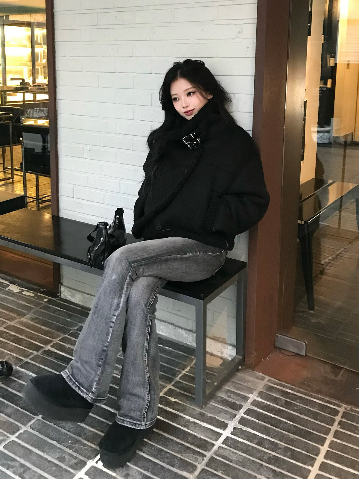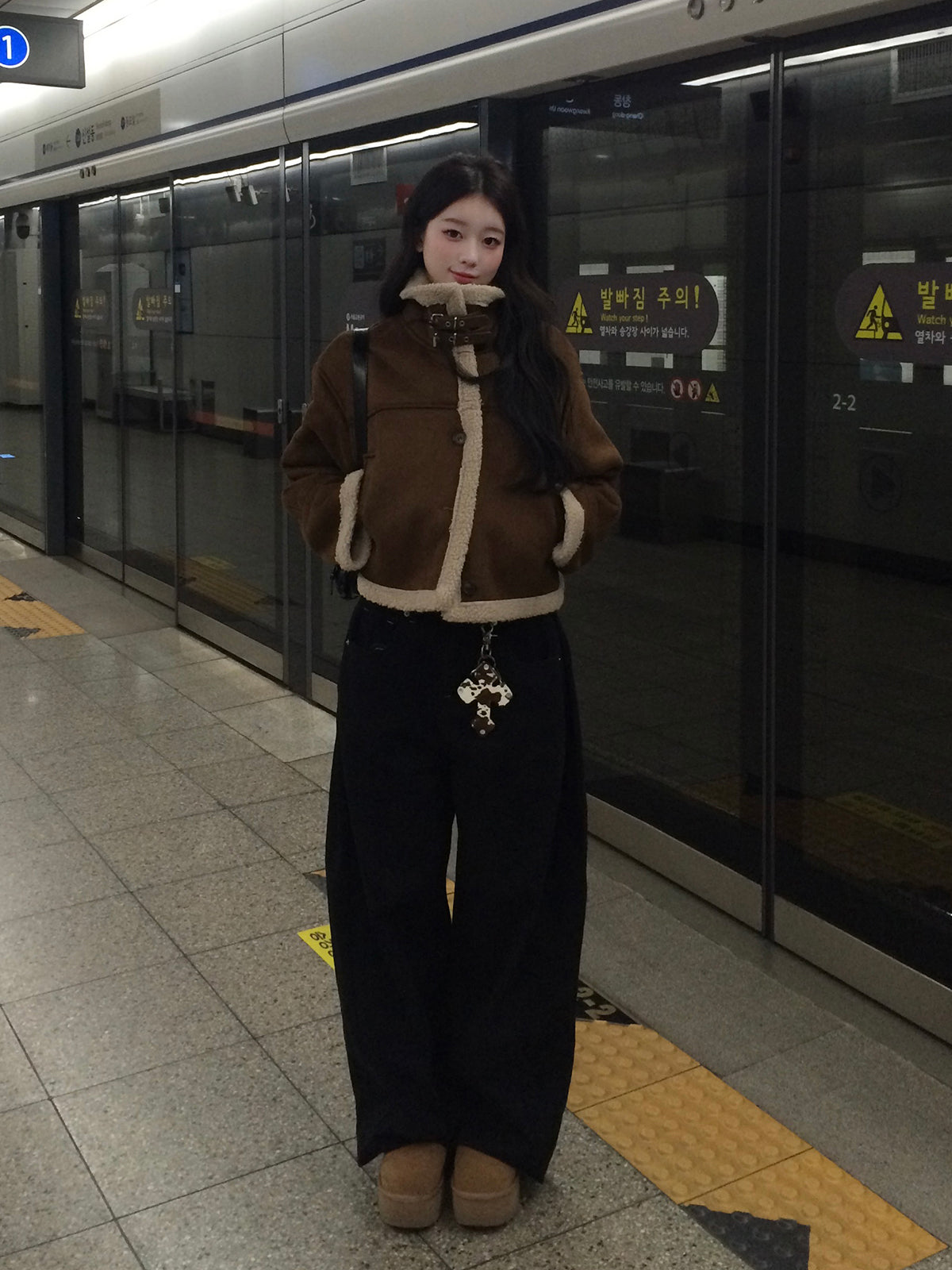 あたたかみのあるムートンタッチ素材とふんわりボアの組み合わせが魅力のコート。