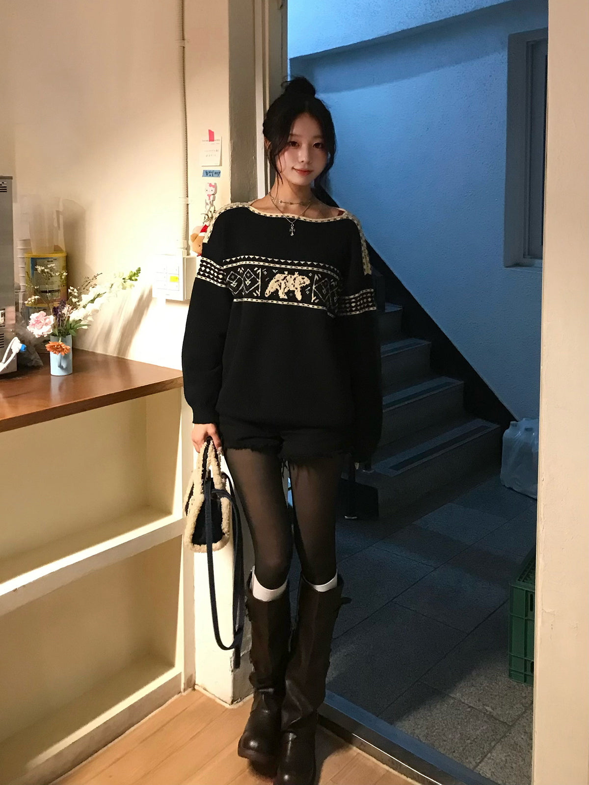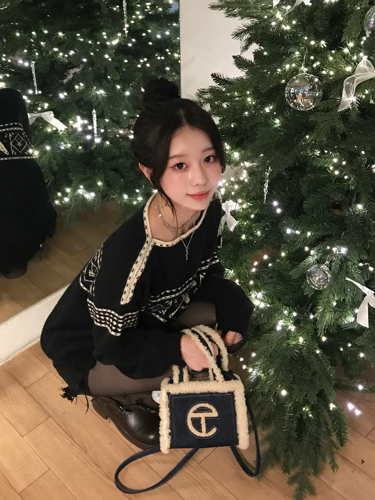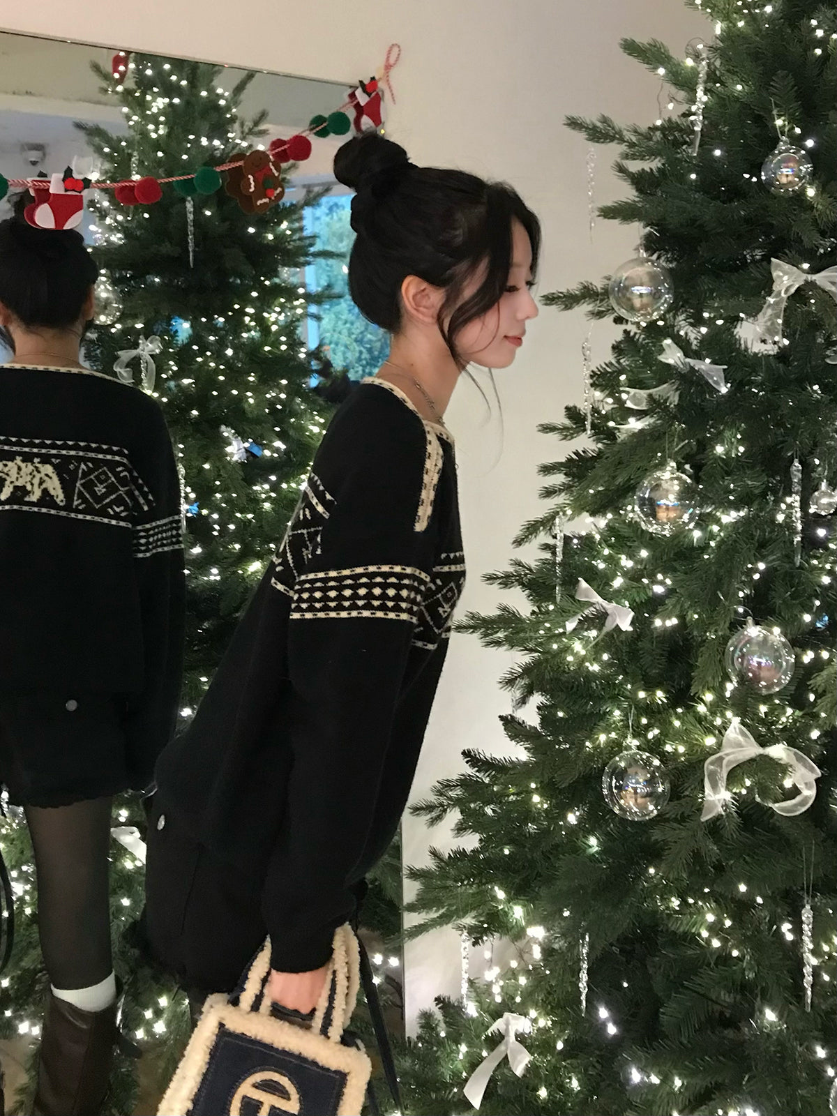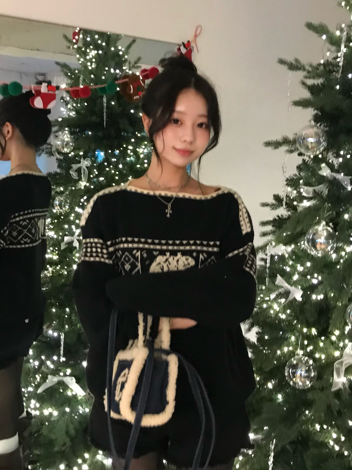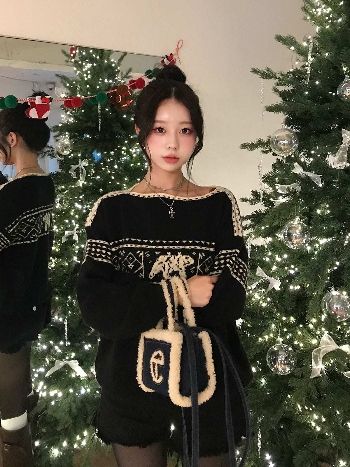 季節ムードたっぷりのノルディック柄が目を引くニット。