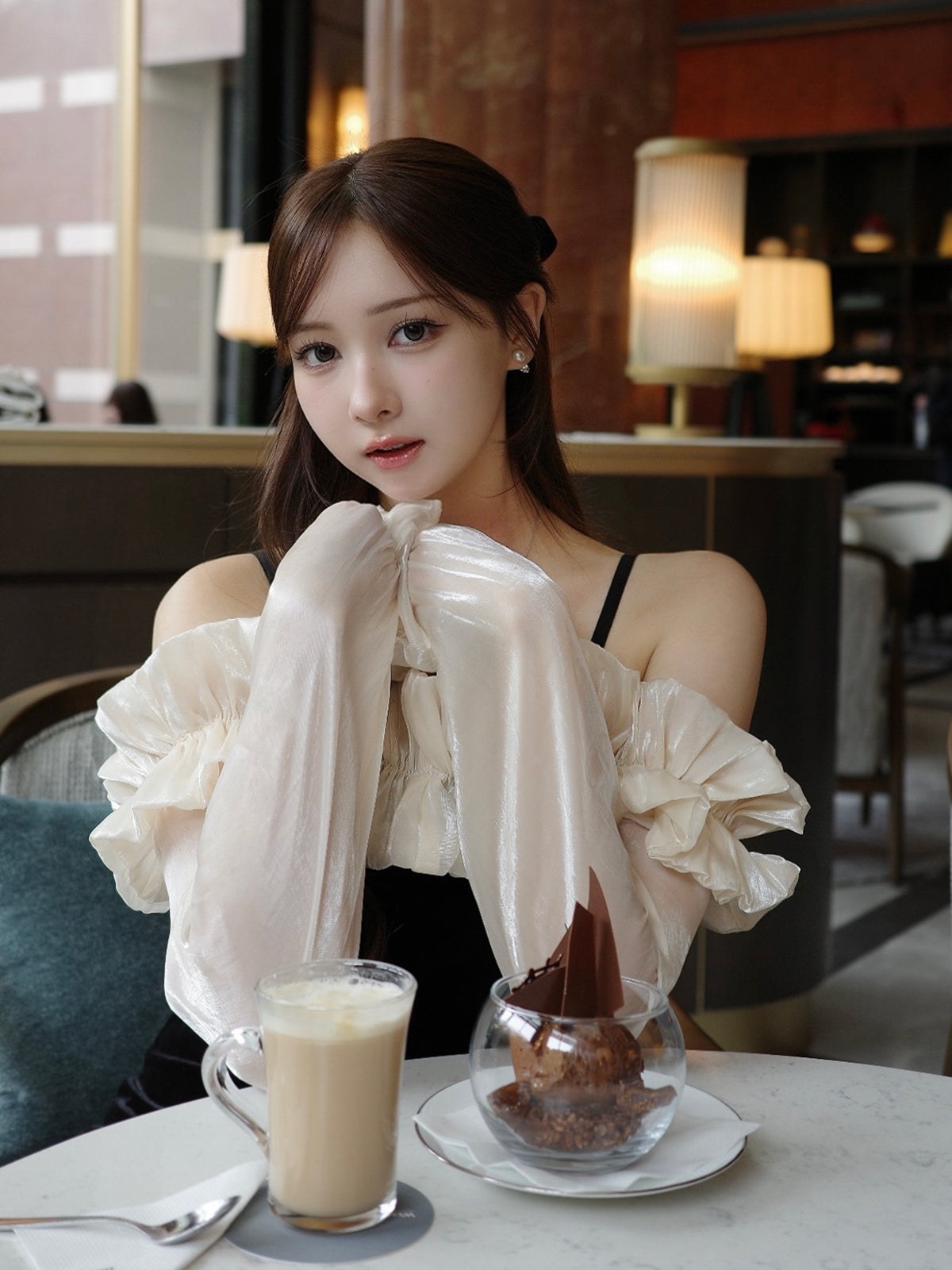 袖の透け感とスリットが軽やかさを添え、程よい抜け感をプラスします。