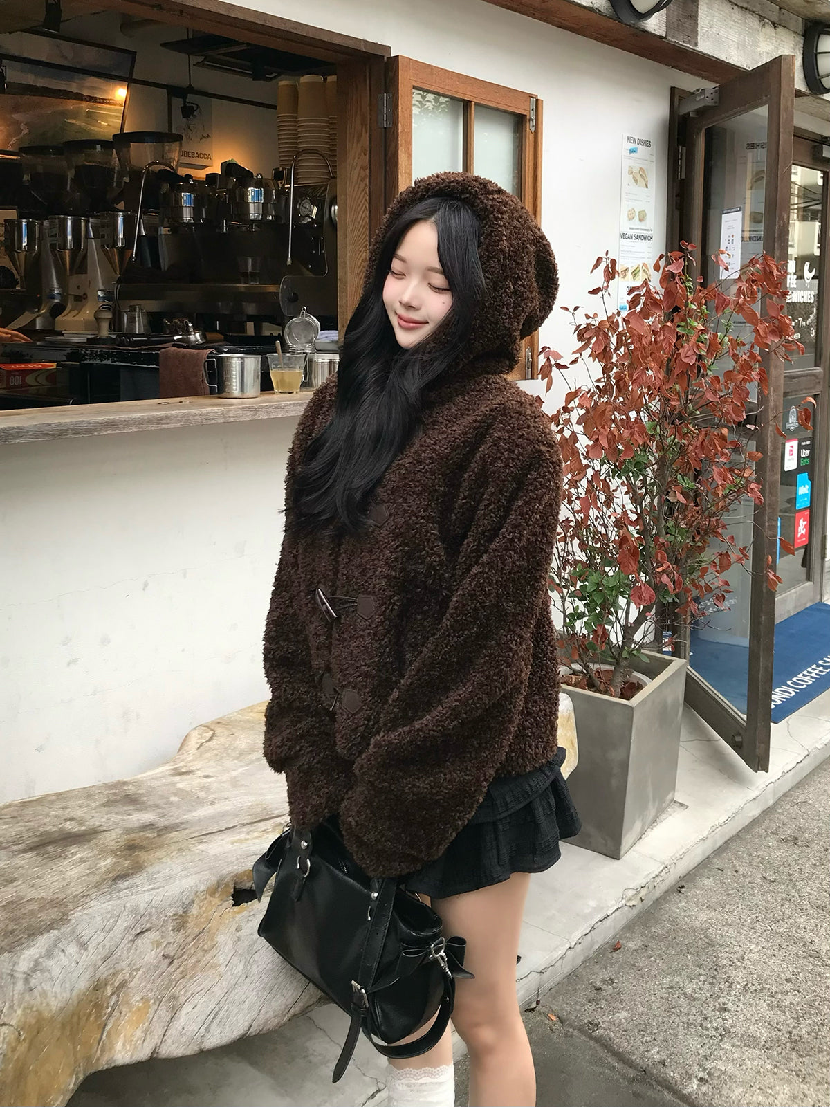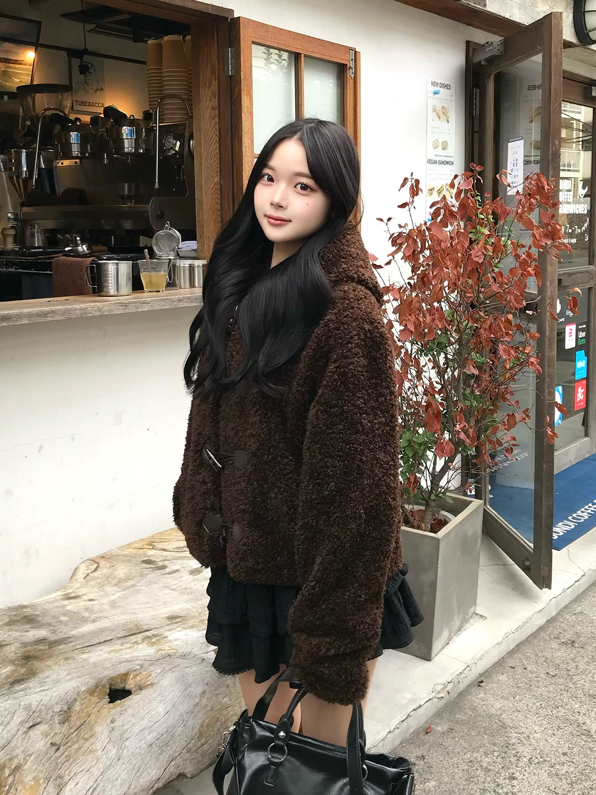 くるくるとしたプードルファータッチが、シーズンムードをぐっと高めるコート。