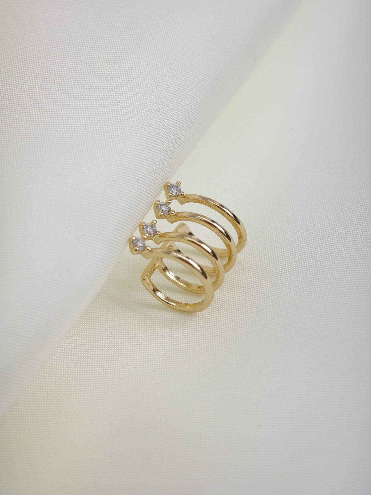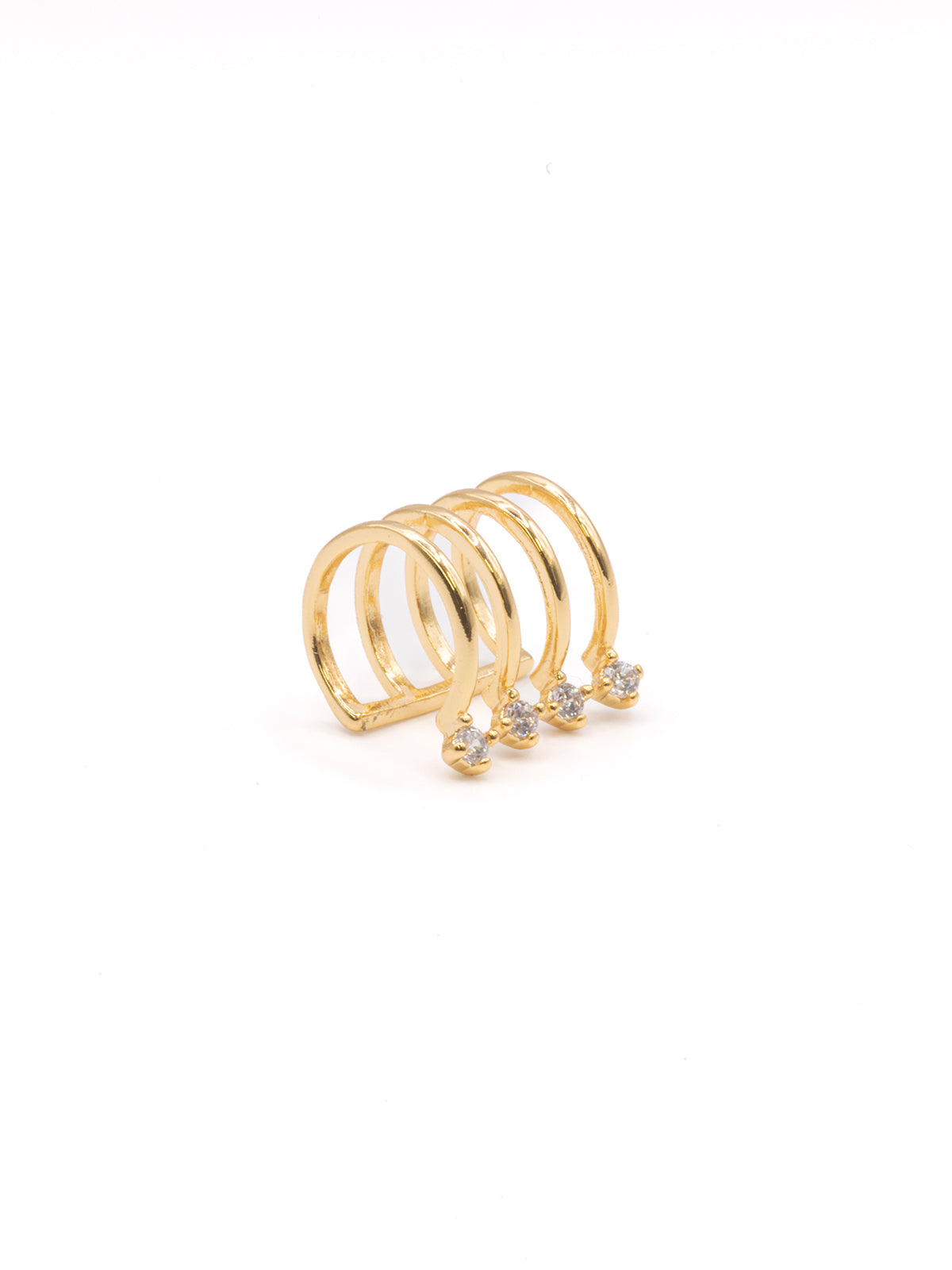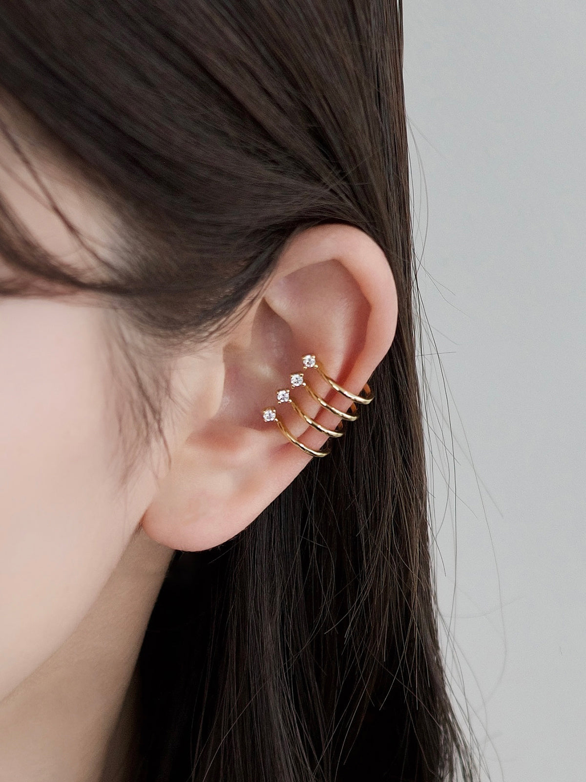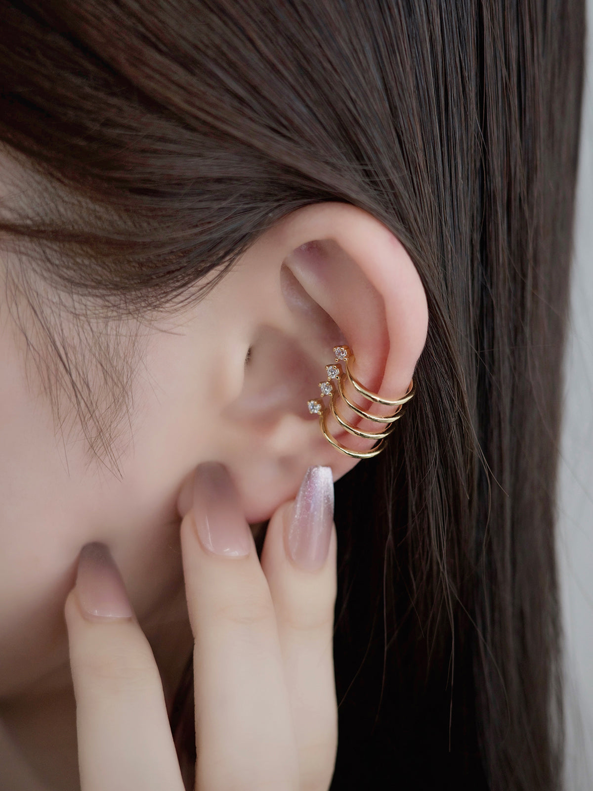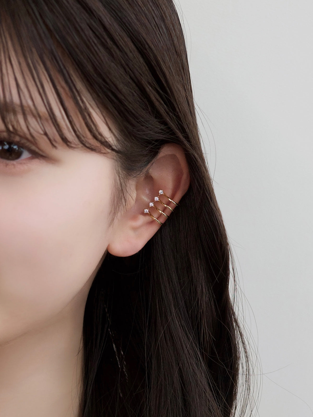 キュービックジルコニアが4つ並んだデザインのイヤーカフ。