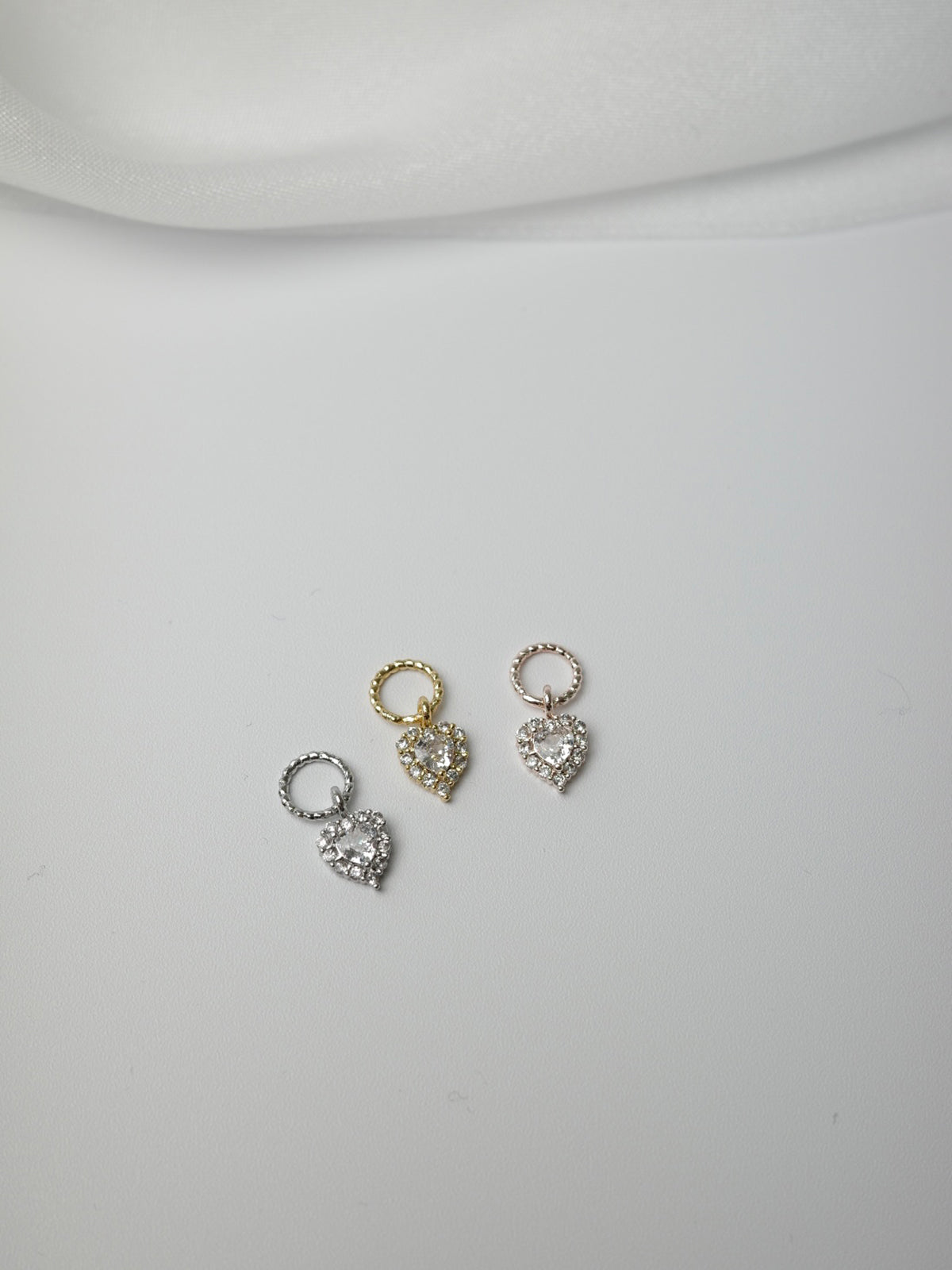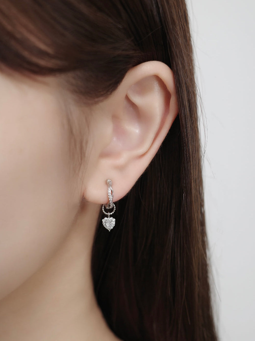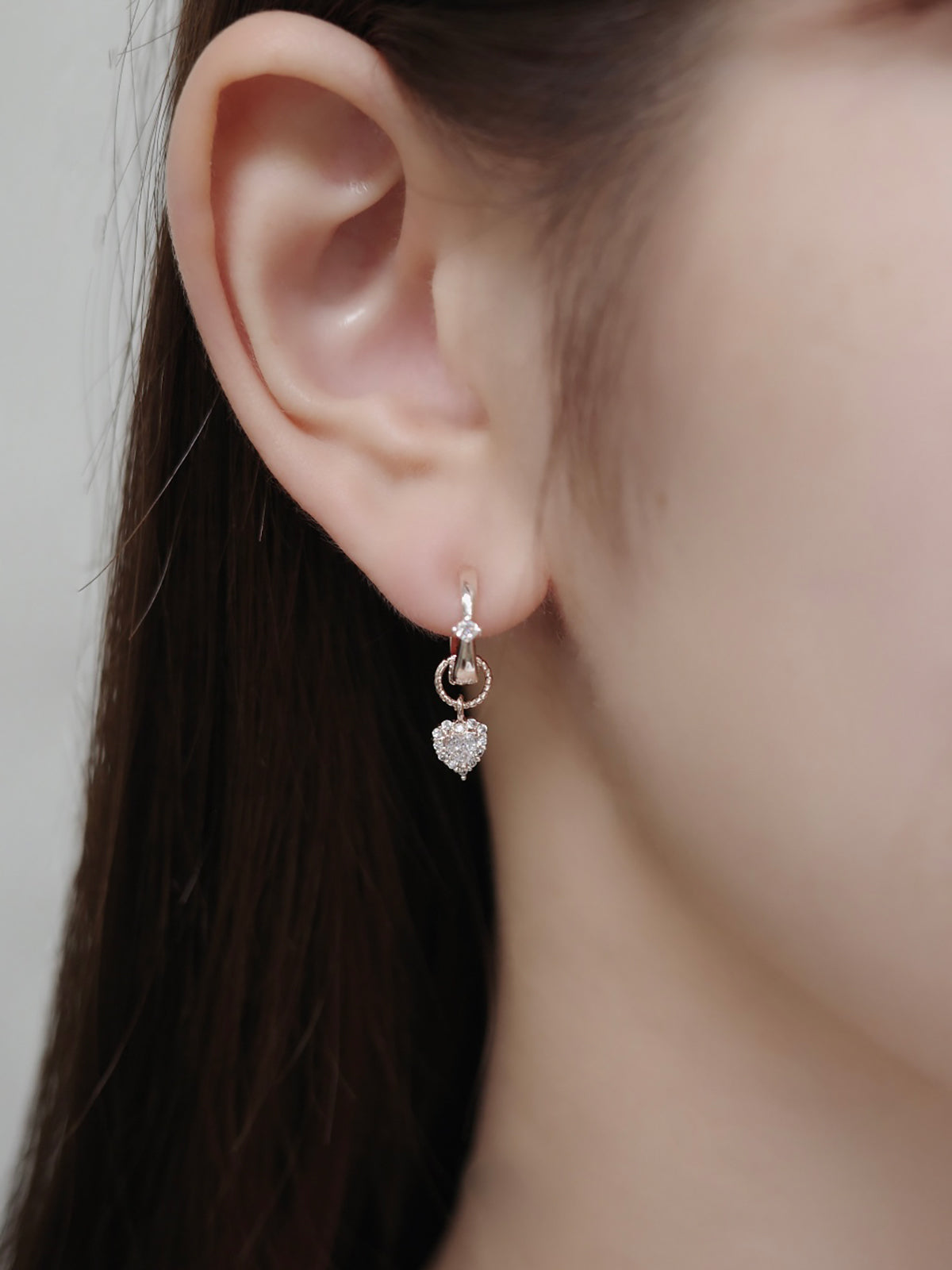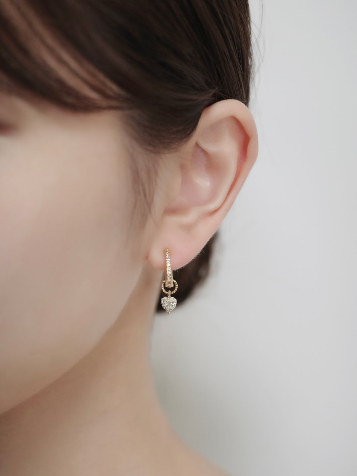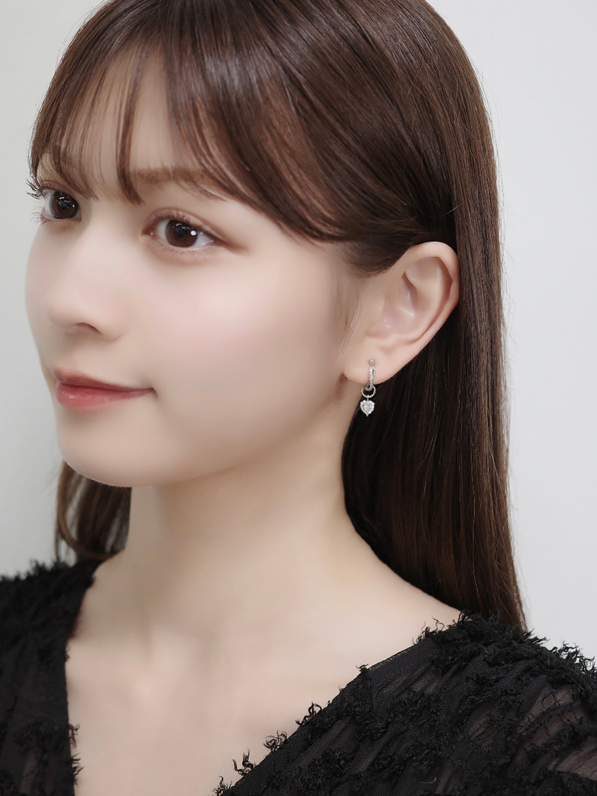 ハートのジルコニアを中心に、丸のジルコニアが囲むデザインで、立体感のある華やかなきらめきを演出。