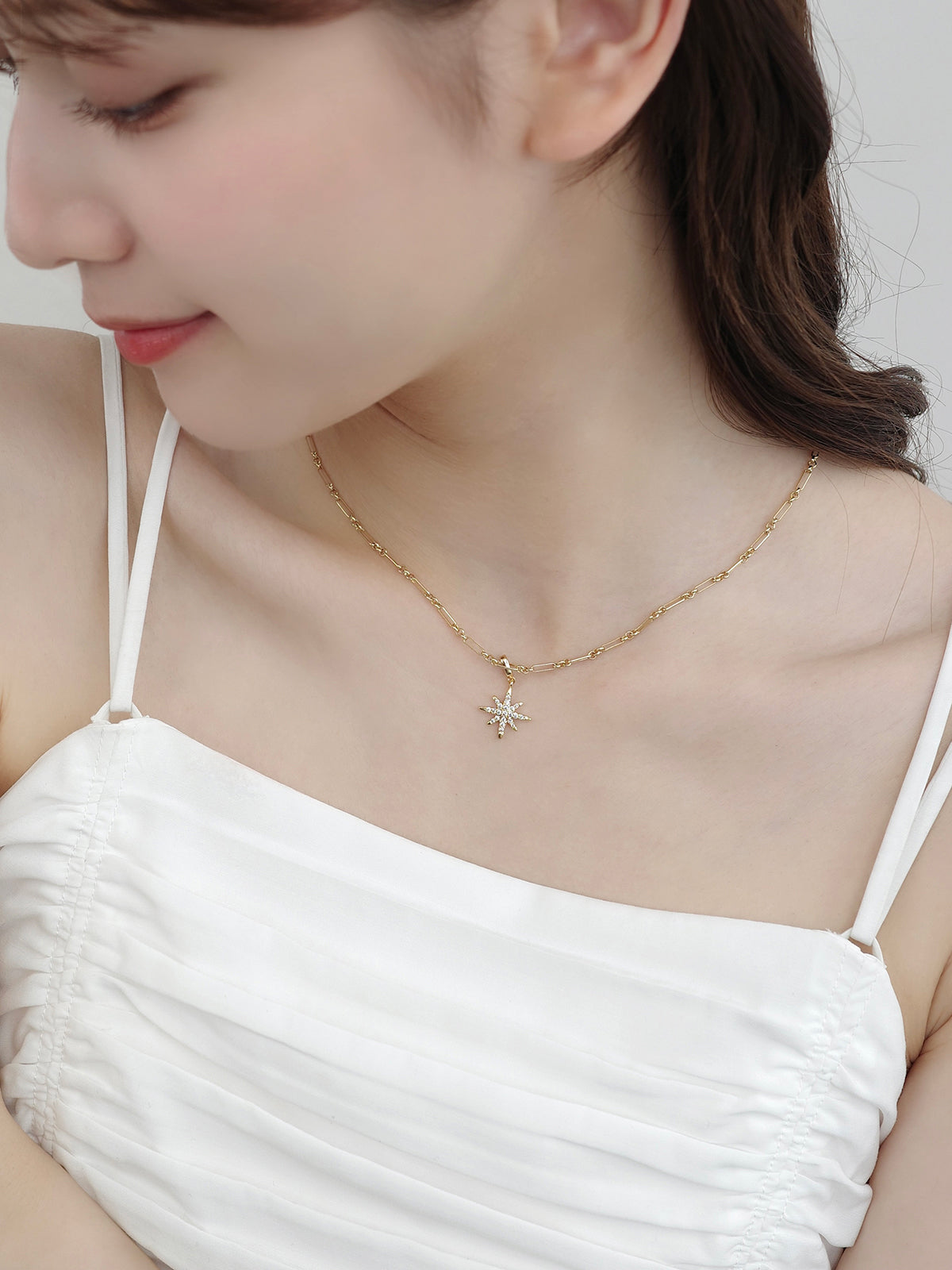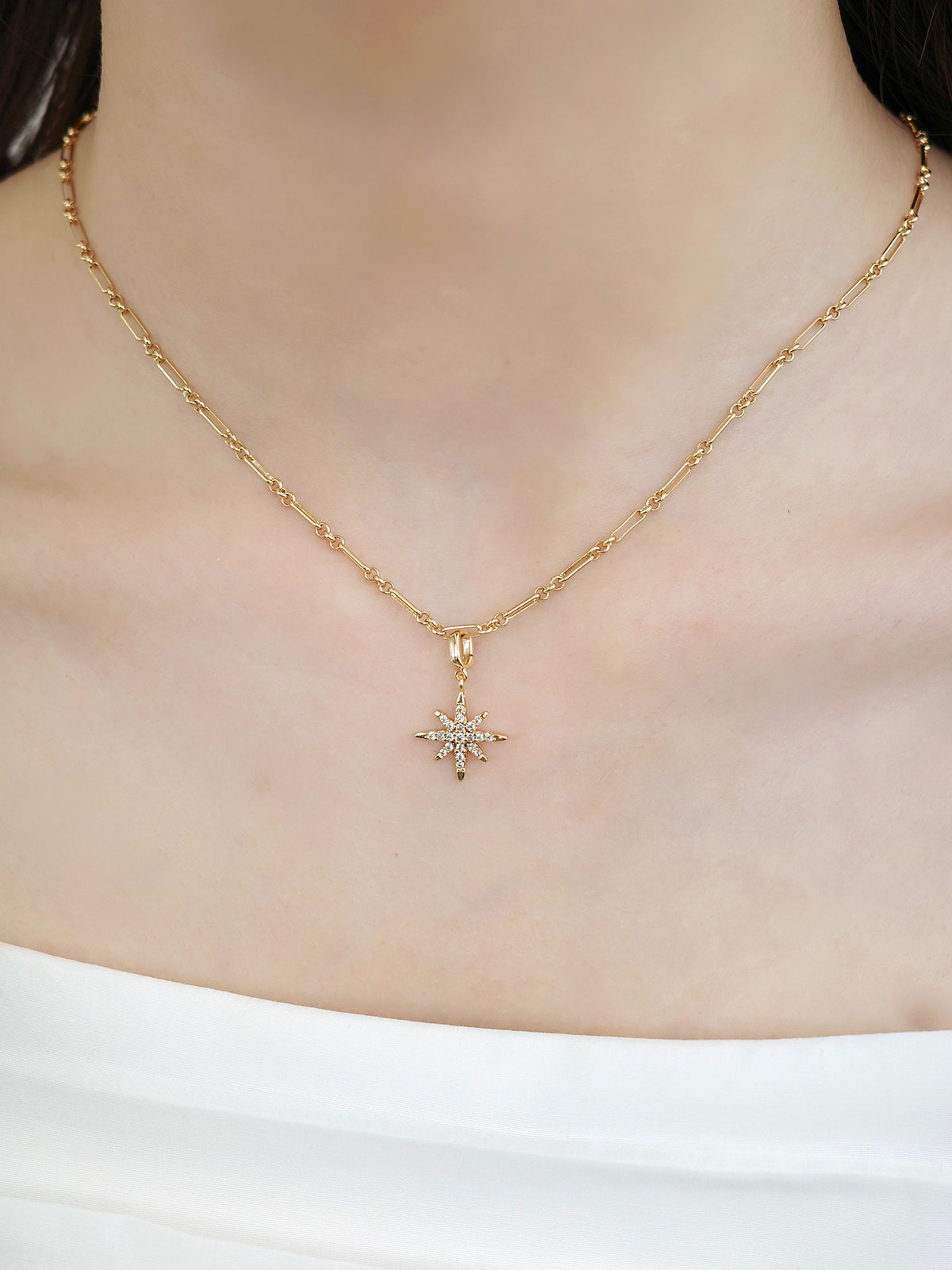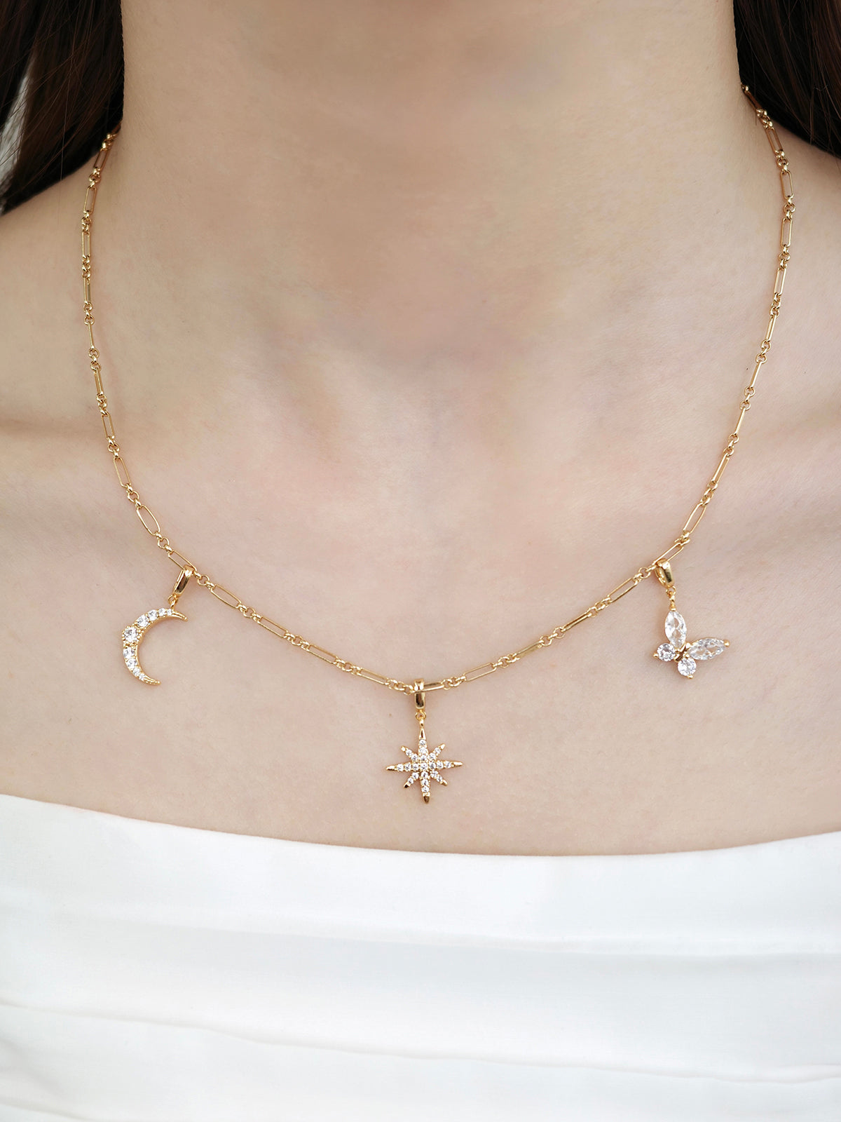 繊細な形状にキュービックジルコニアをあしらい、輝きと華やかさを引き立てるチャーム。