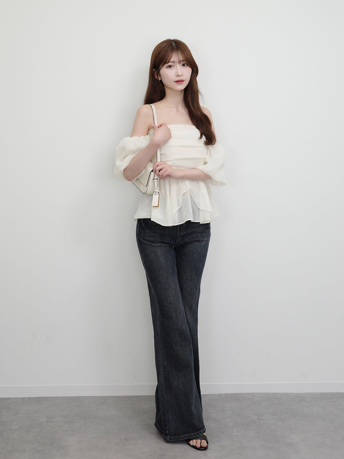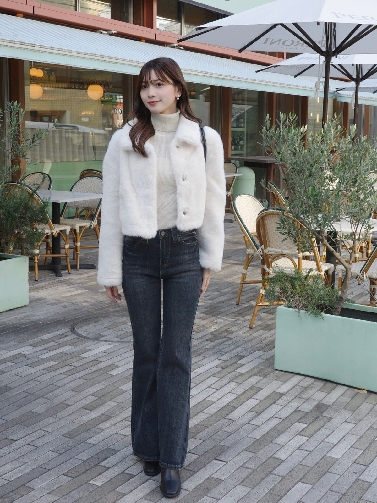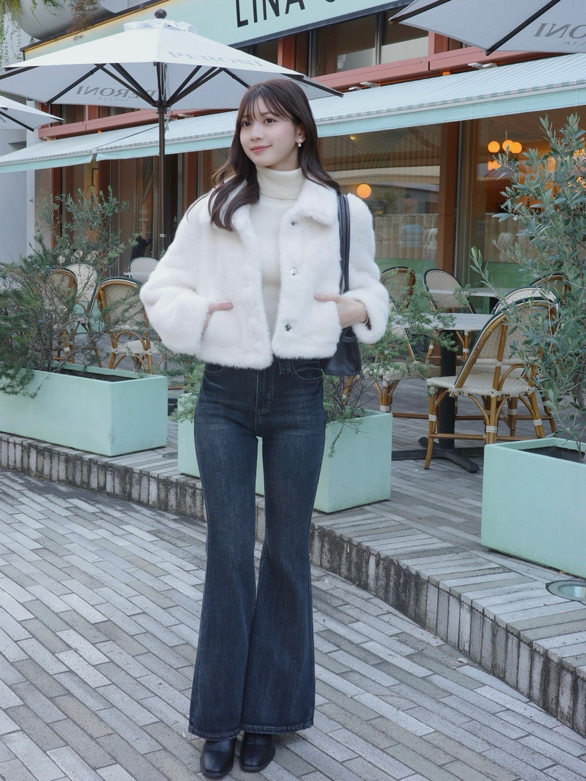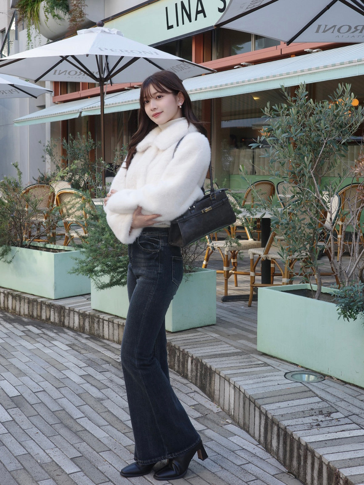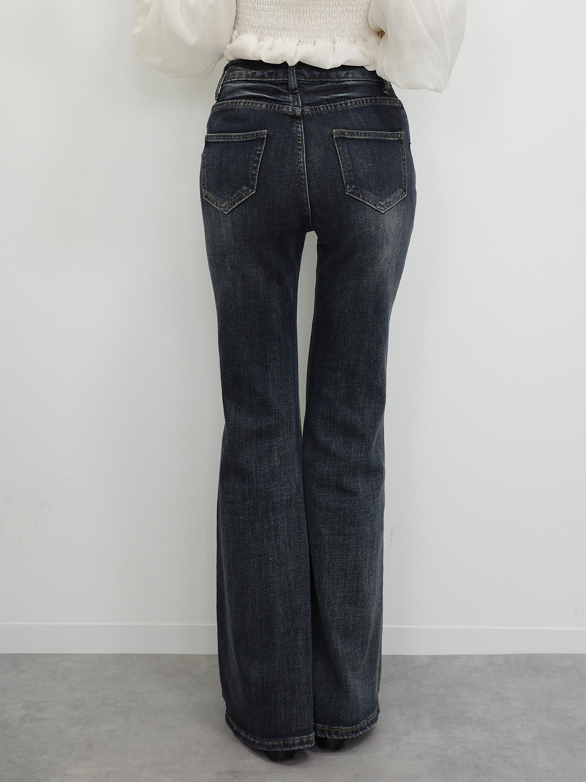ベーシックで使いやすい、きれいめフレアデニムパンツ。