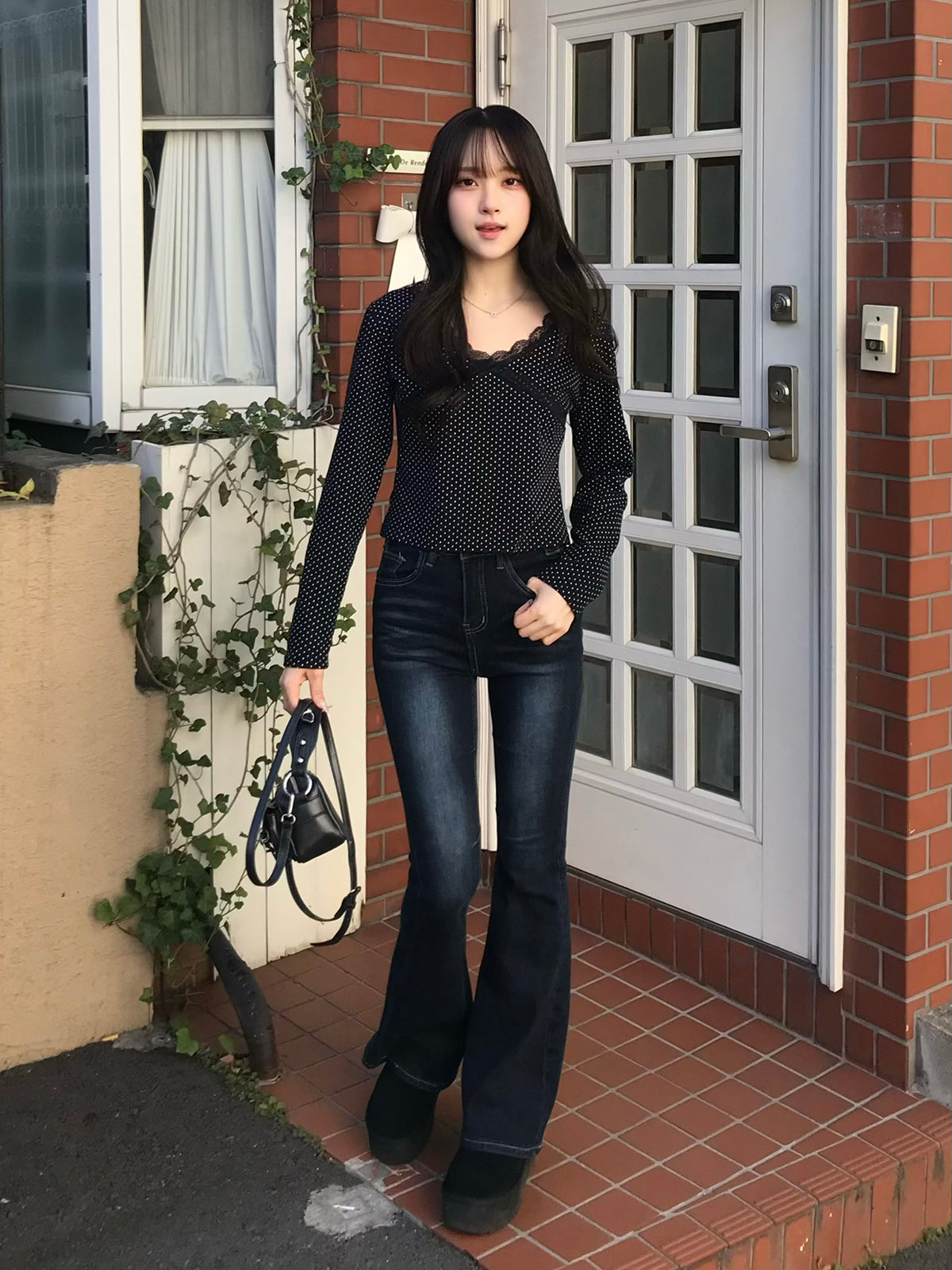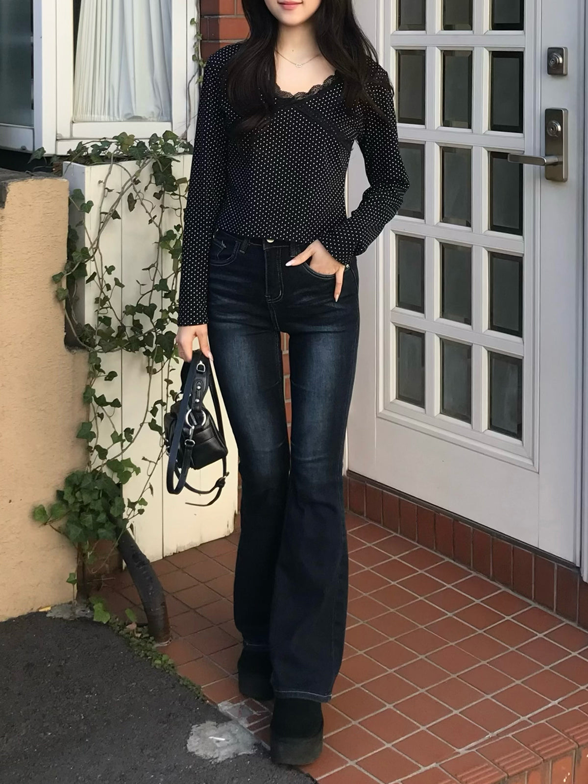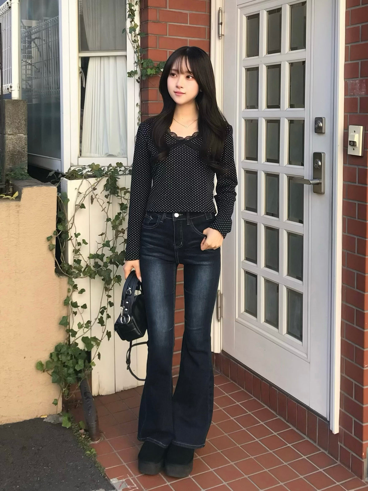 自然に広がるフレアシルエットが、すっきりとした脚長効果を演出。