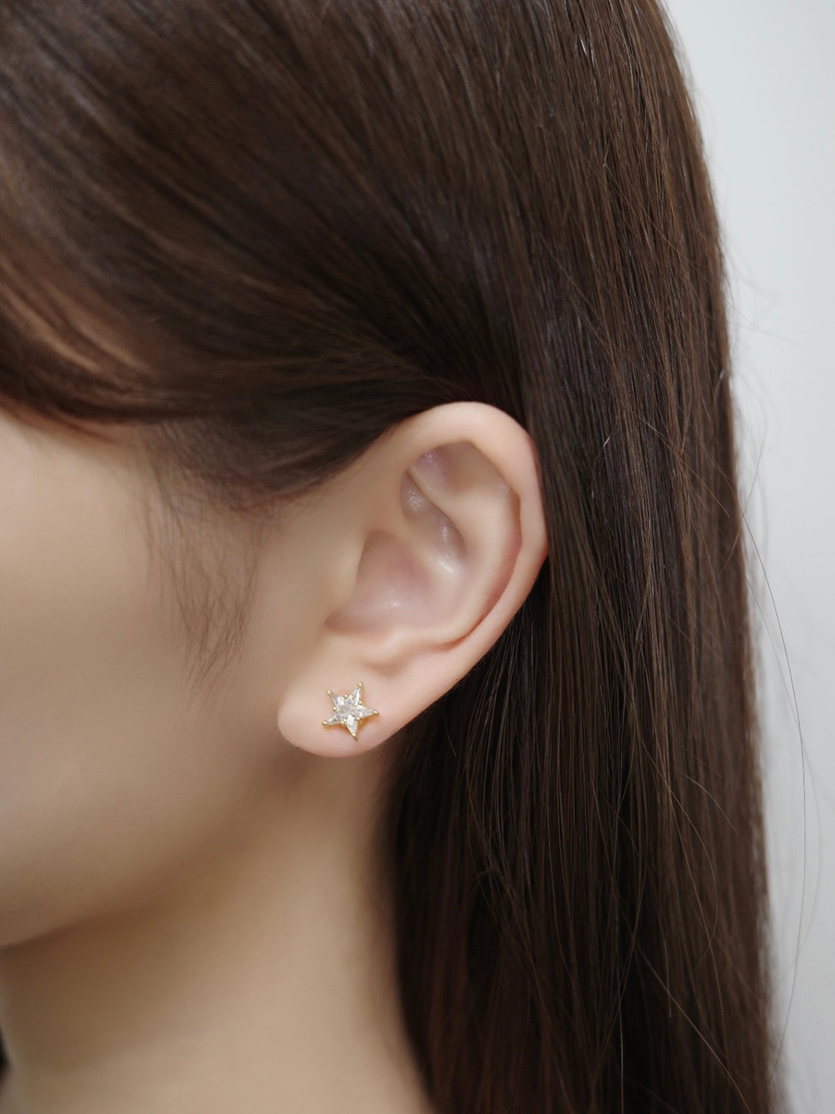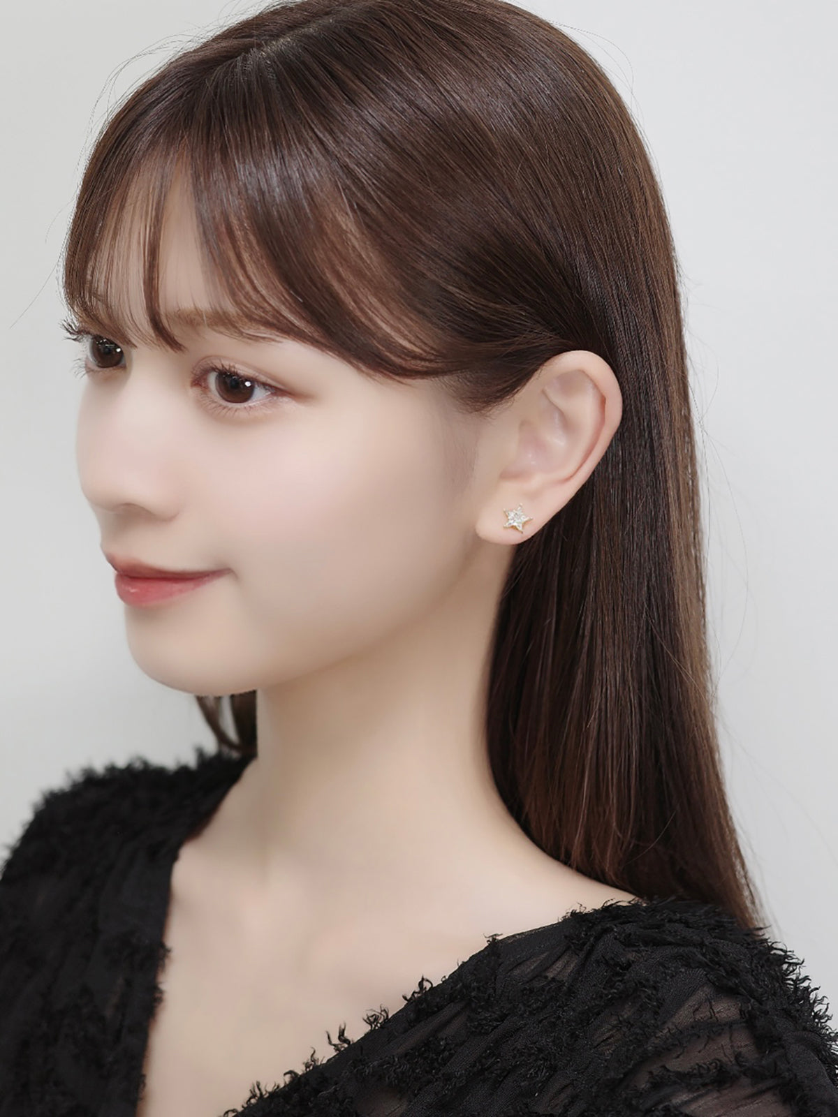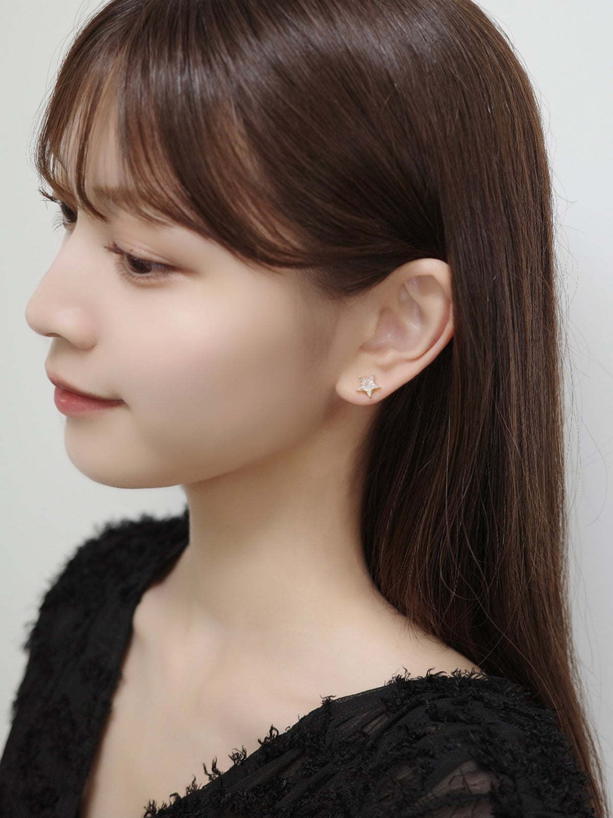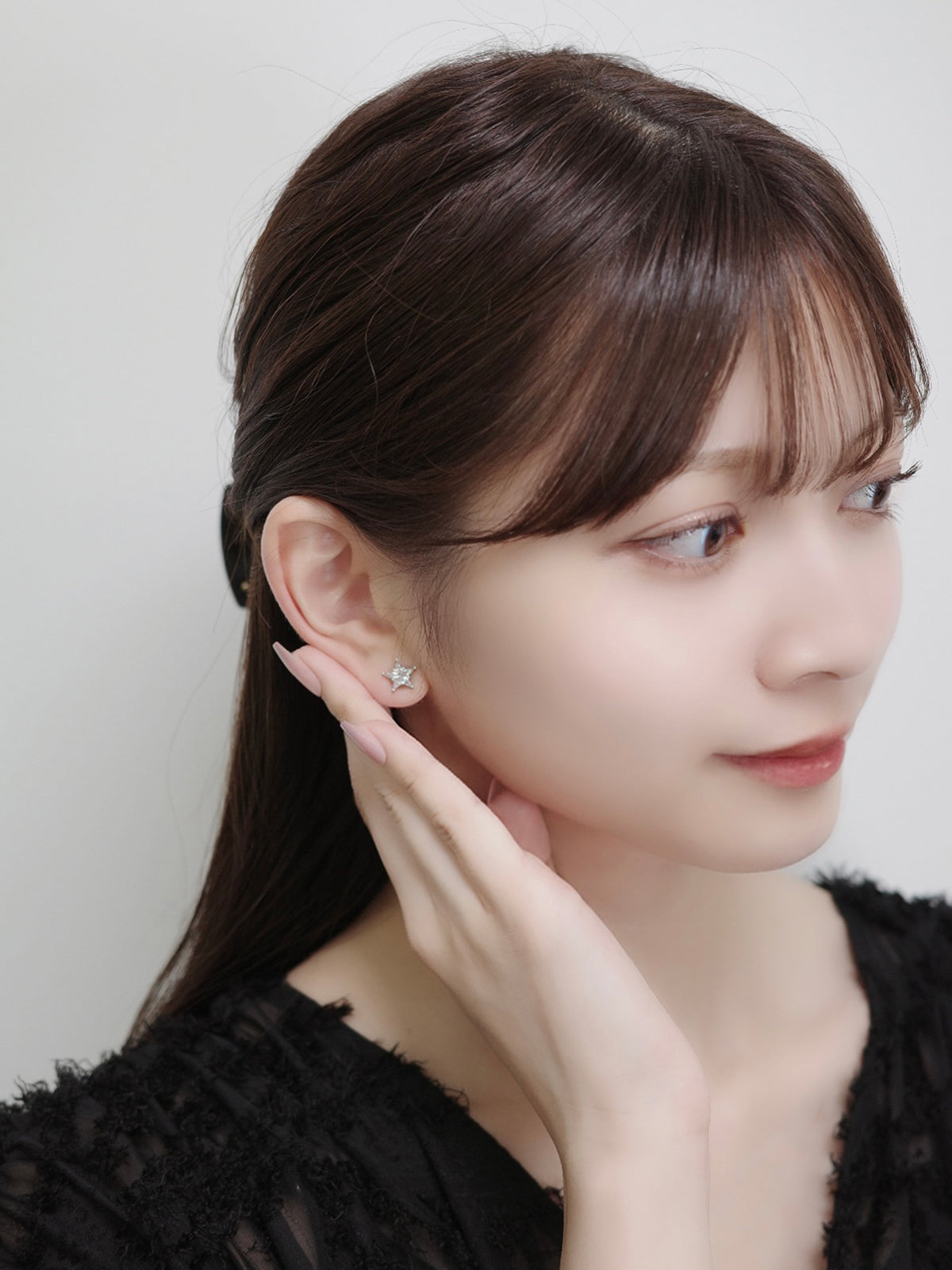 キュービックジルコニアのスターモチーフが耳元で輝くマグネットピアス。