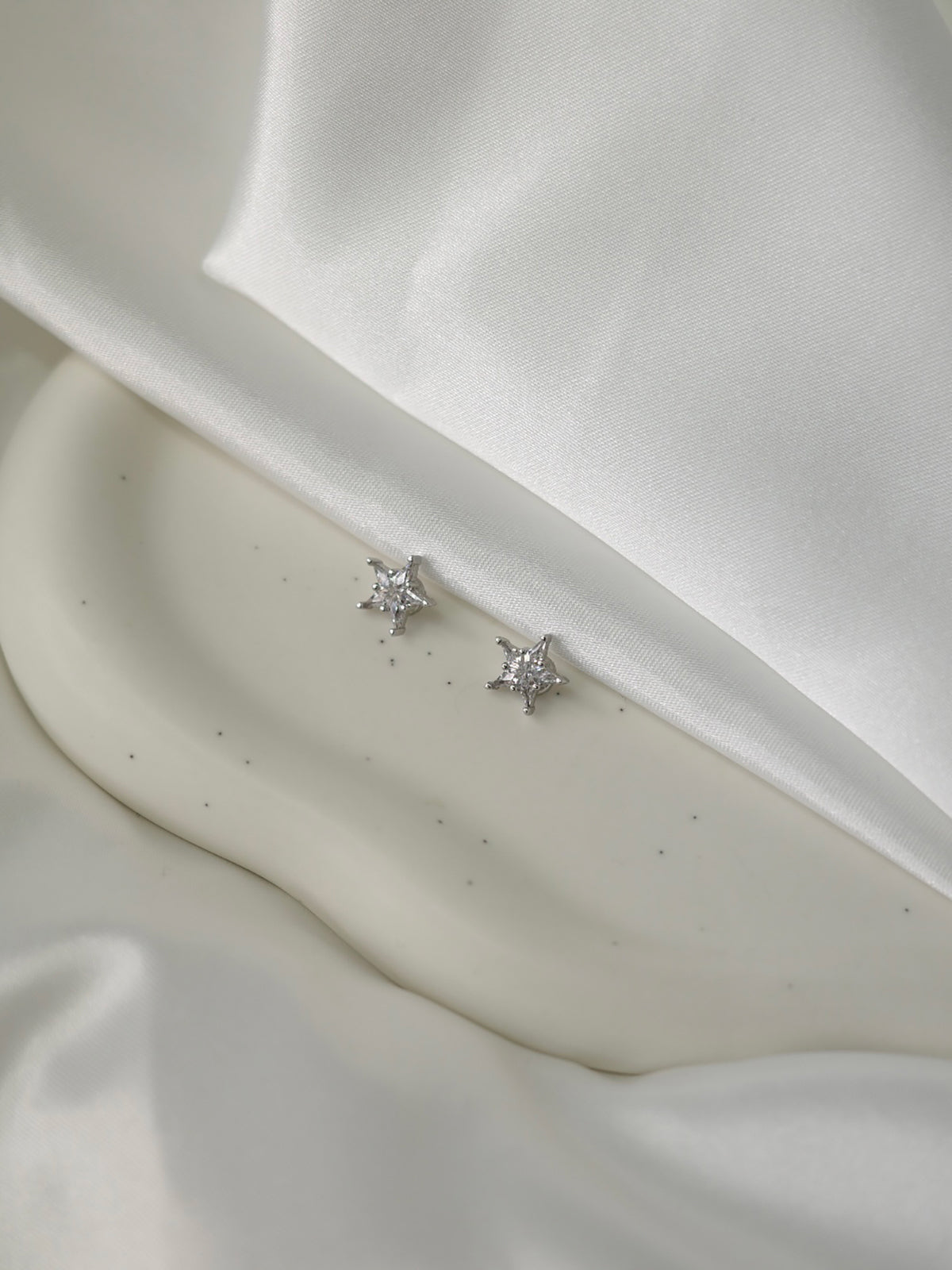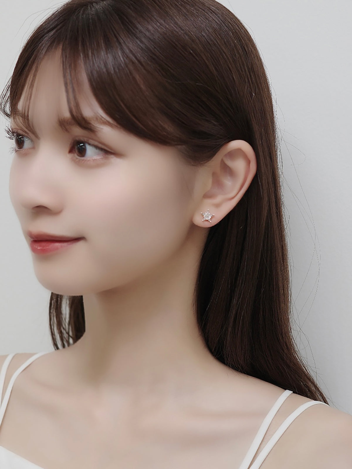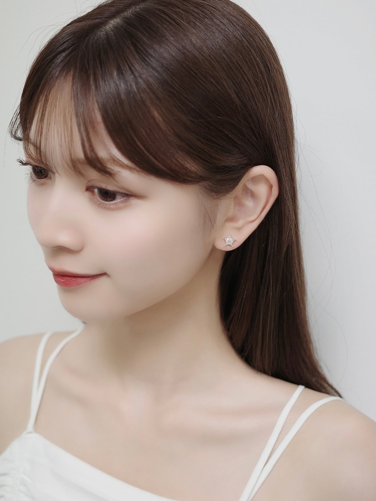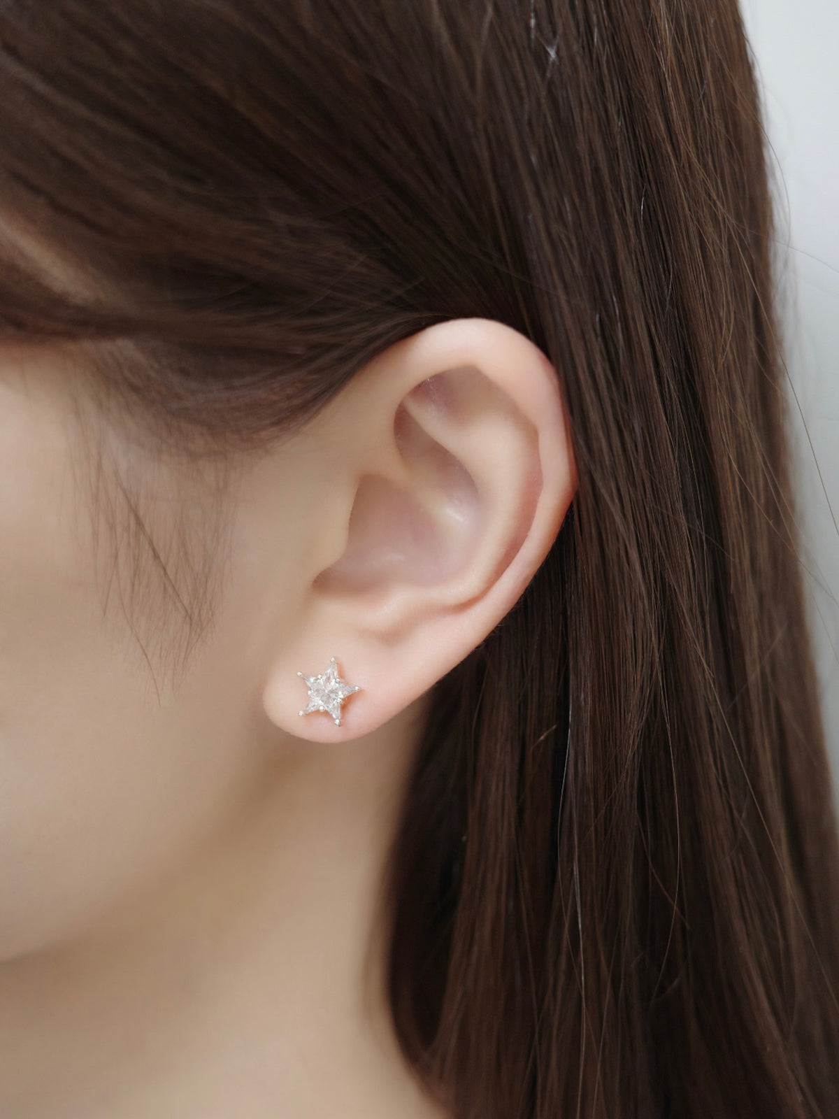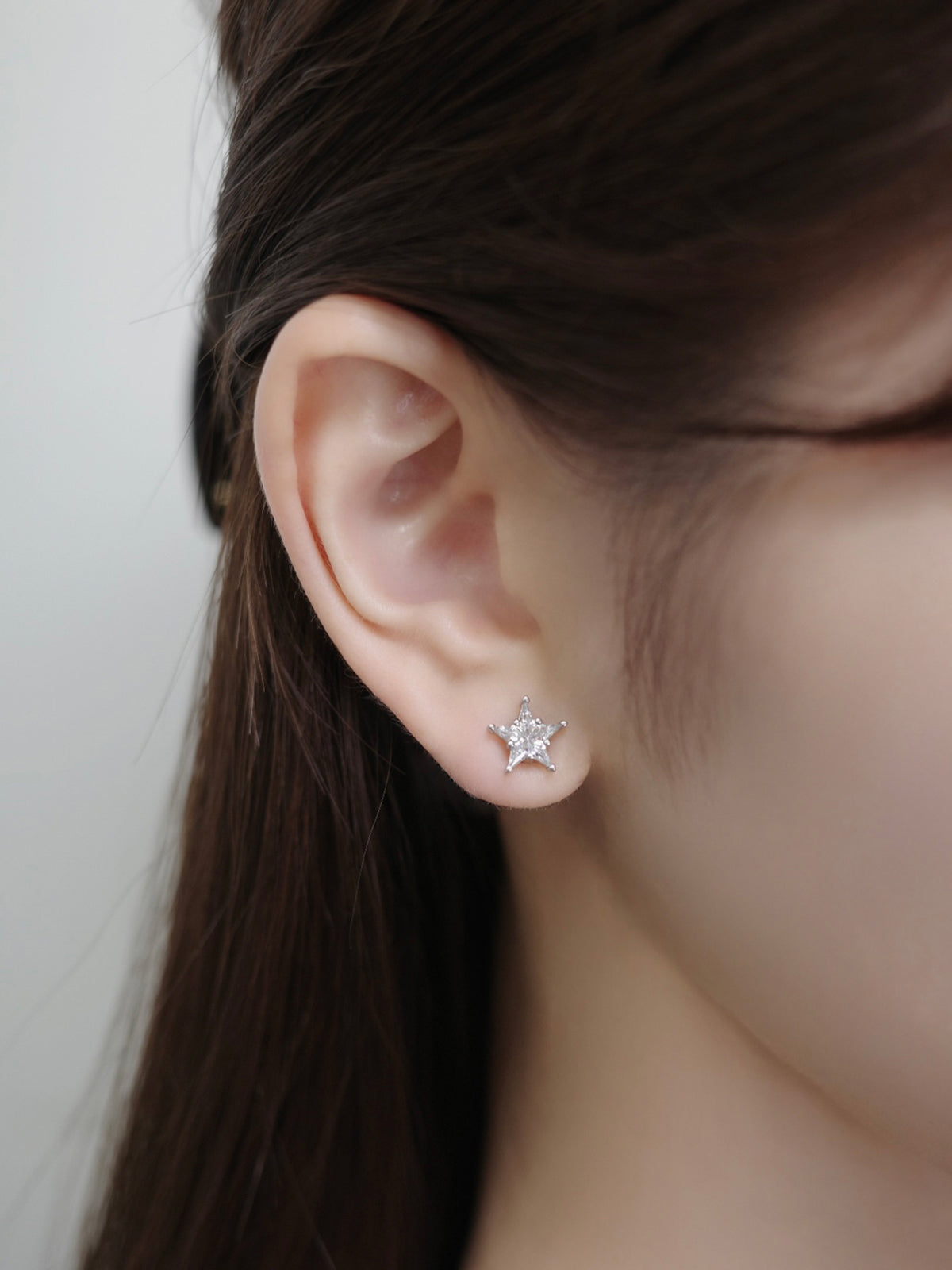 キュービックジルコニアのスターモチーフが耳元で輝くマグネットピアス。