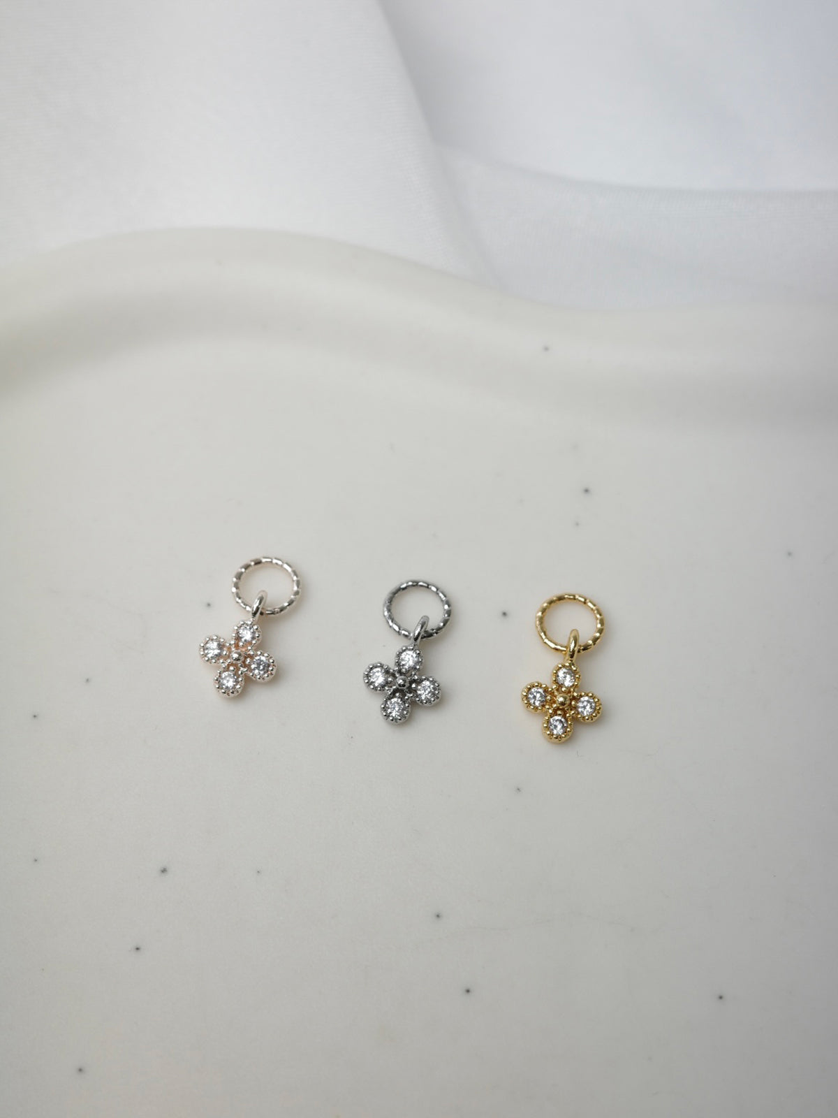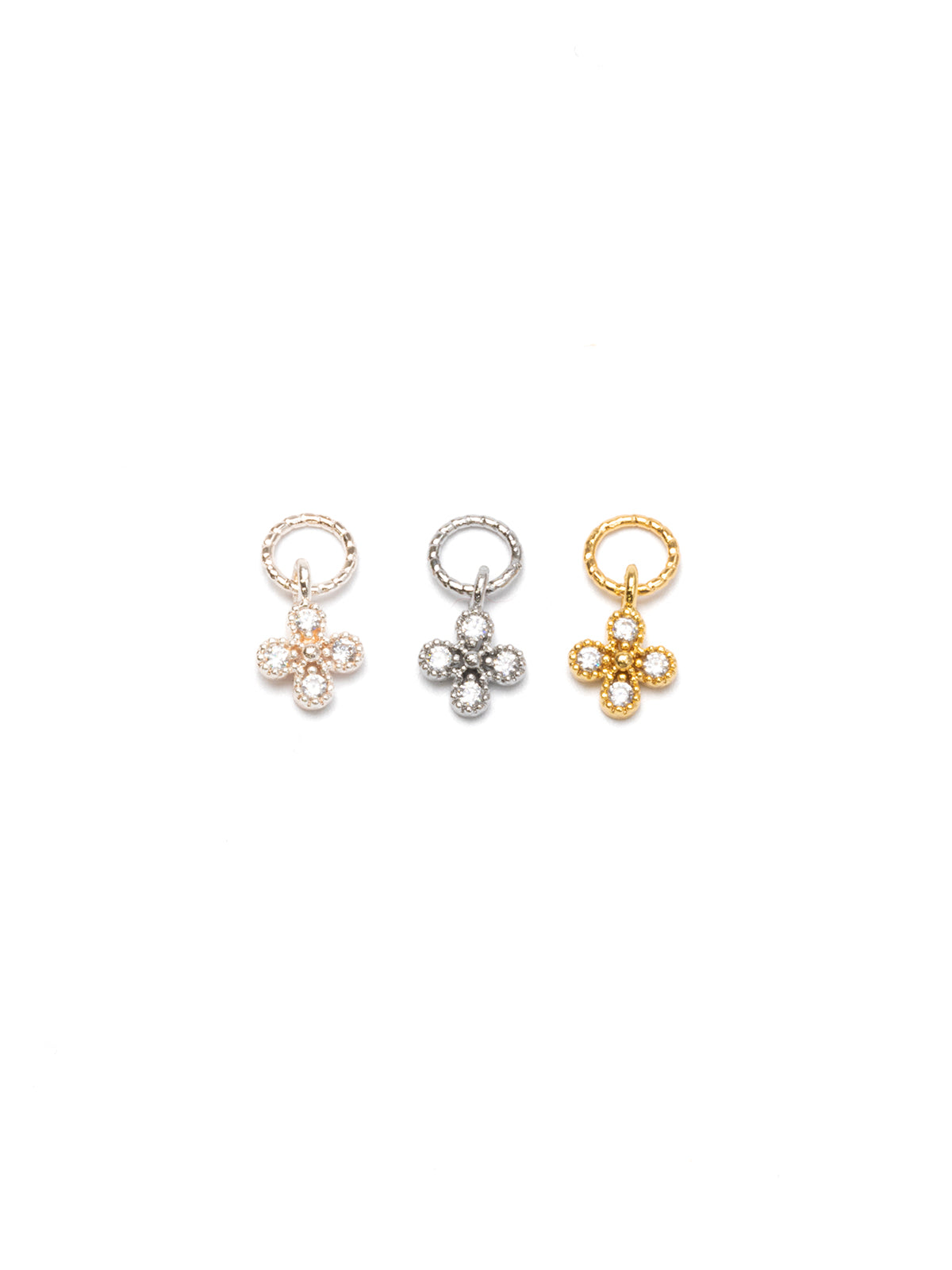 小ぶりな花のモチーフが、可憐で儚い雰囲気をまとったチャーム。