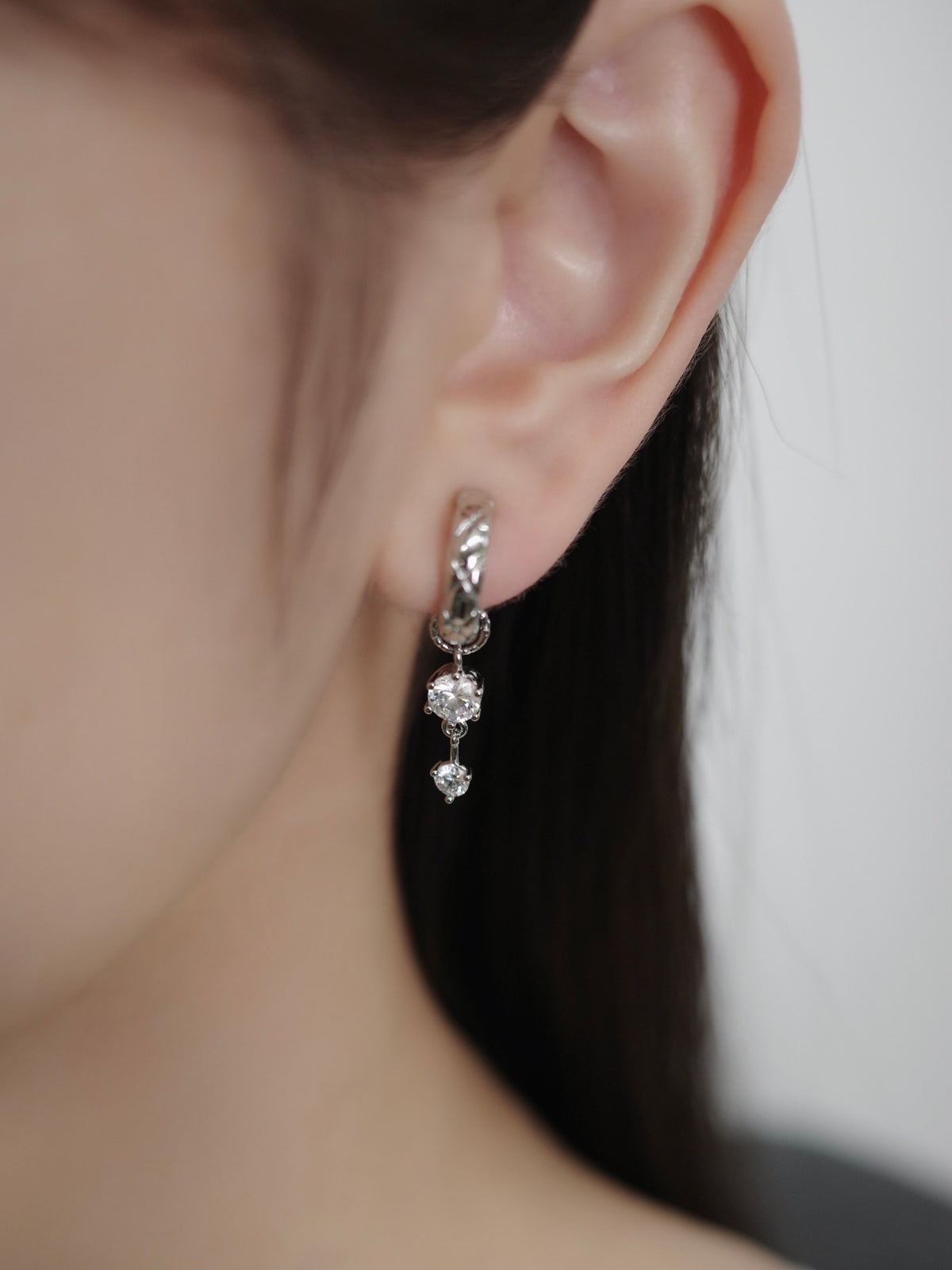 チャームが揺れるたび、ジルコニアのきらめきが耳元に表情を添えてくれるデザイン。