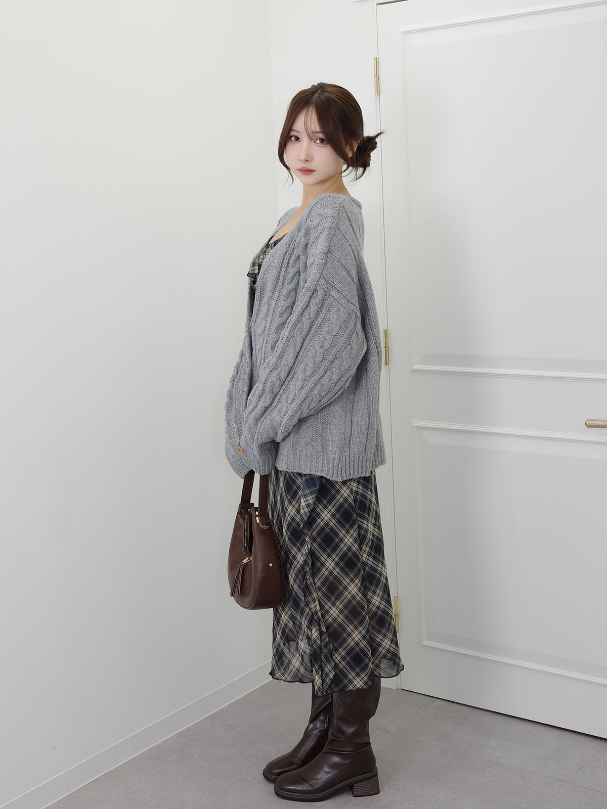 ケーブルニットルーズカーディガン