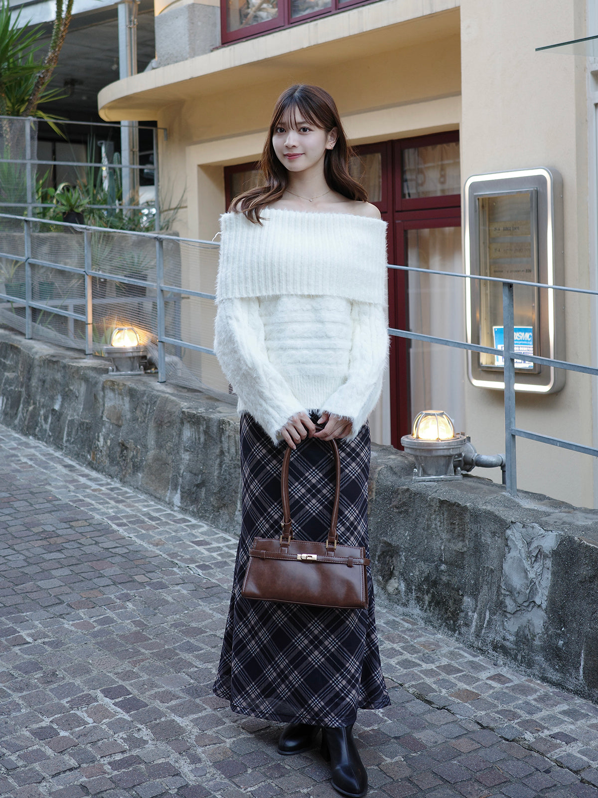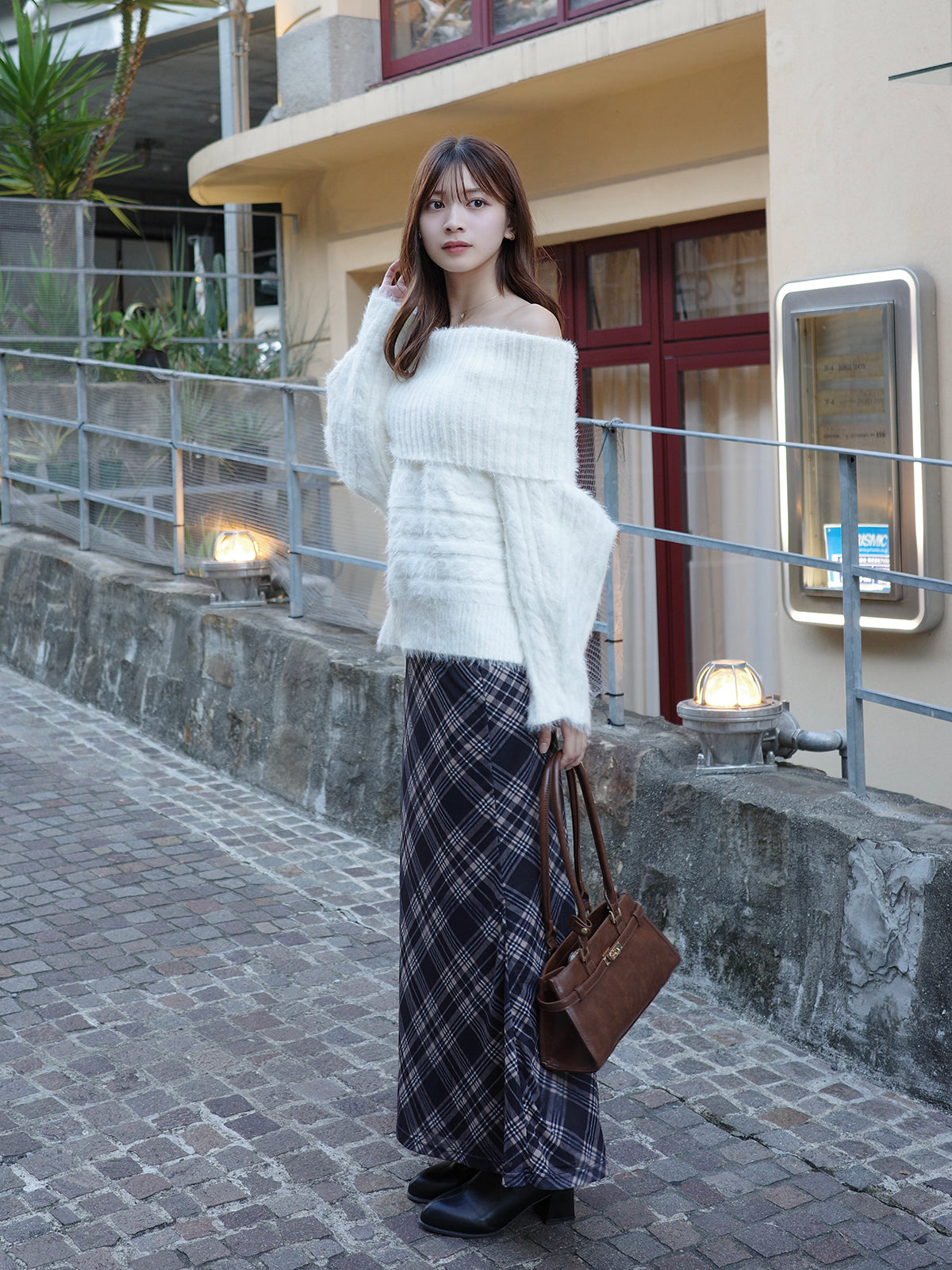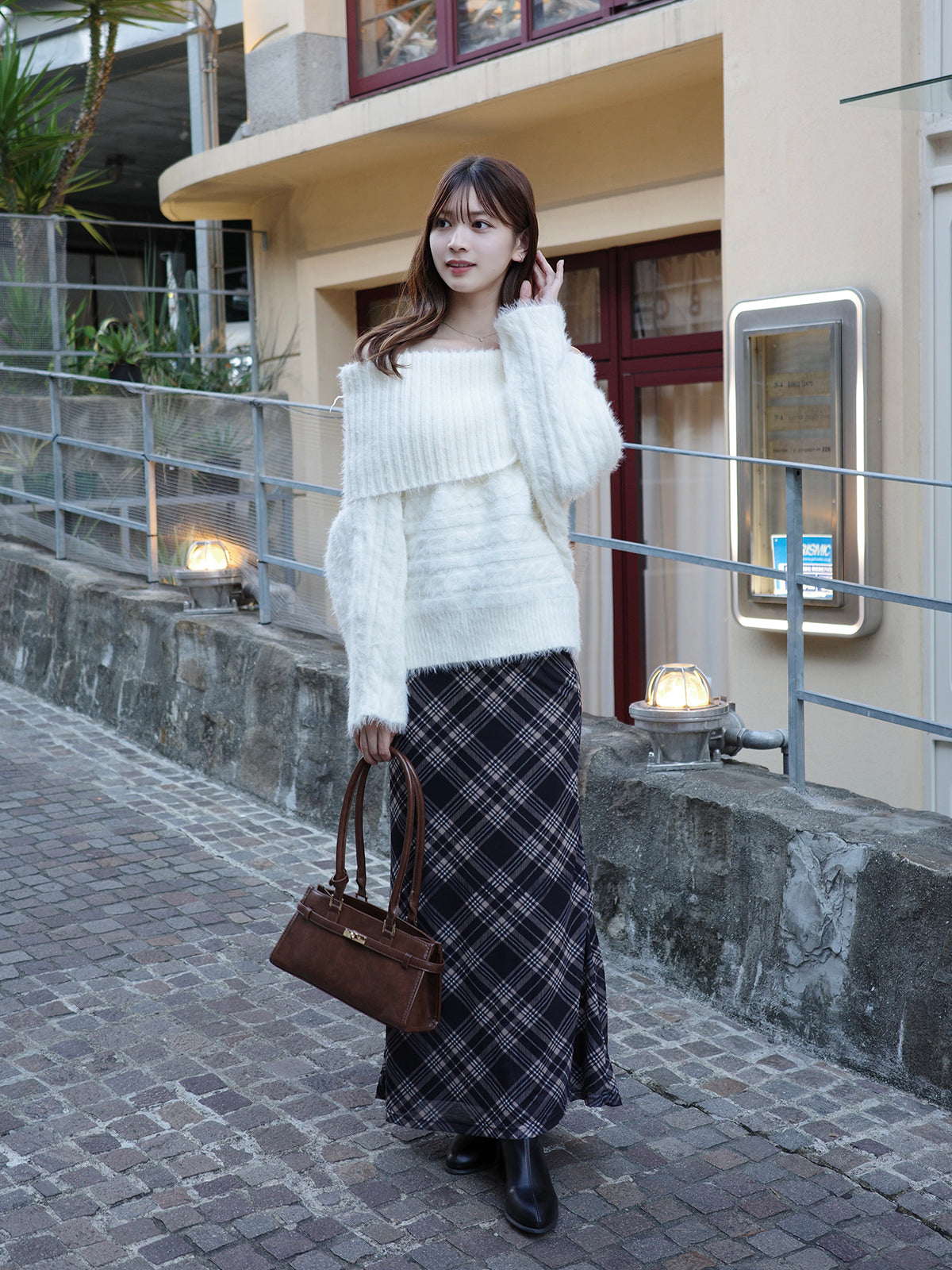 シーズンムードを高めるチェック柄のマーメイドスカート。