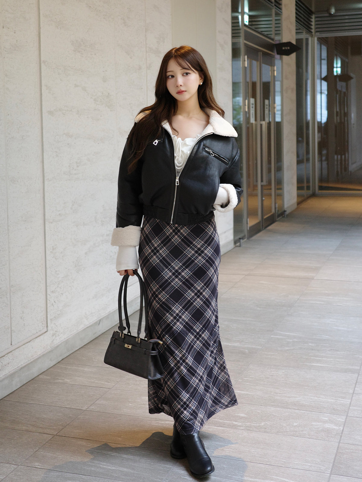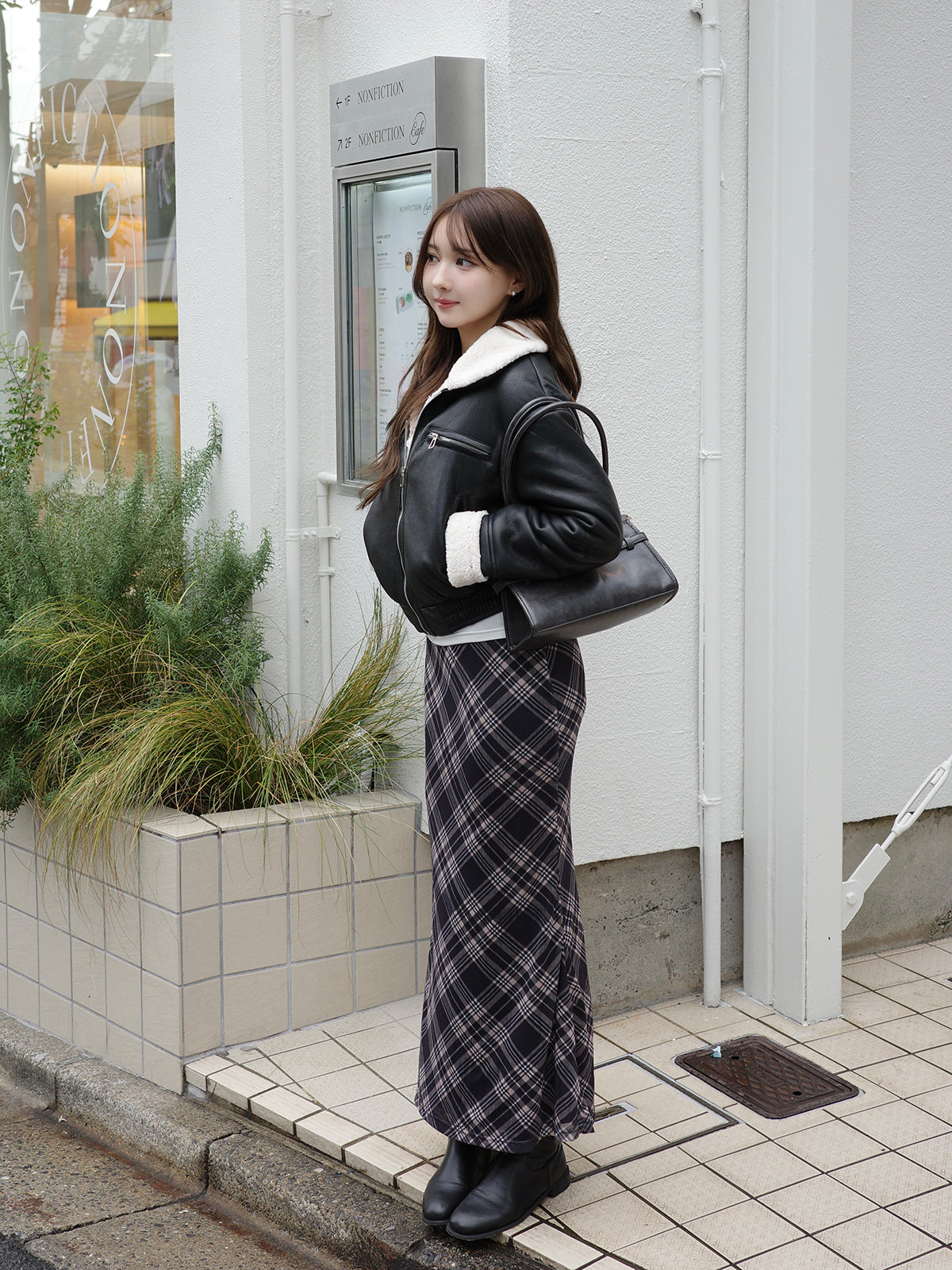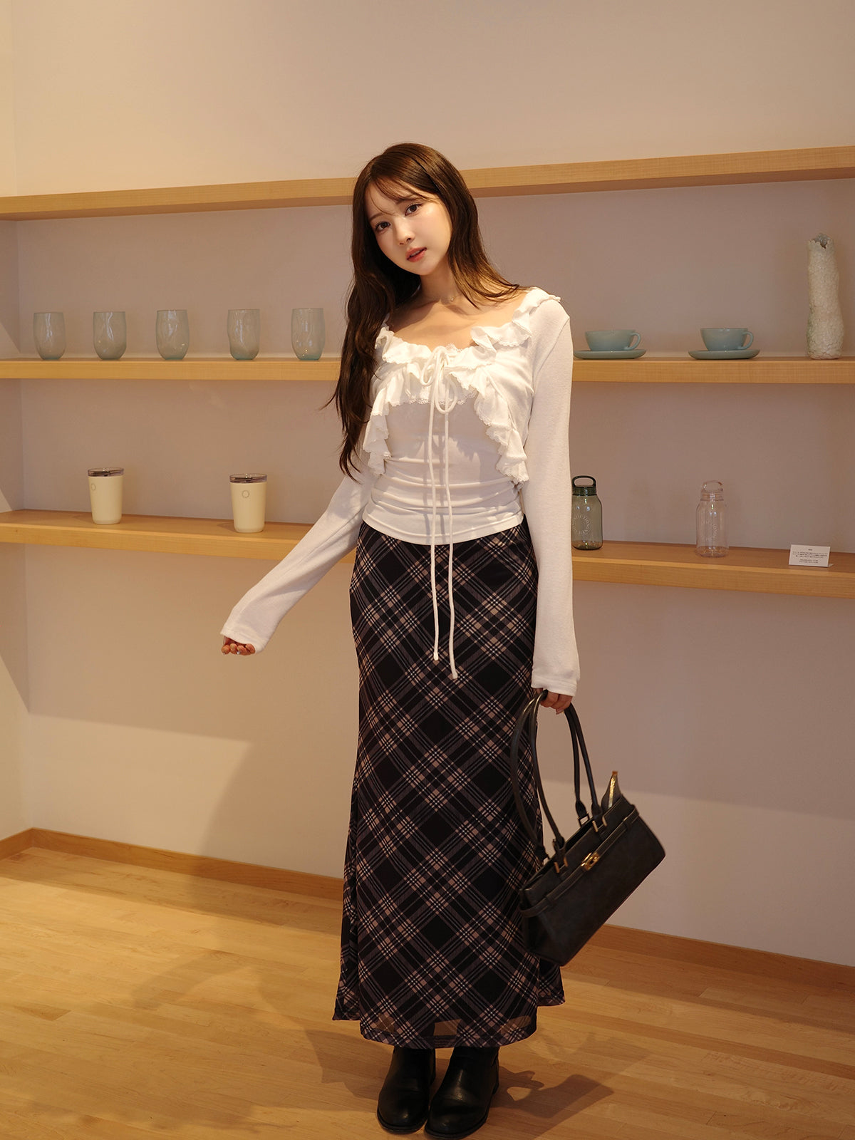 シーズンムードを高めるチェック柄のマーメイドスカート。