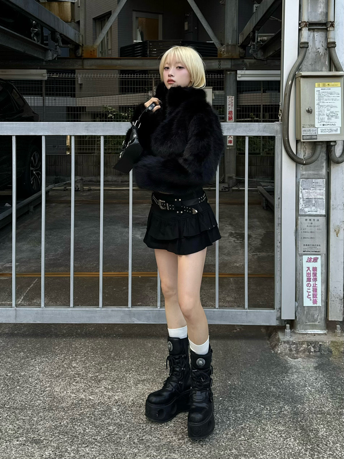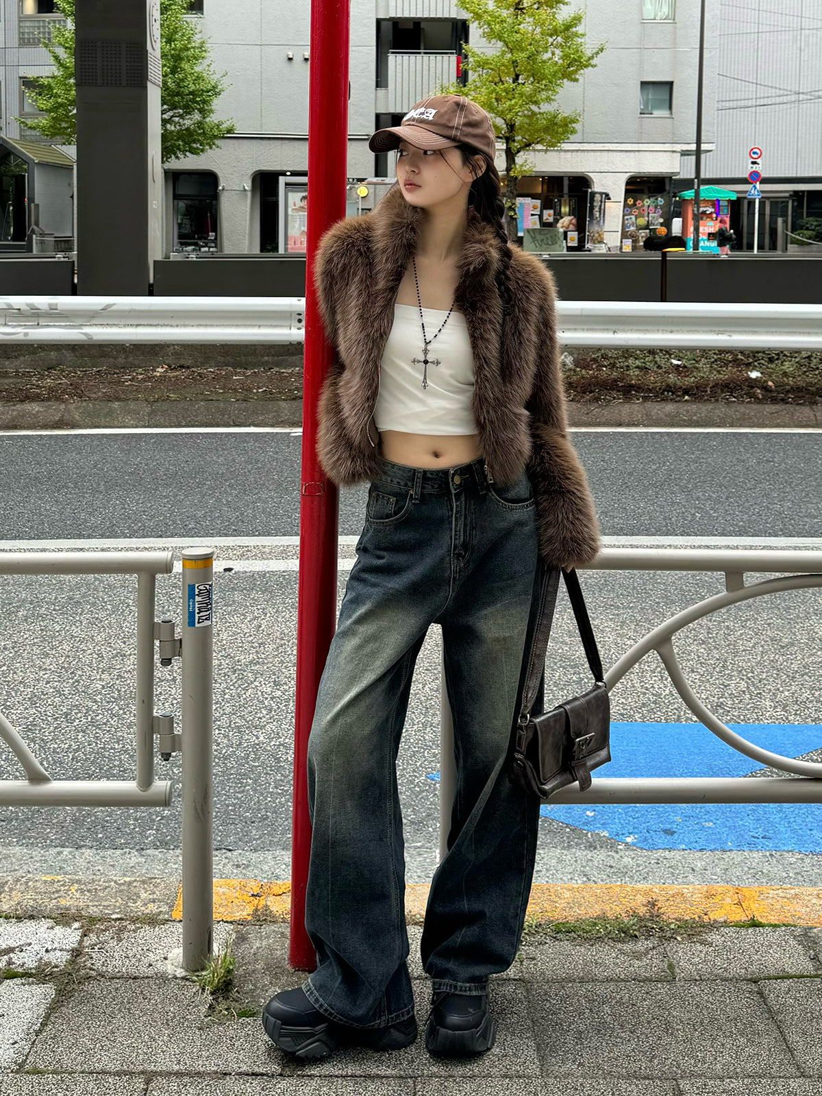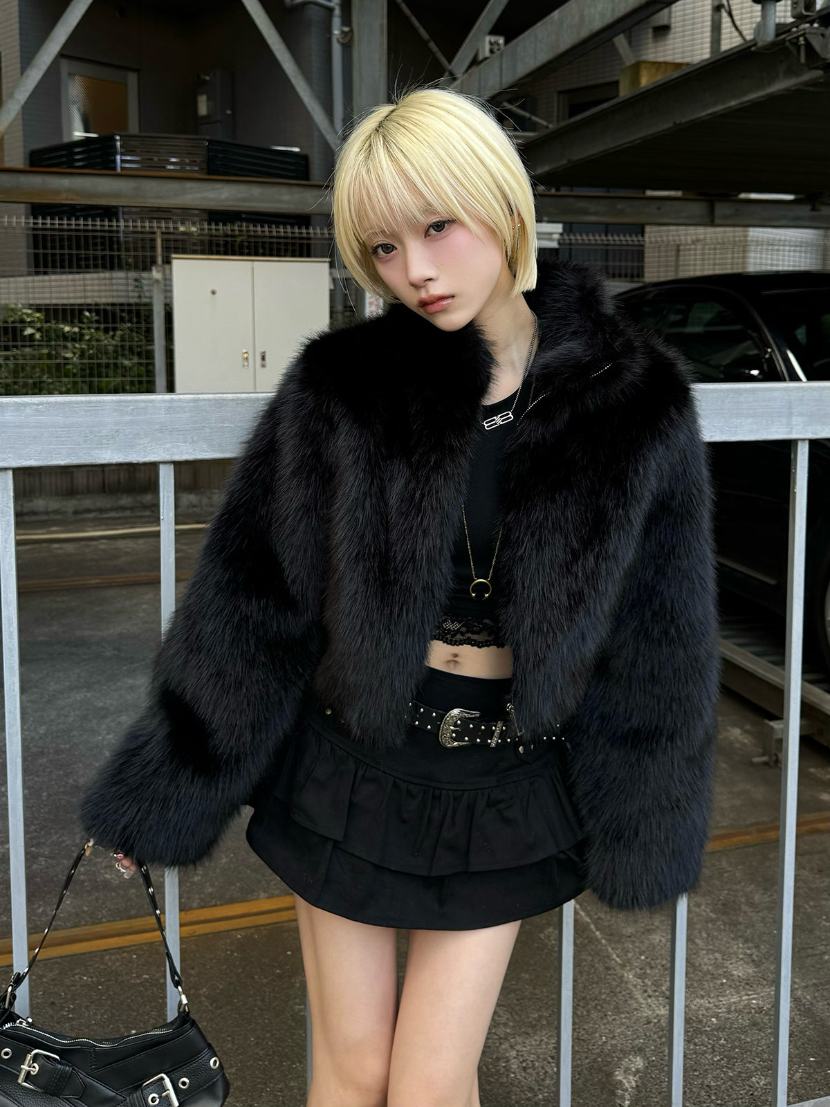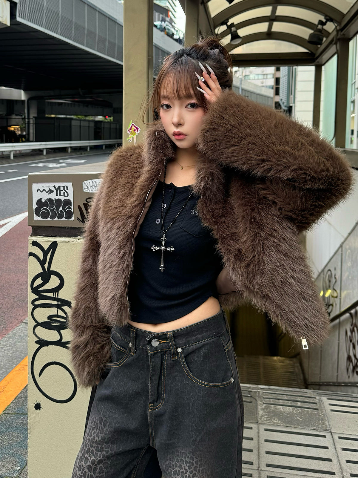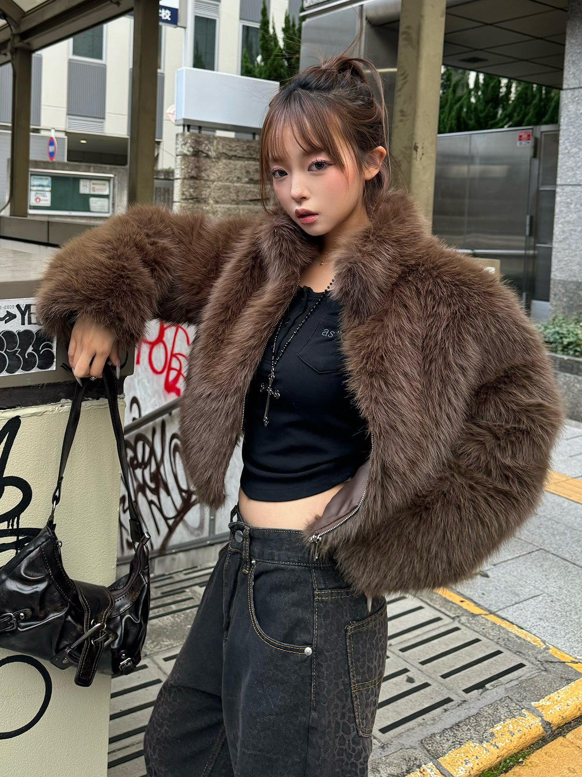 滑らかな毛足のファータッチ素材で仕立てた、ボリュームのあるショート丈ブルゾン。