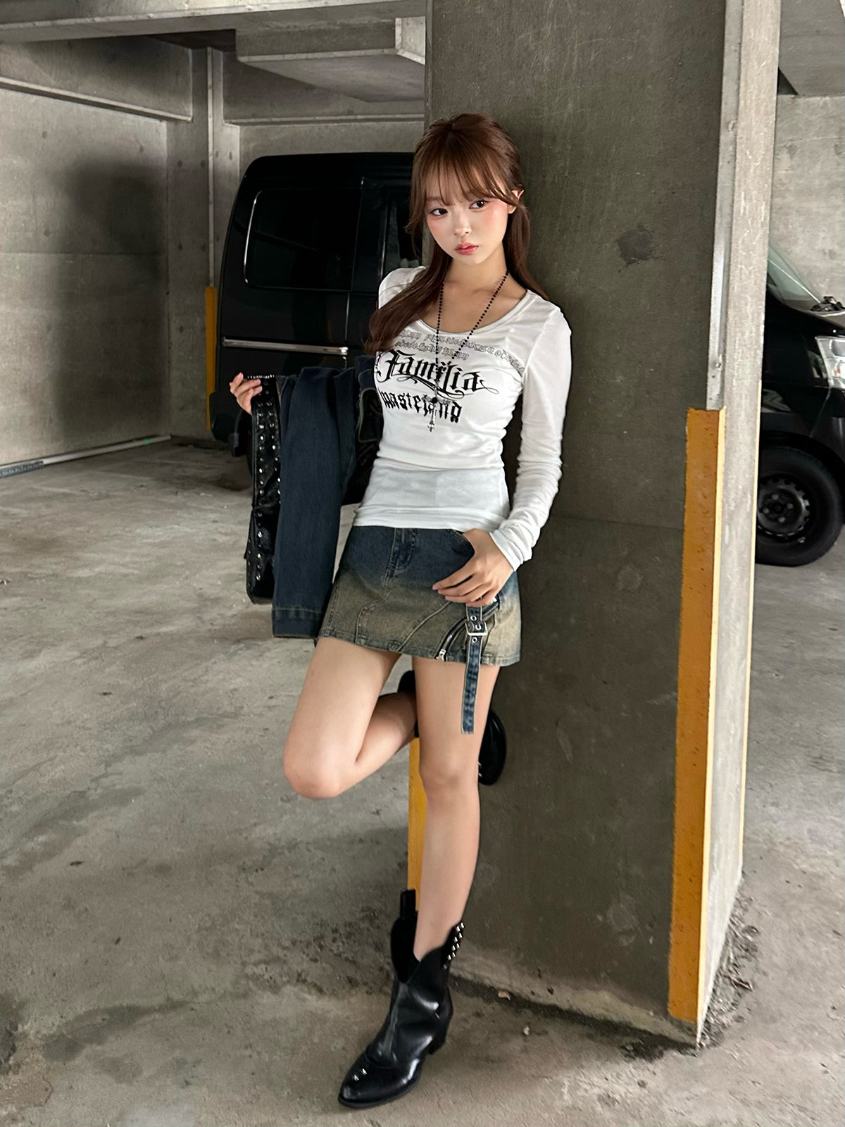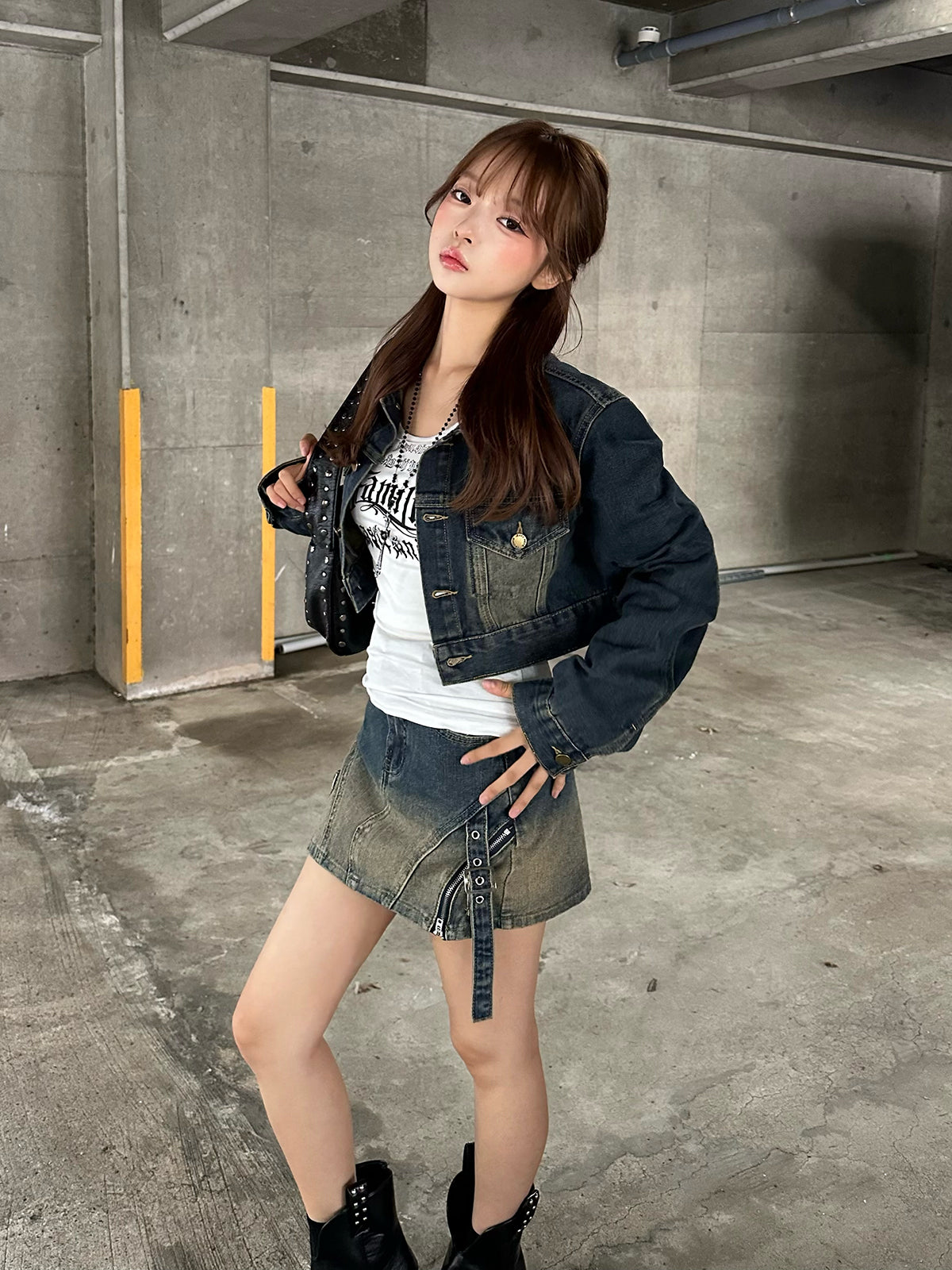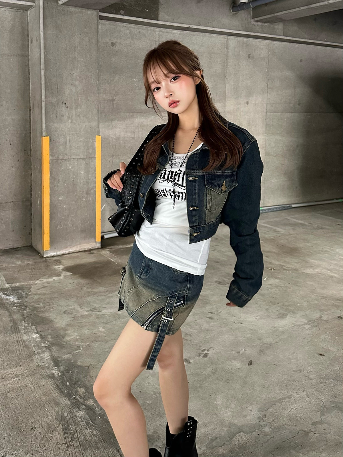 グラデーションウォッシュが目を引くデニムミニスカート。