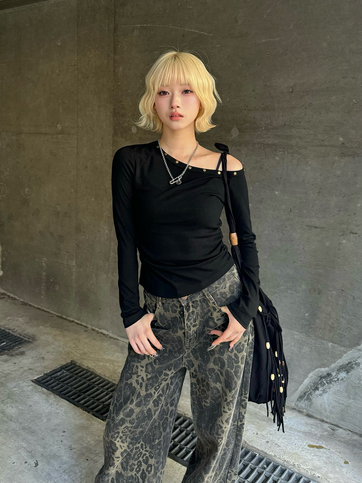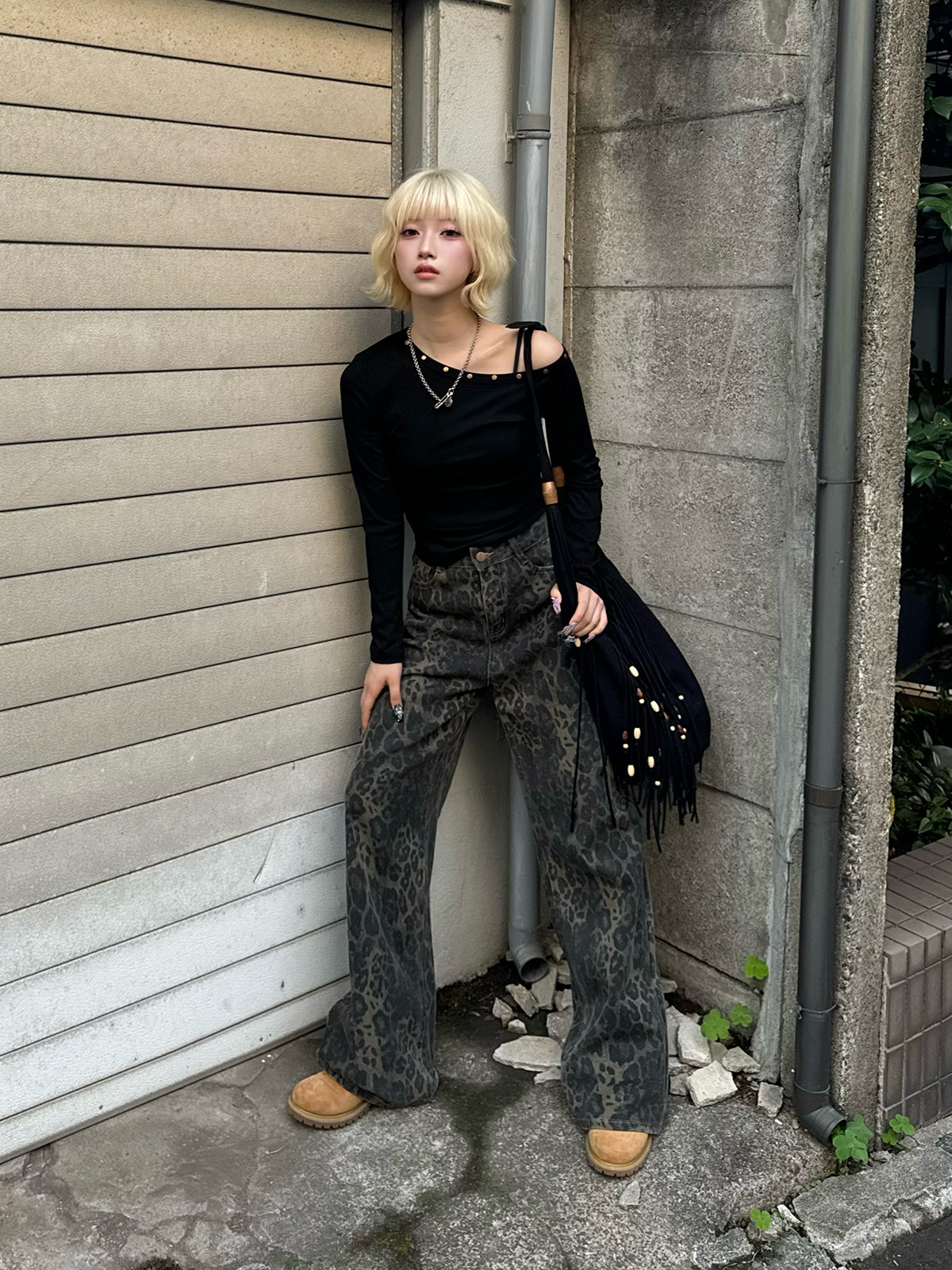 ・レオパードワイドデニムパンツ