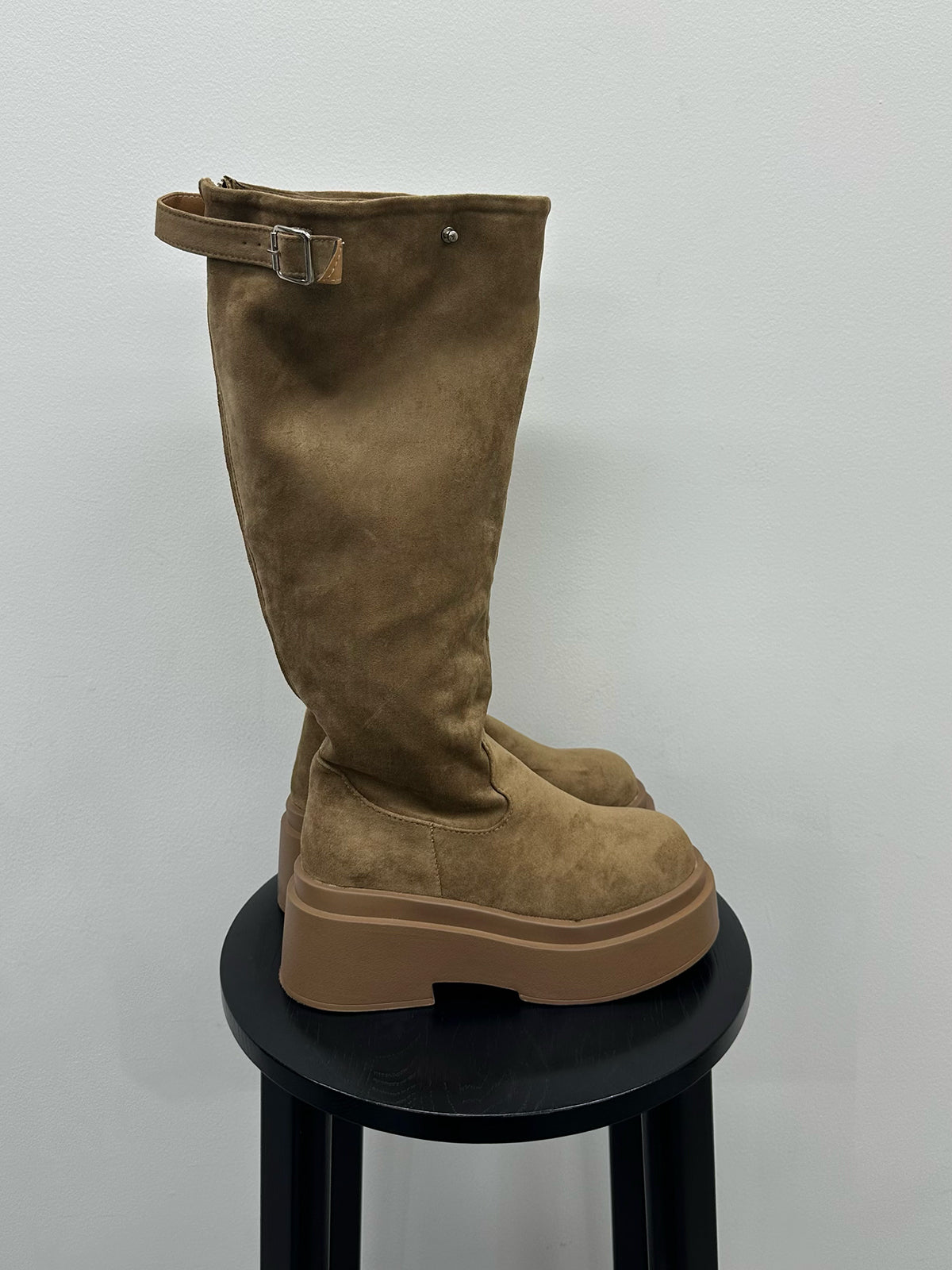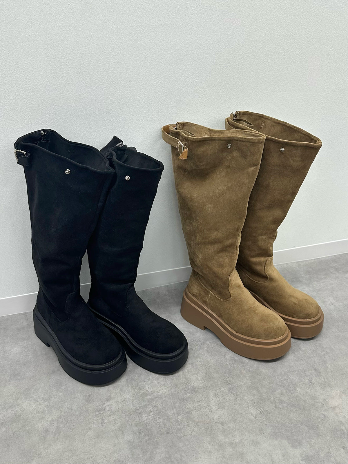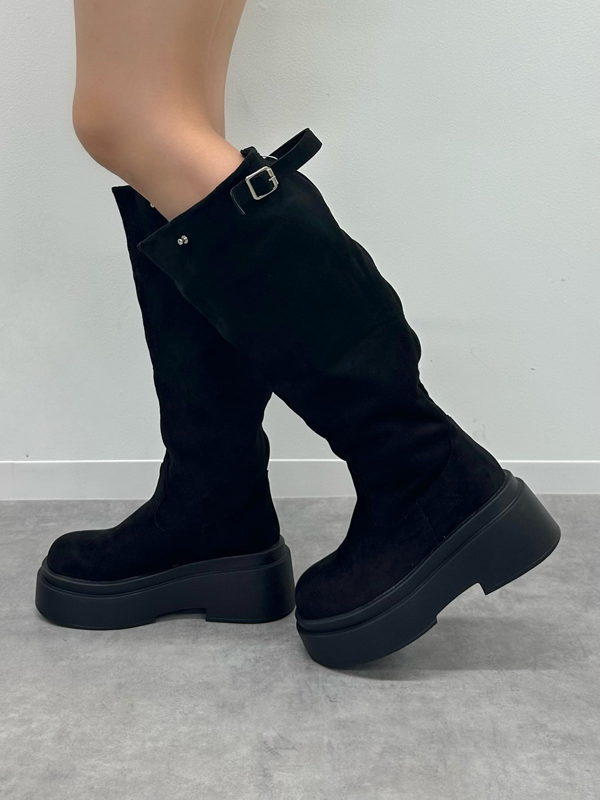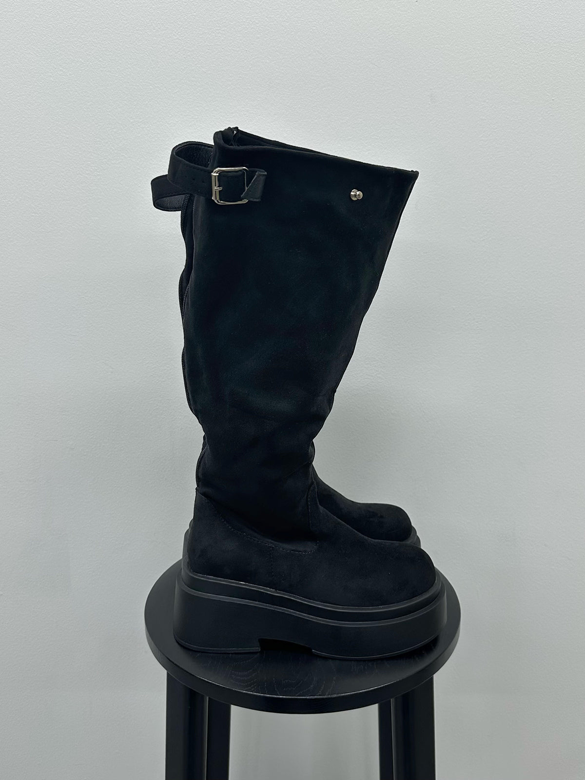 しなやかなスエードライク素材で仕立てたプラットフォームブーツ。