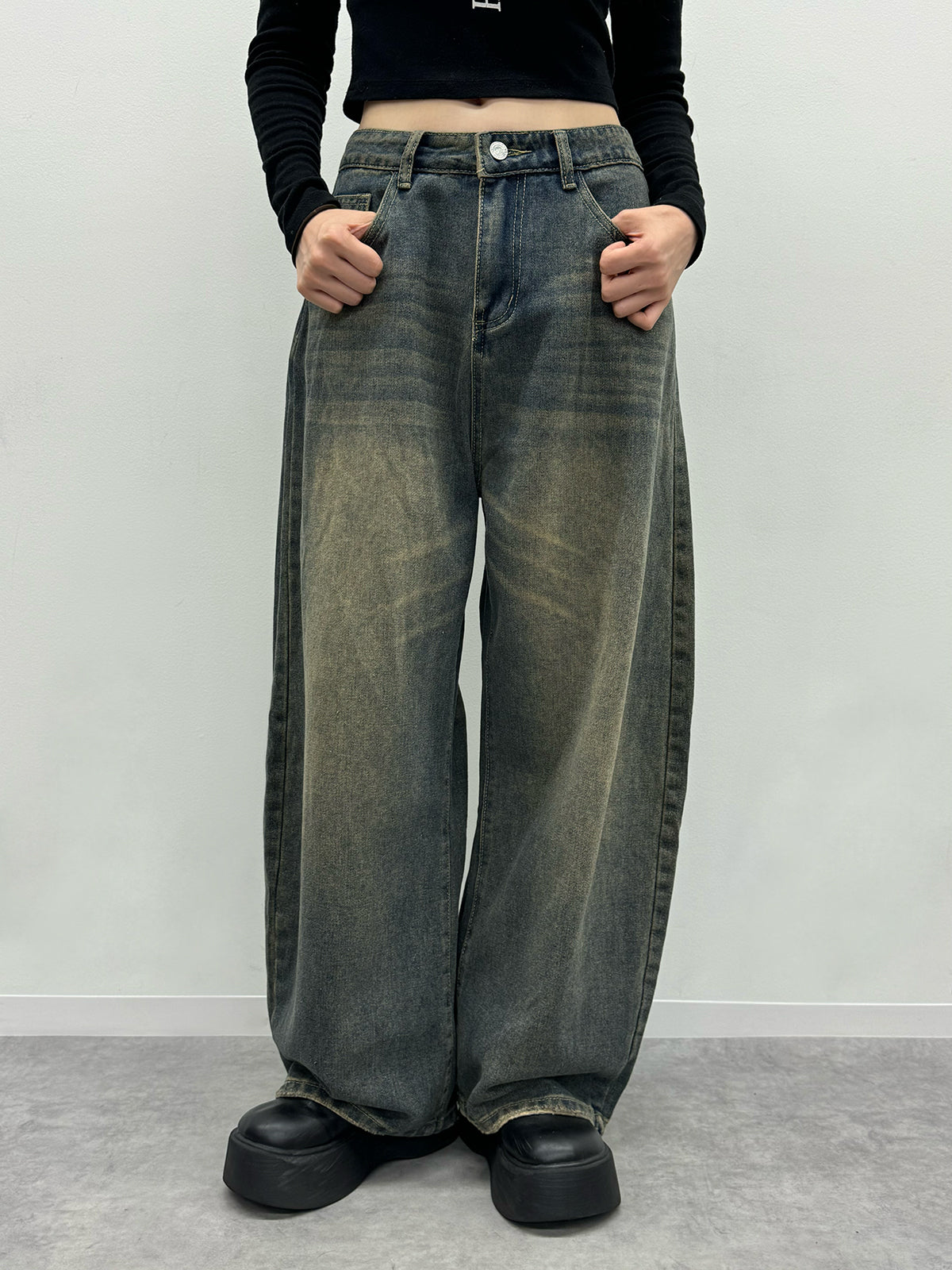 ヴィンテージブラウンウォッシュデニムパンツ