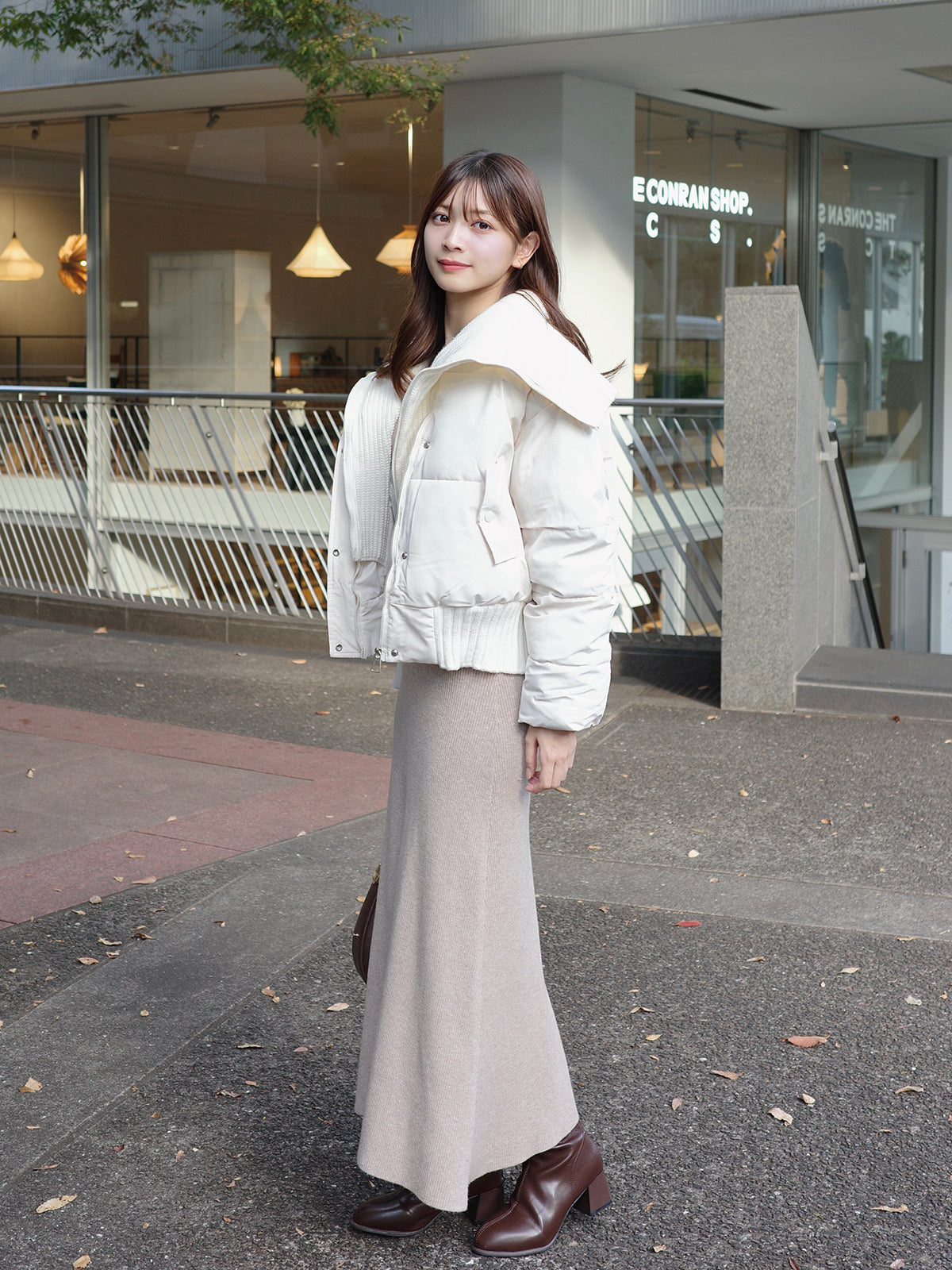 ドッキングされたリブニットがワンポイントのアウター。