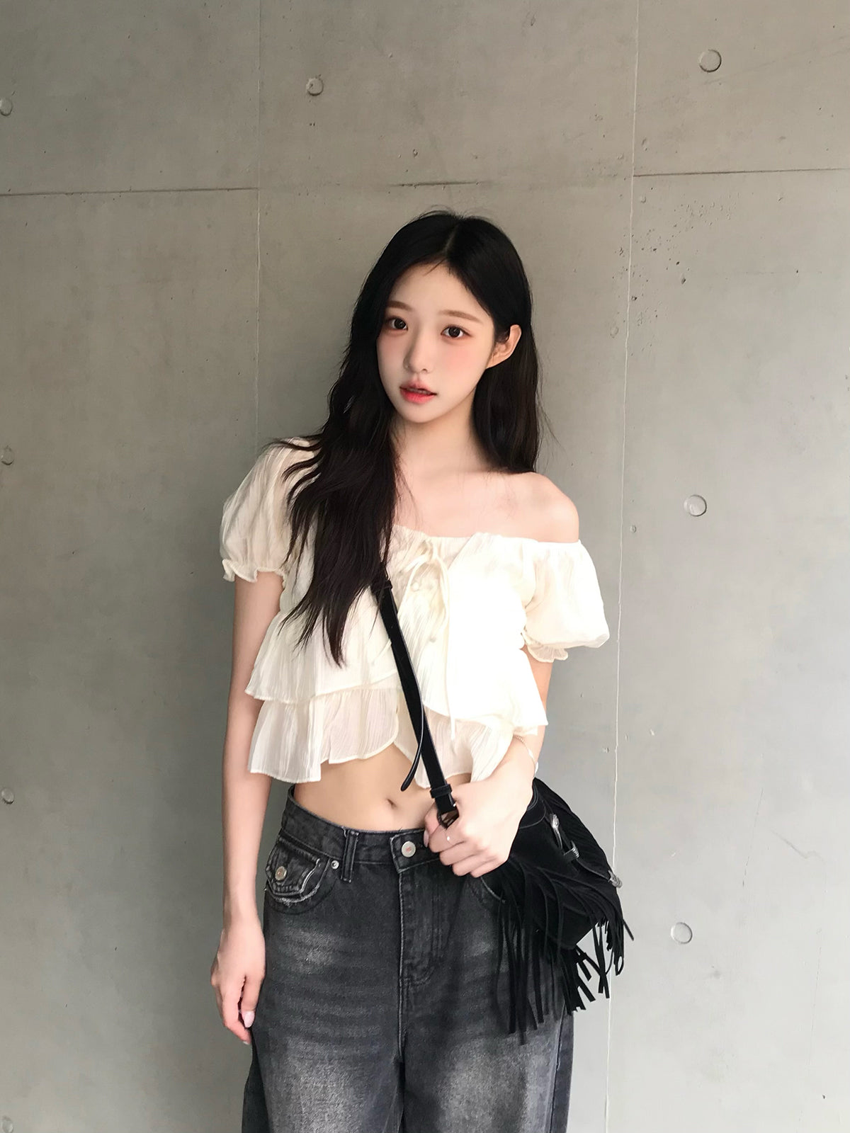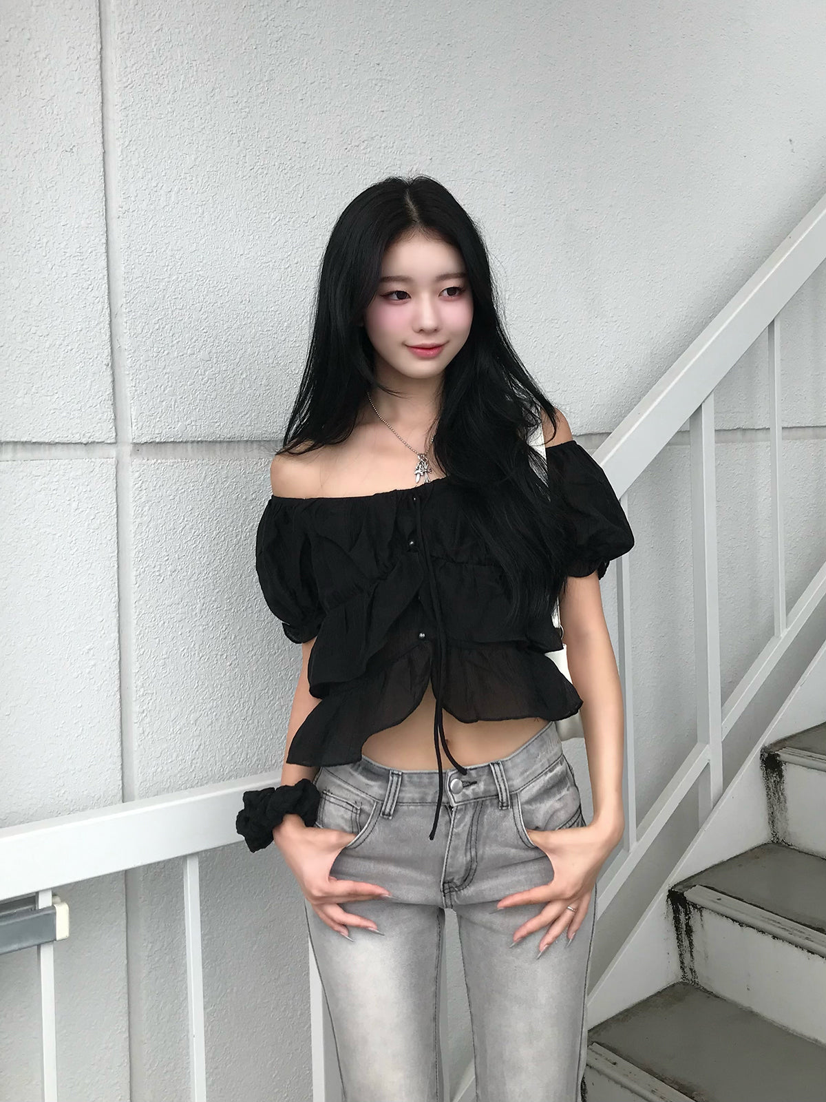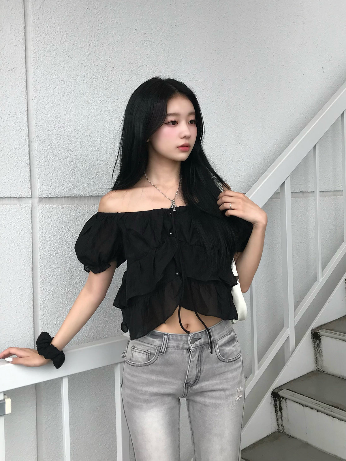シアーフリルパフブラウス