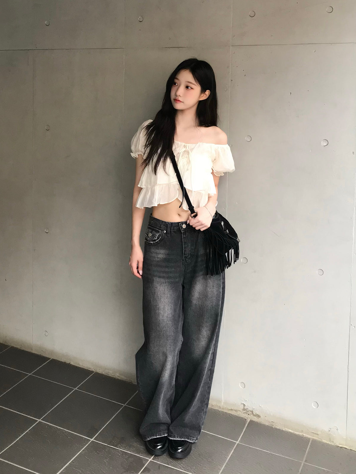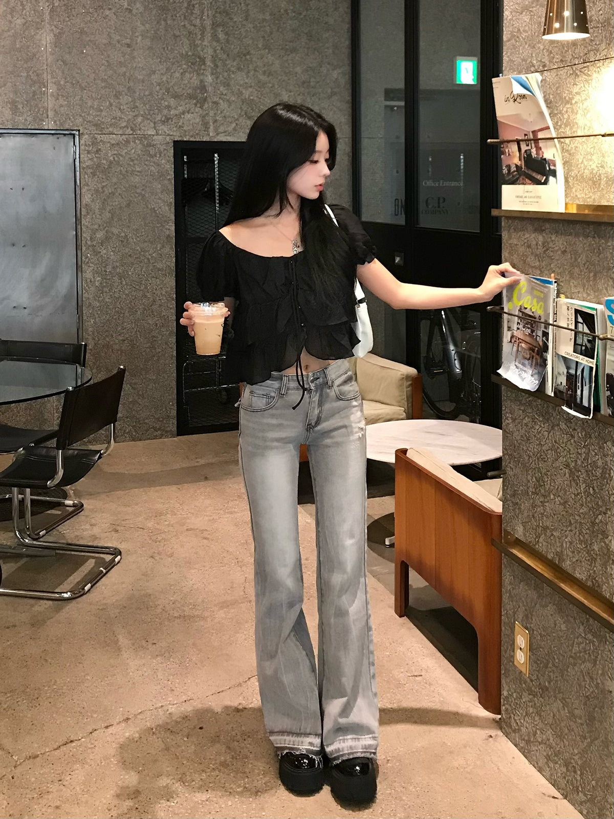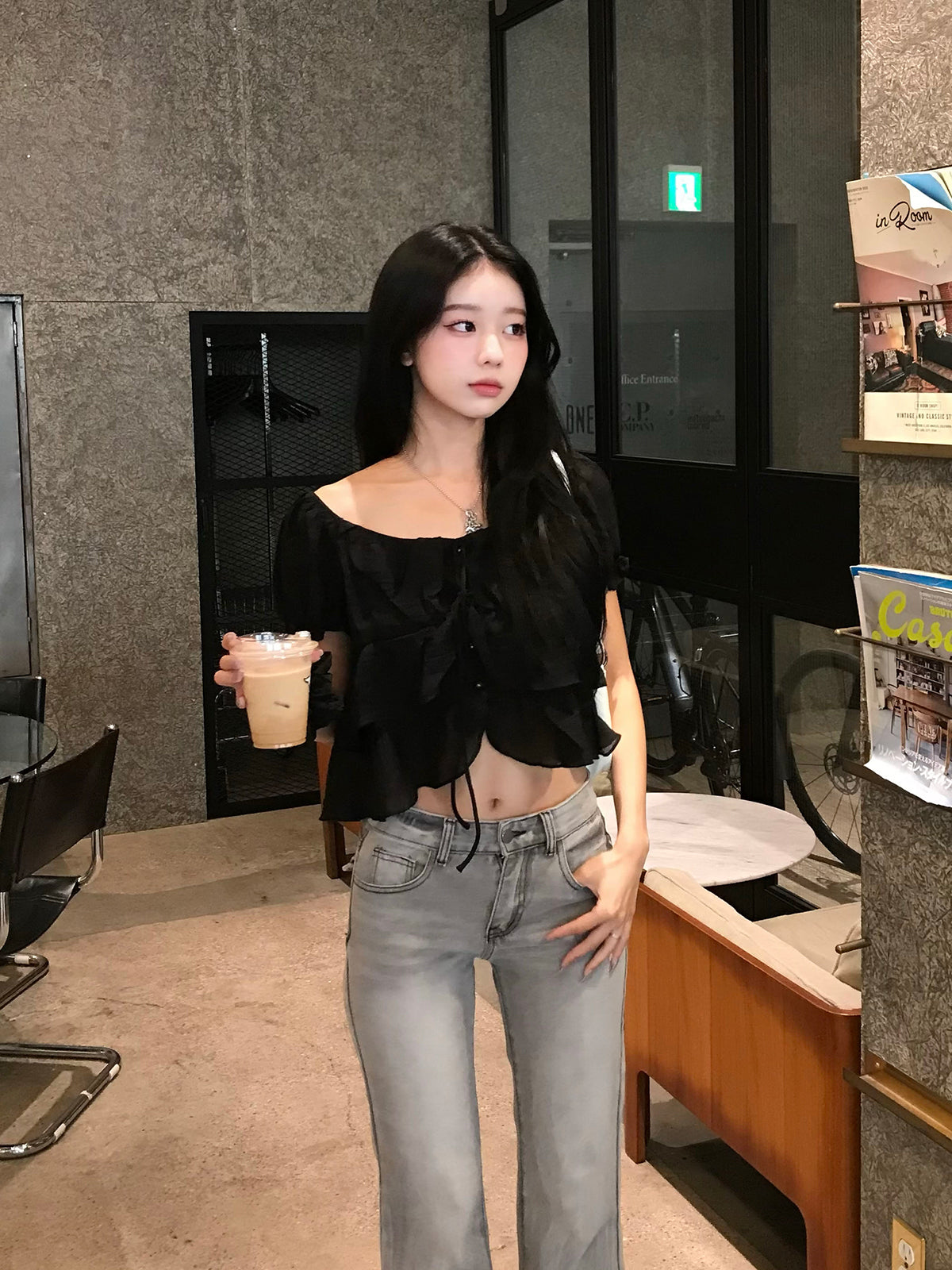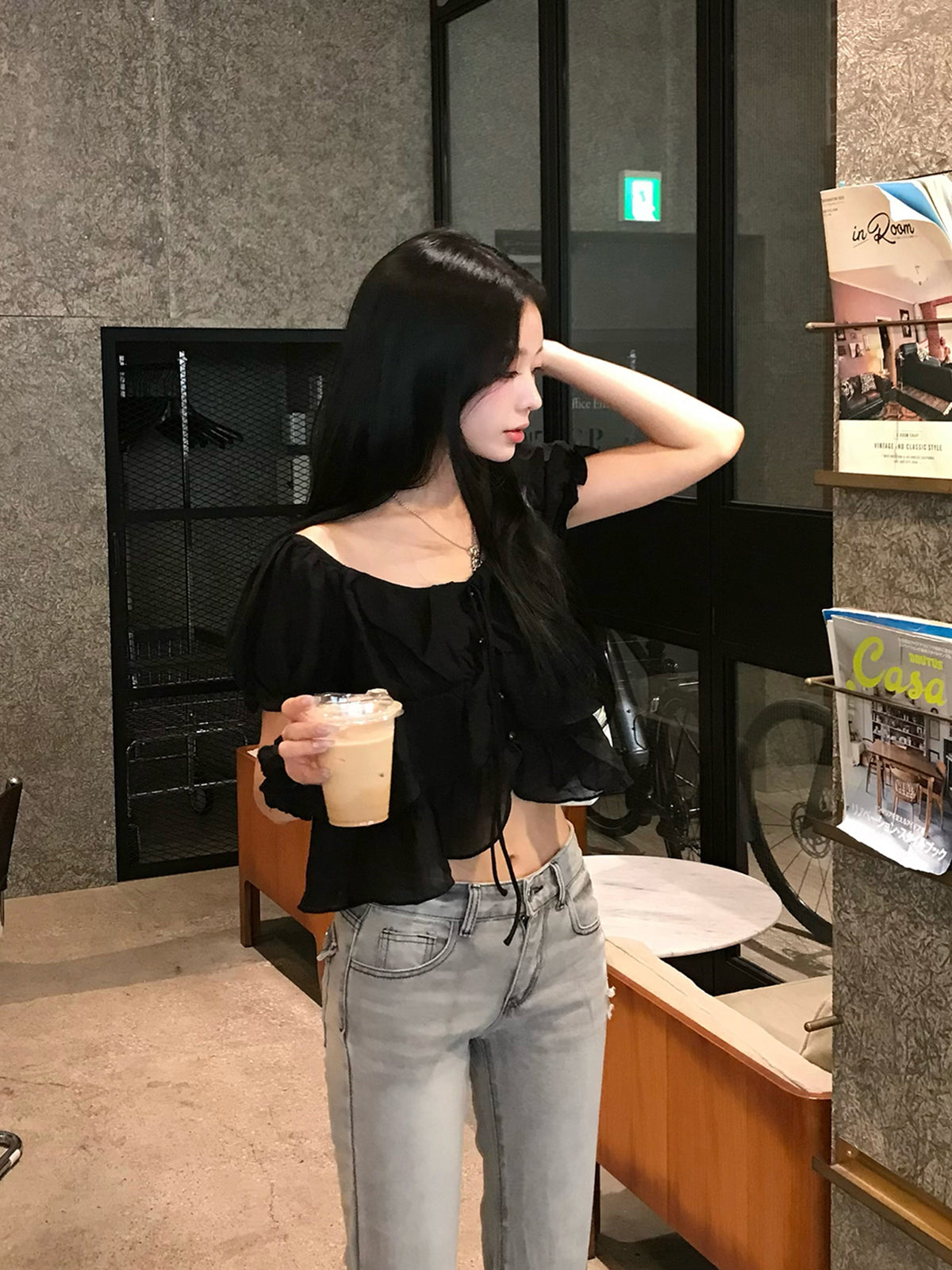 シアーフリルパフブラウス